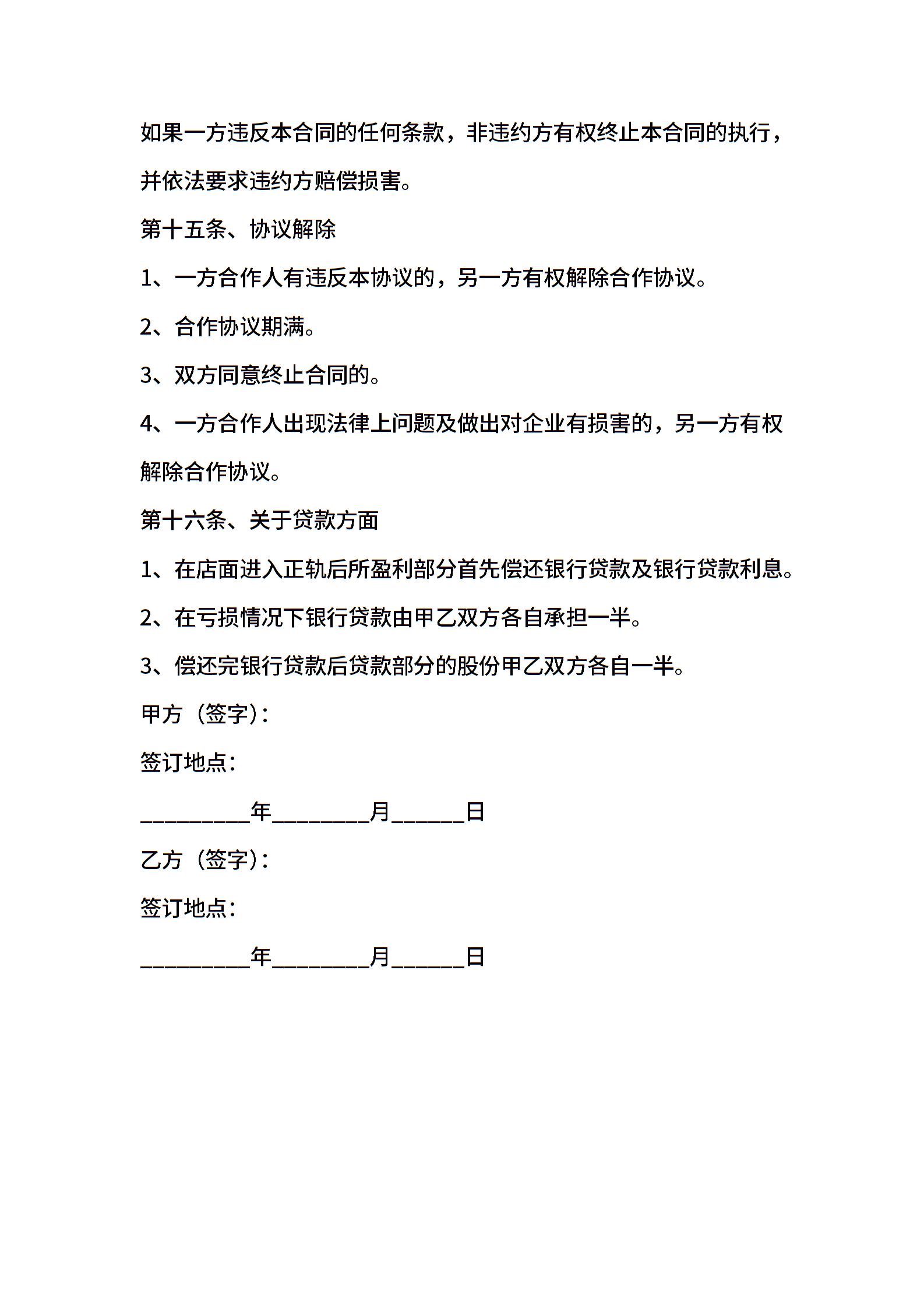 当前位置:量子办公 > 合同模板 > 合作合同 >