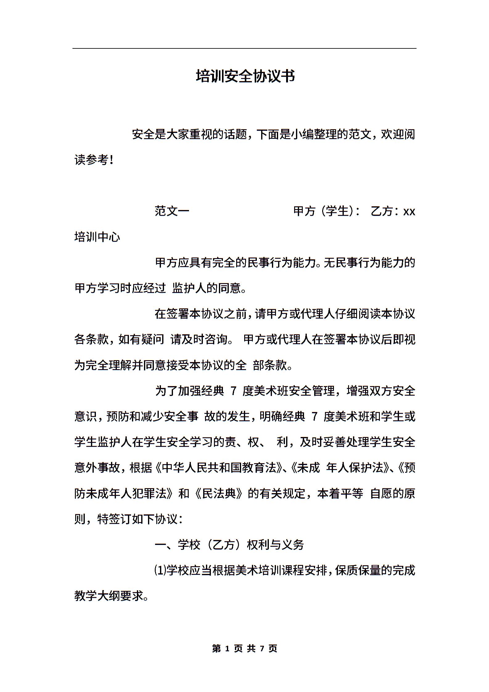 培训安全协议书