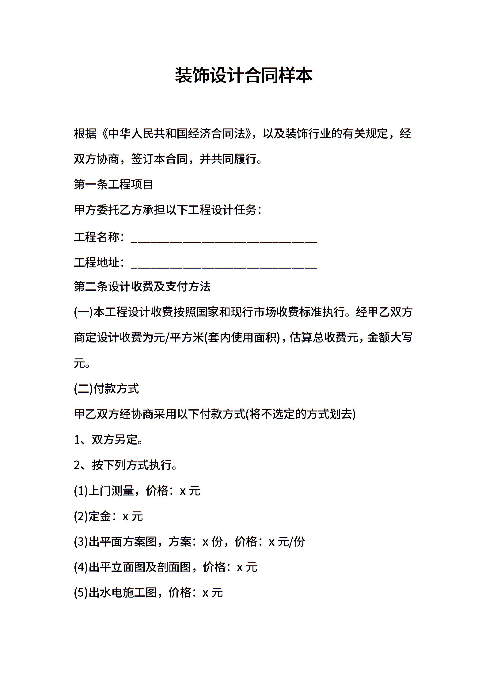 2021年装饰设计合同样本