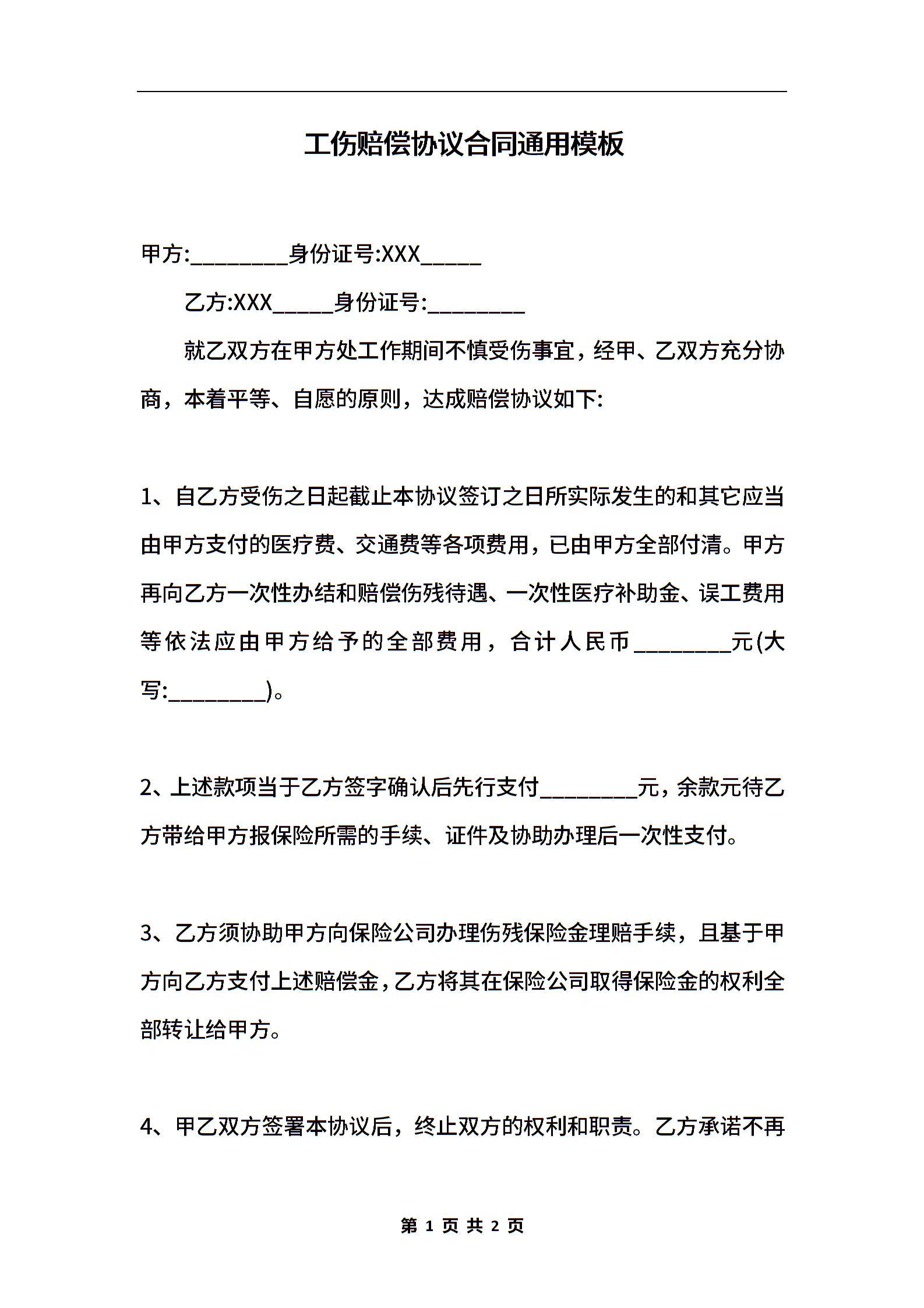 工伤赔偿协议合同通用模板