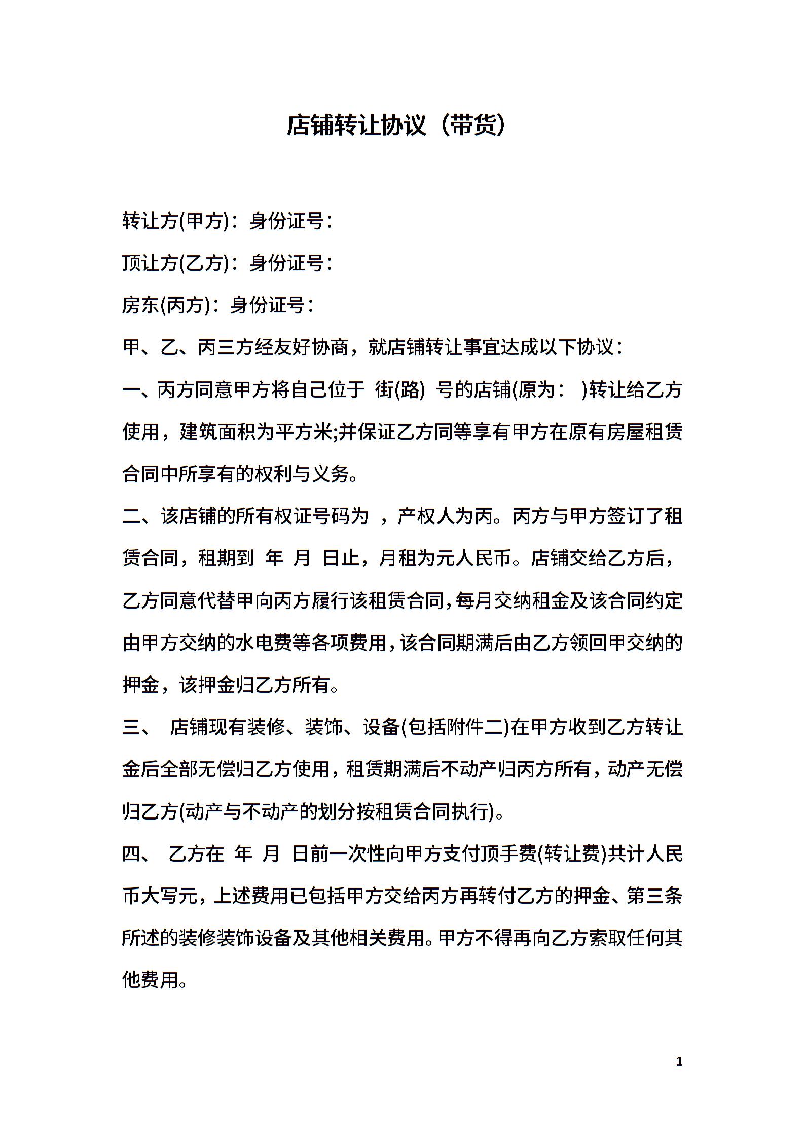 店铺转让协议(带货)