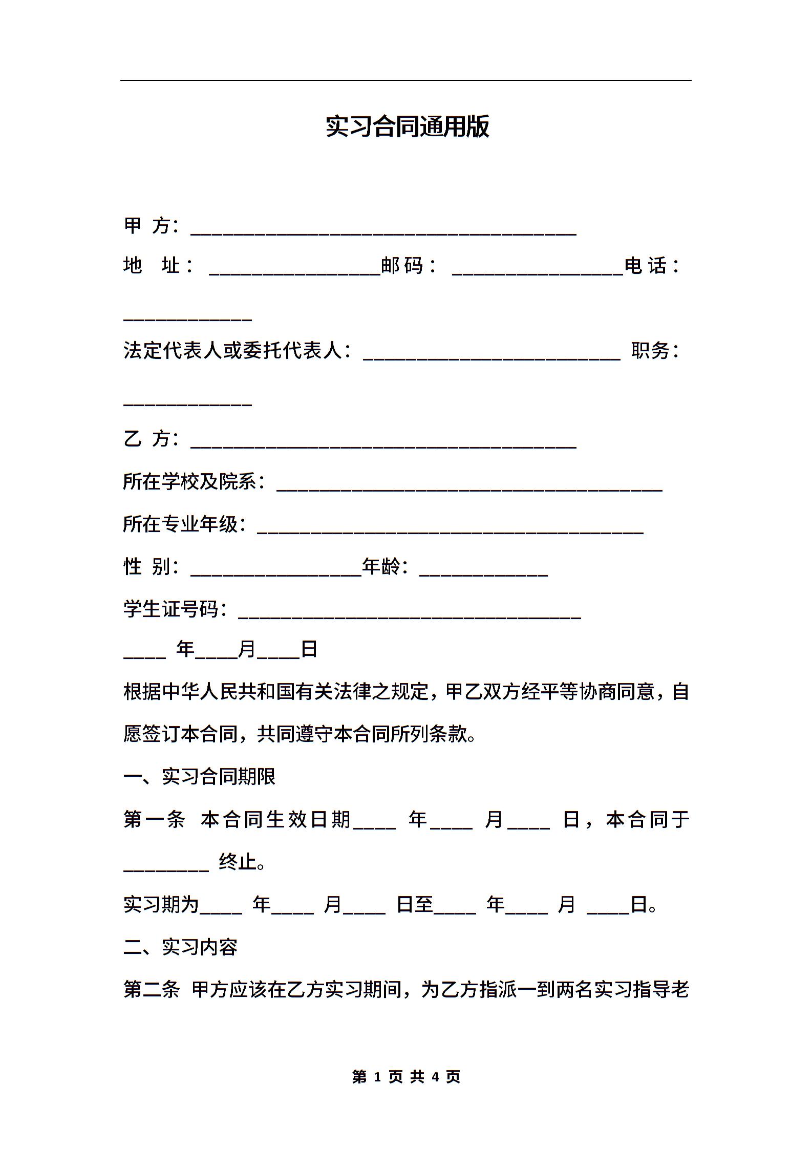 当前位置:量子办公 > 合同模板 > 实习协议 >