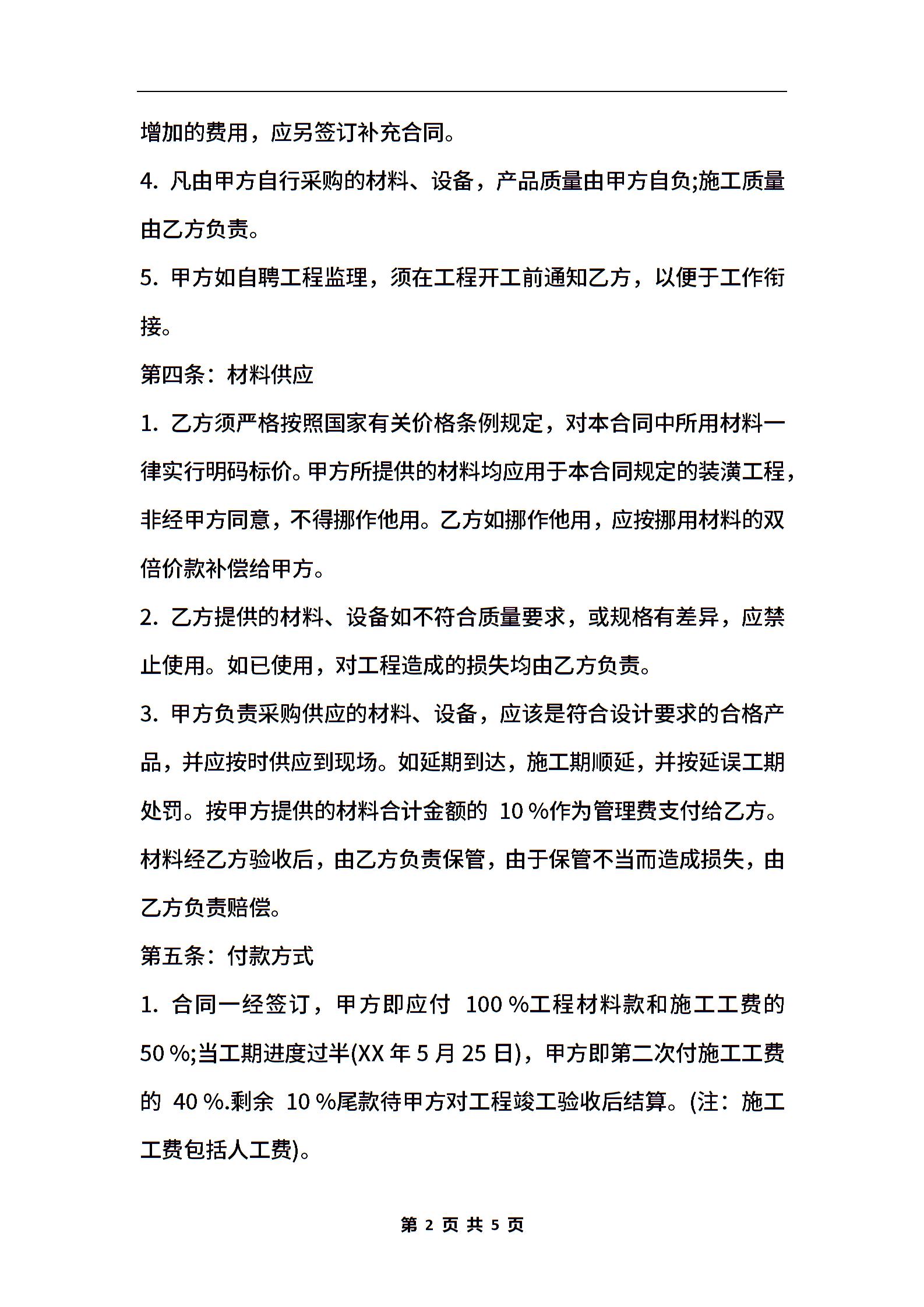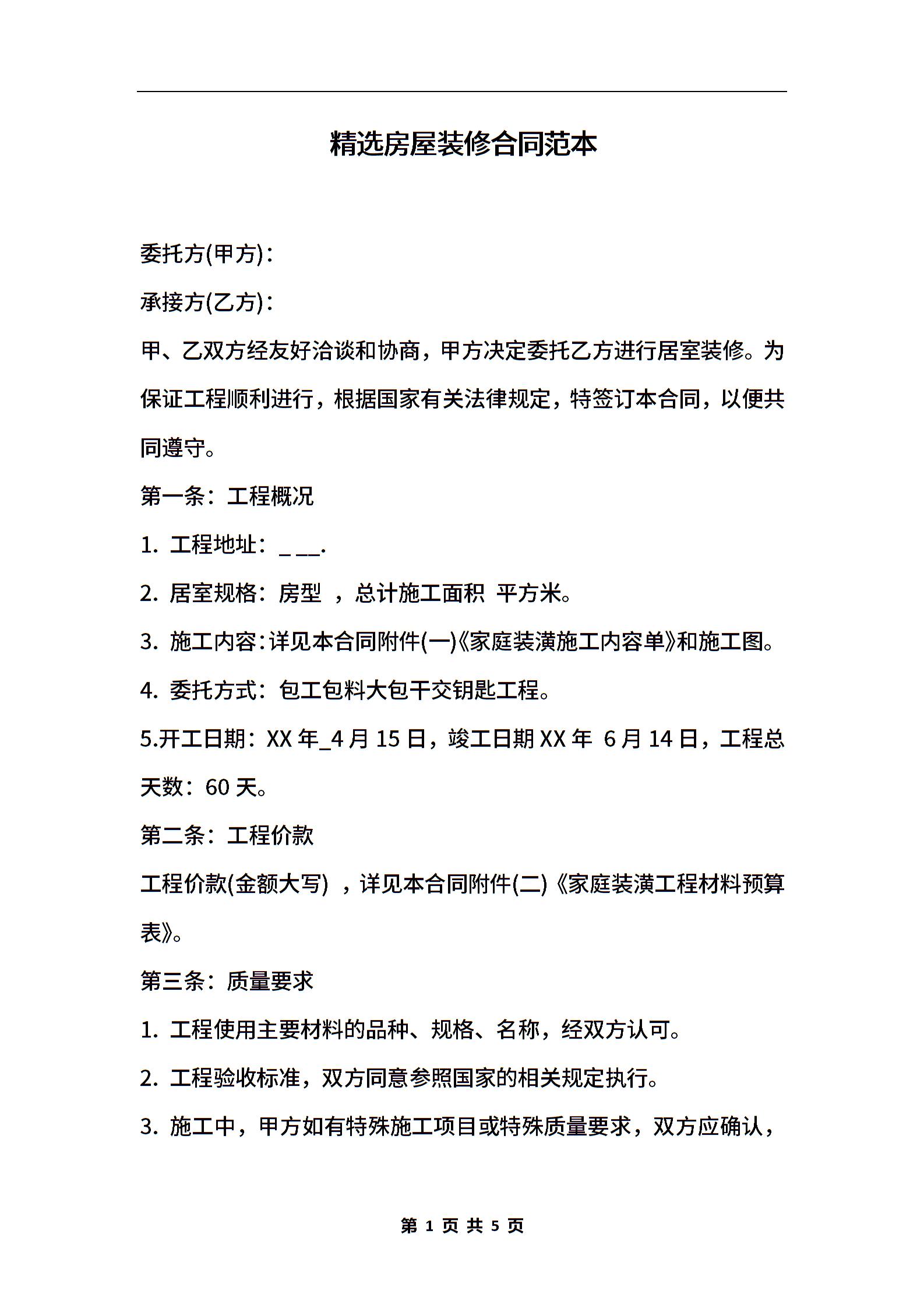 精选房屋装修合同范本