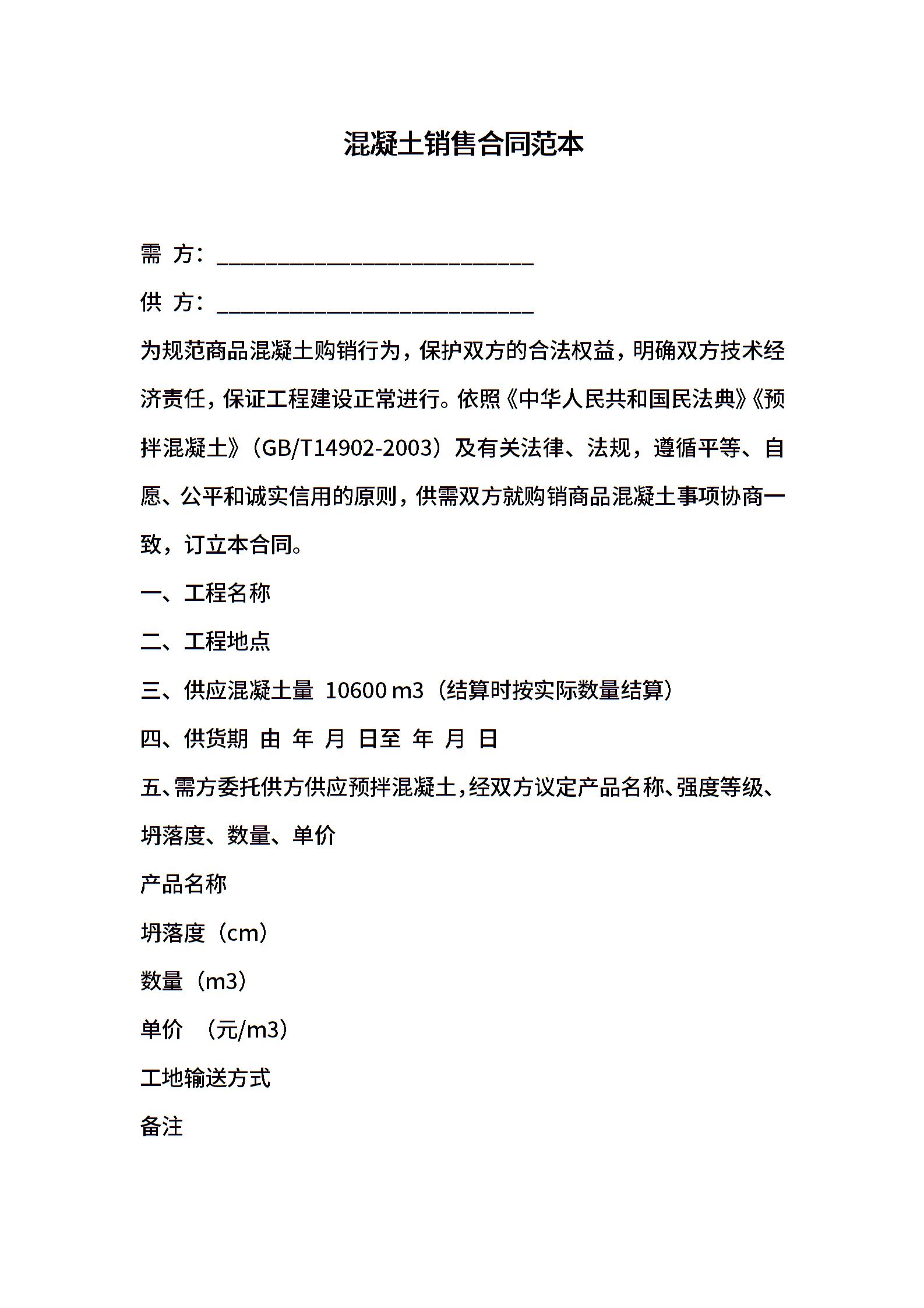 混凝土销售合同范本