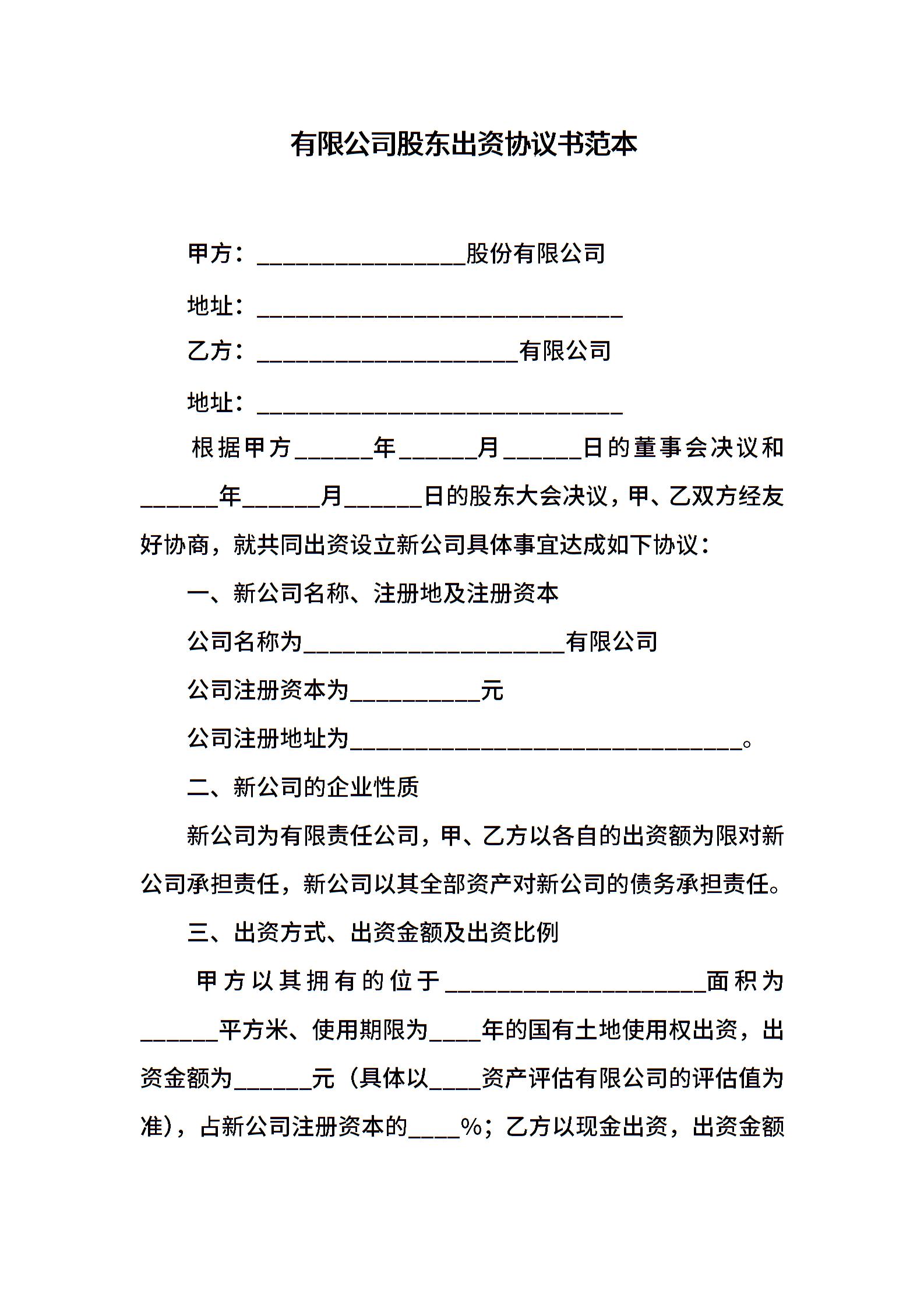 当前位置:量子办公 > 合同模板 > 出资协议 >