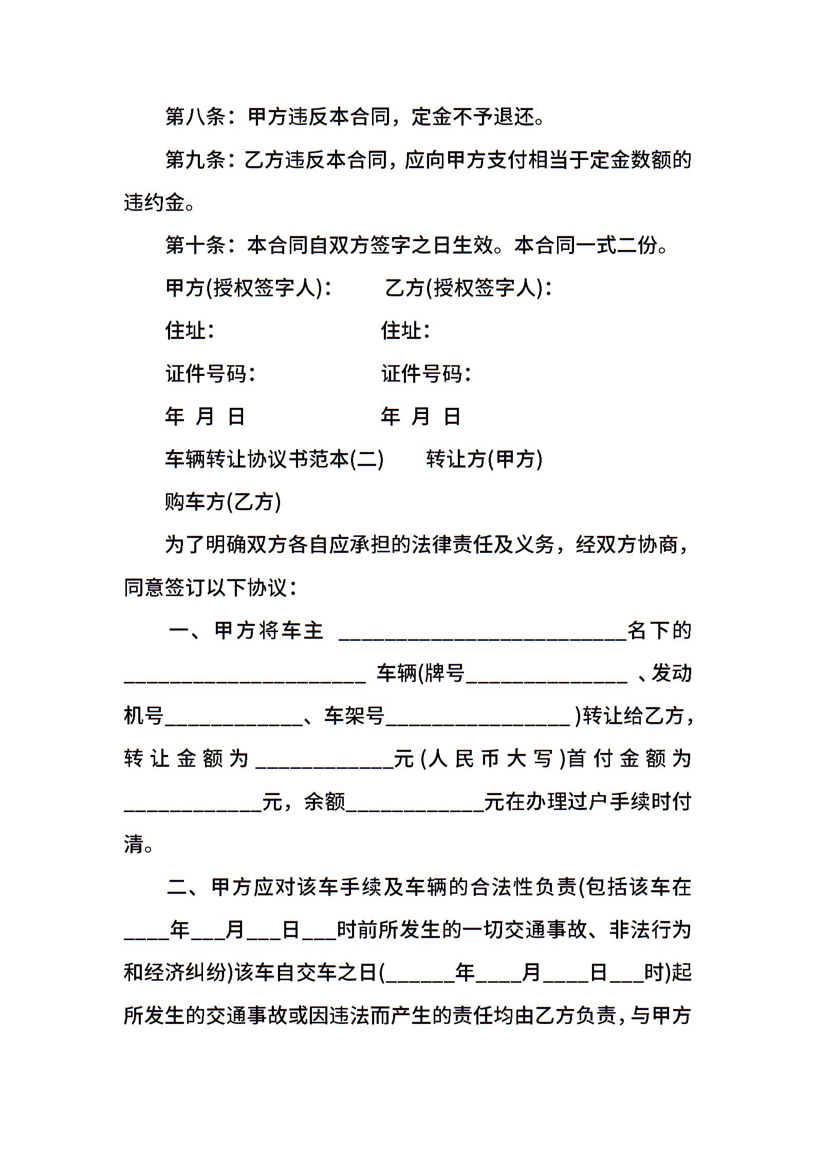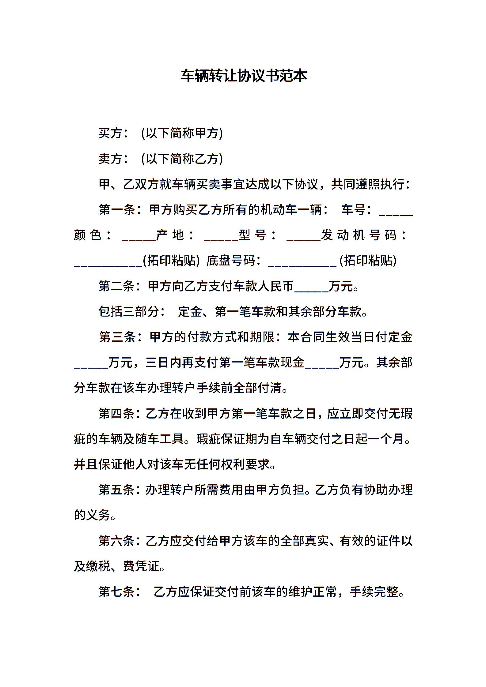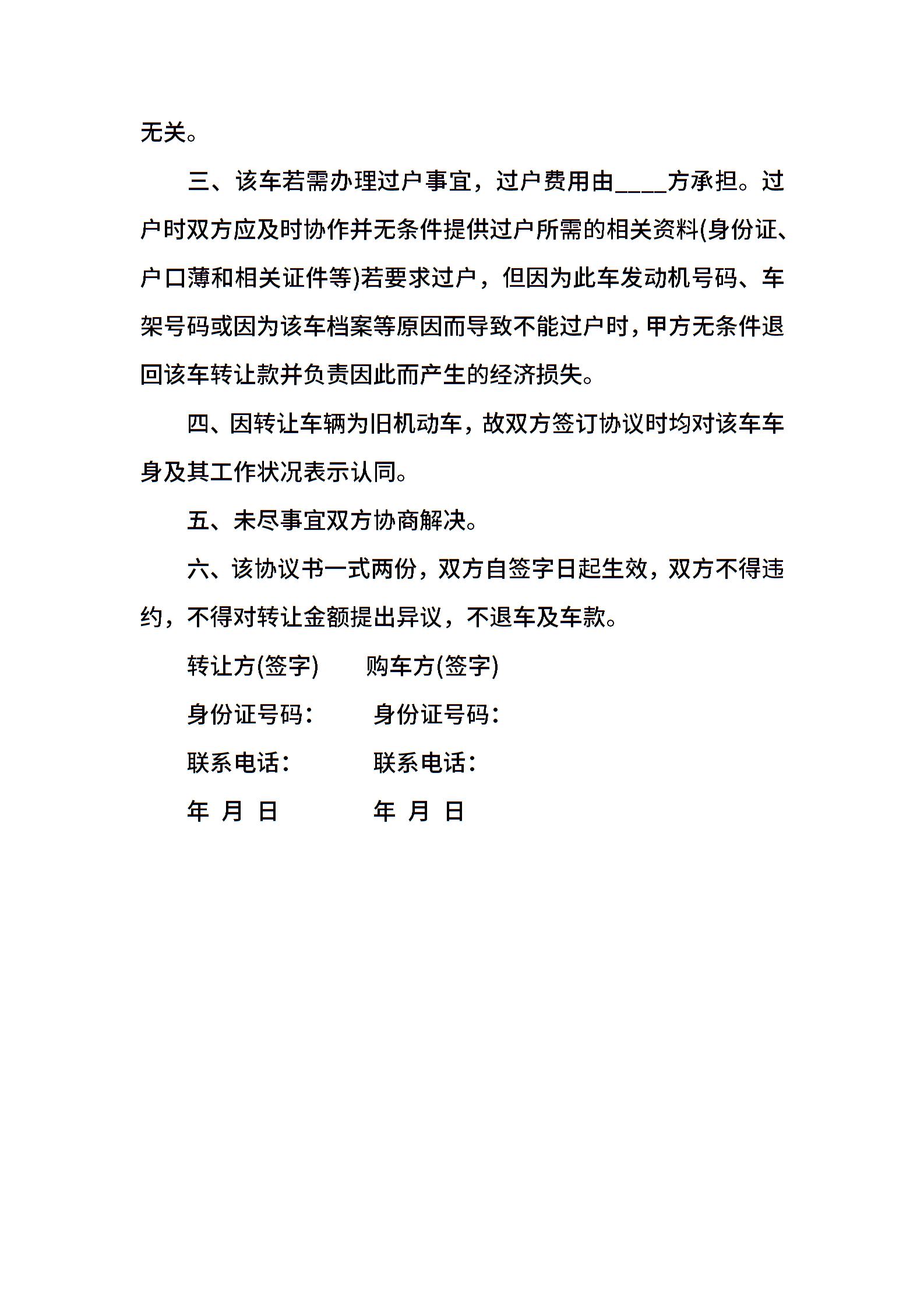 车辆转让协议书范本