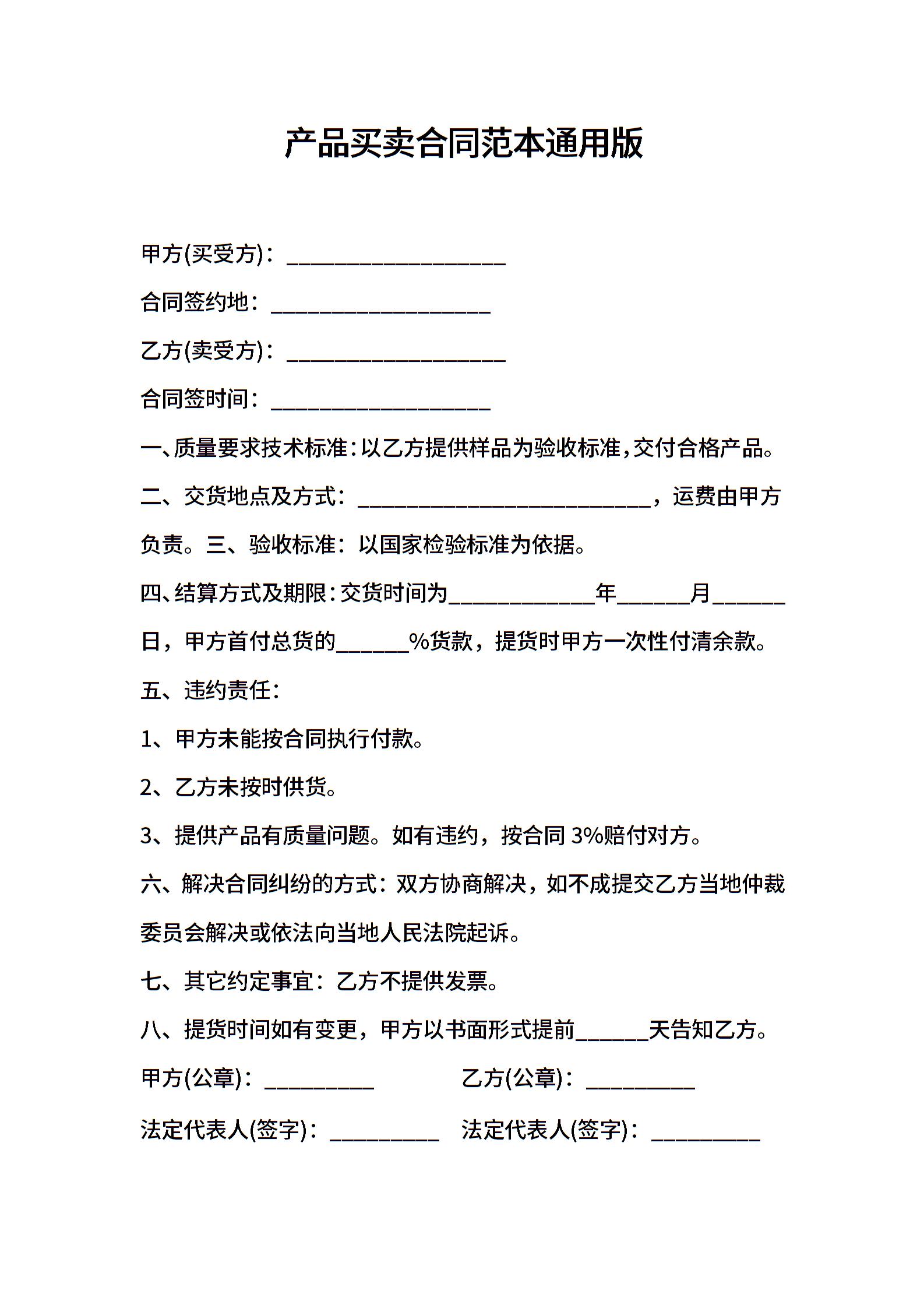 产品买卖合同范本通用版