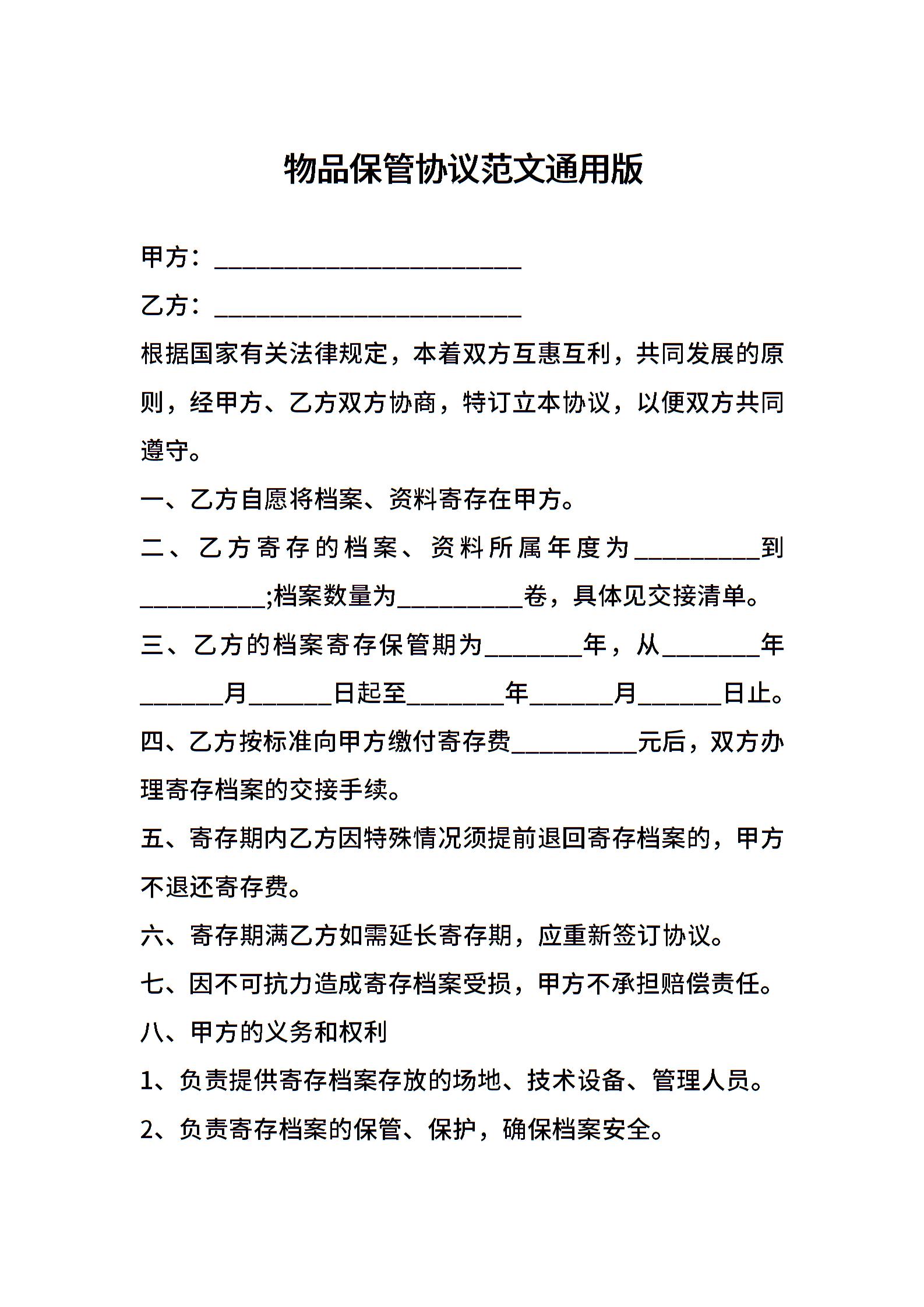 当前位置:量子办公 > 合同模板 > 保管合同 >