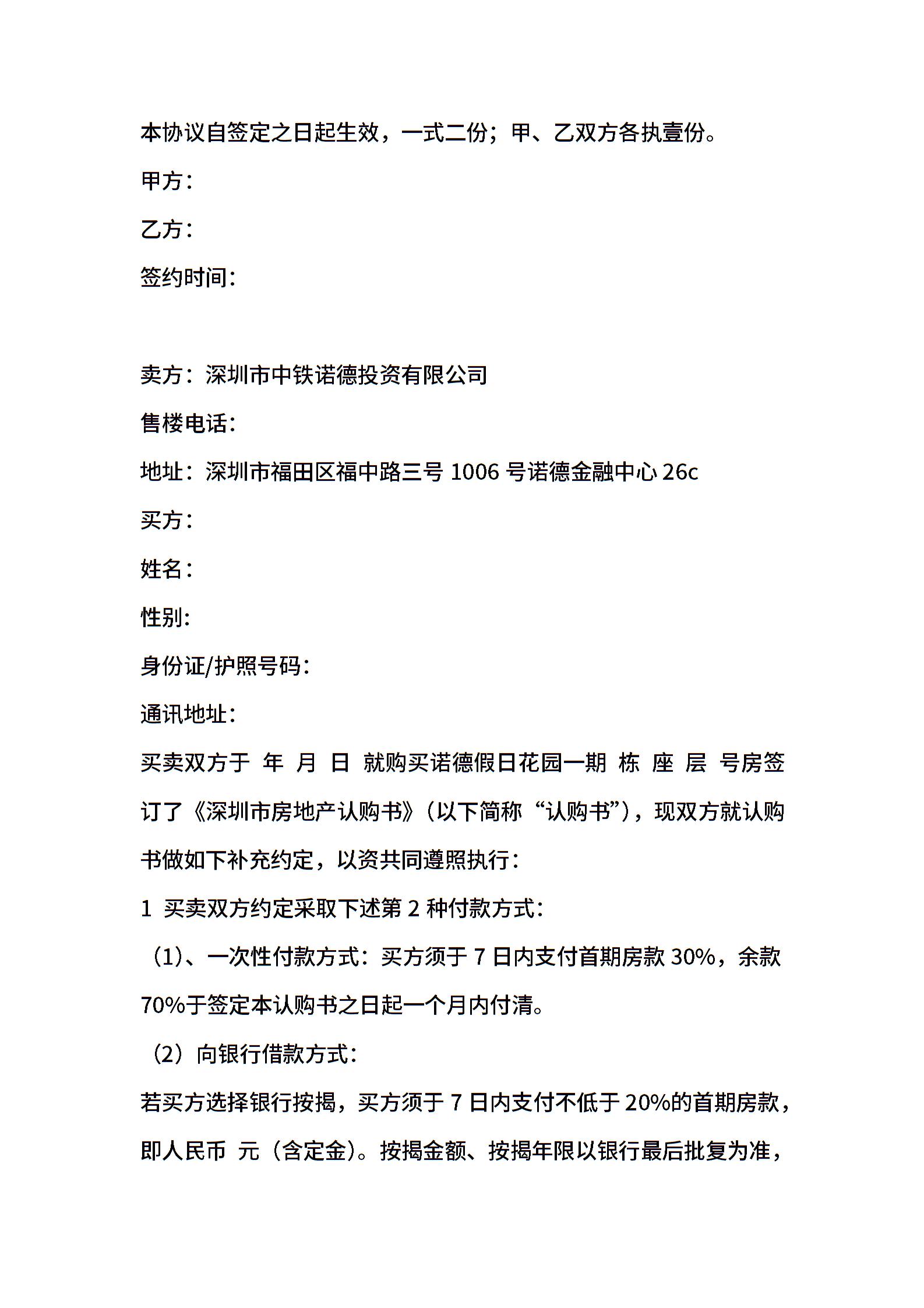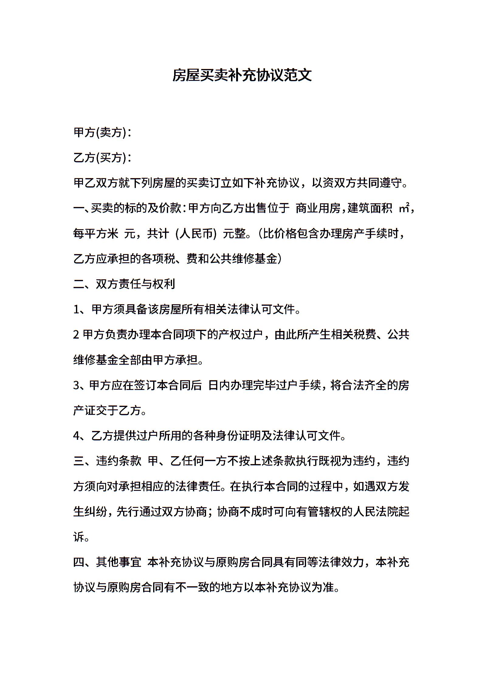 房屋买卖补充协议范文
