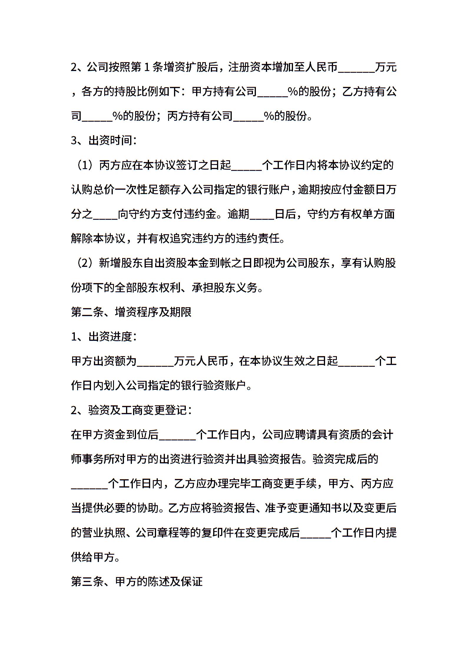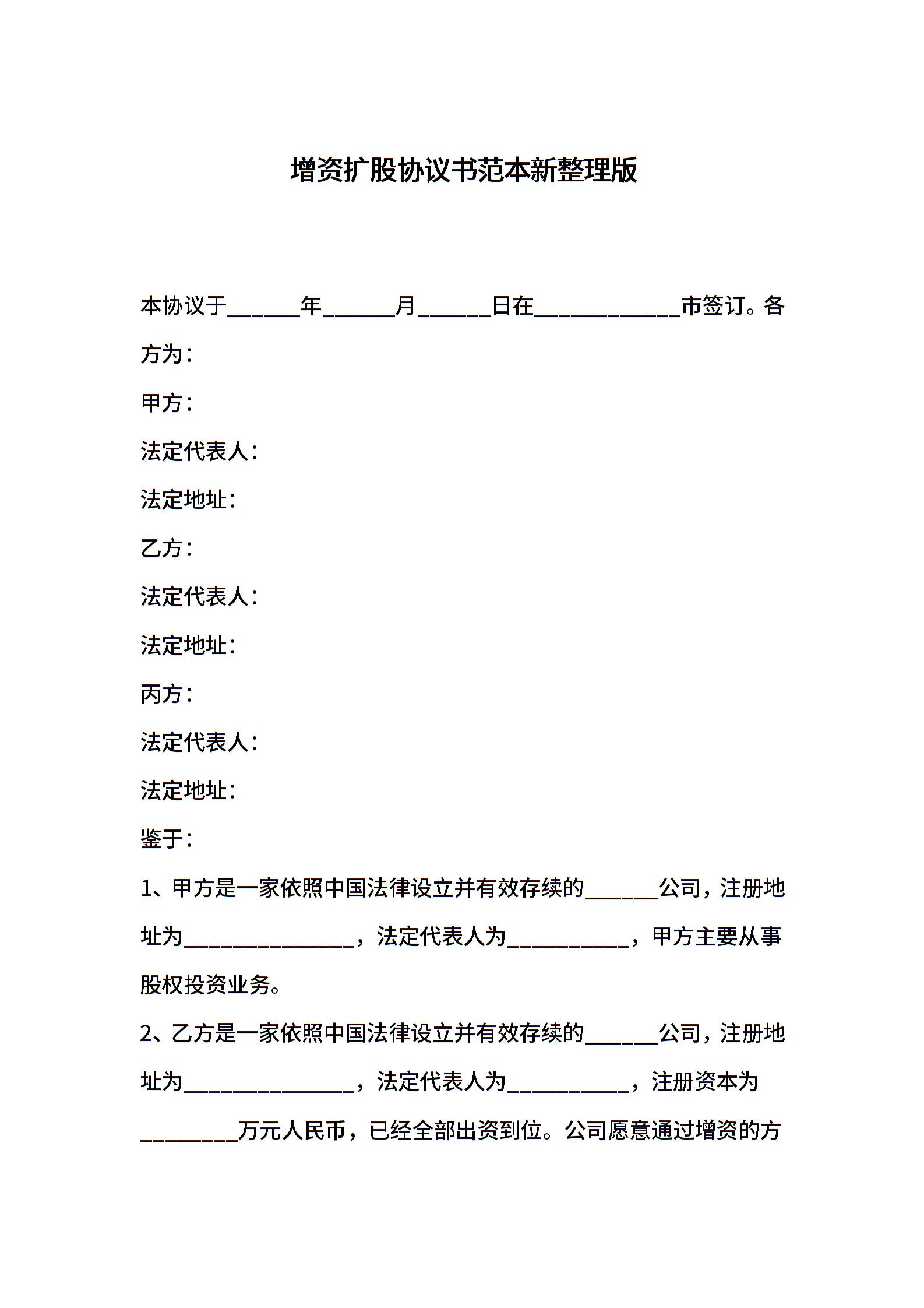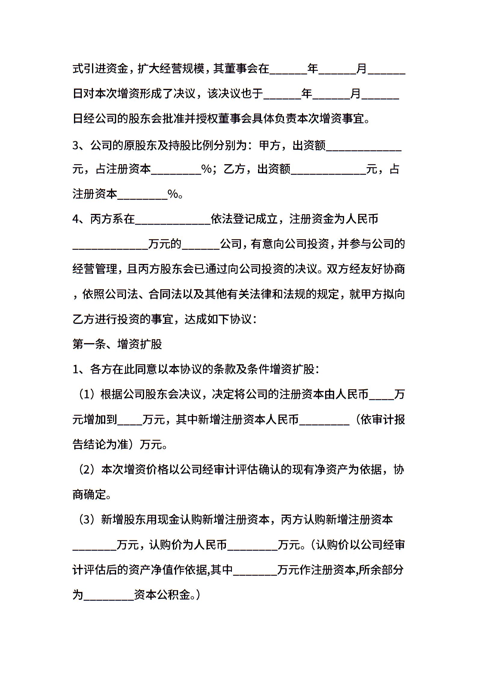 增资扩股协议书范本新整理版