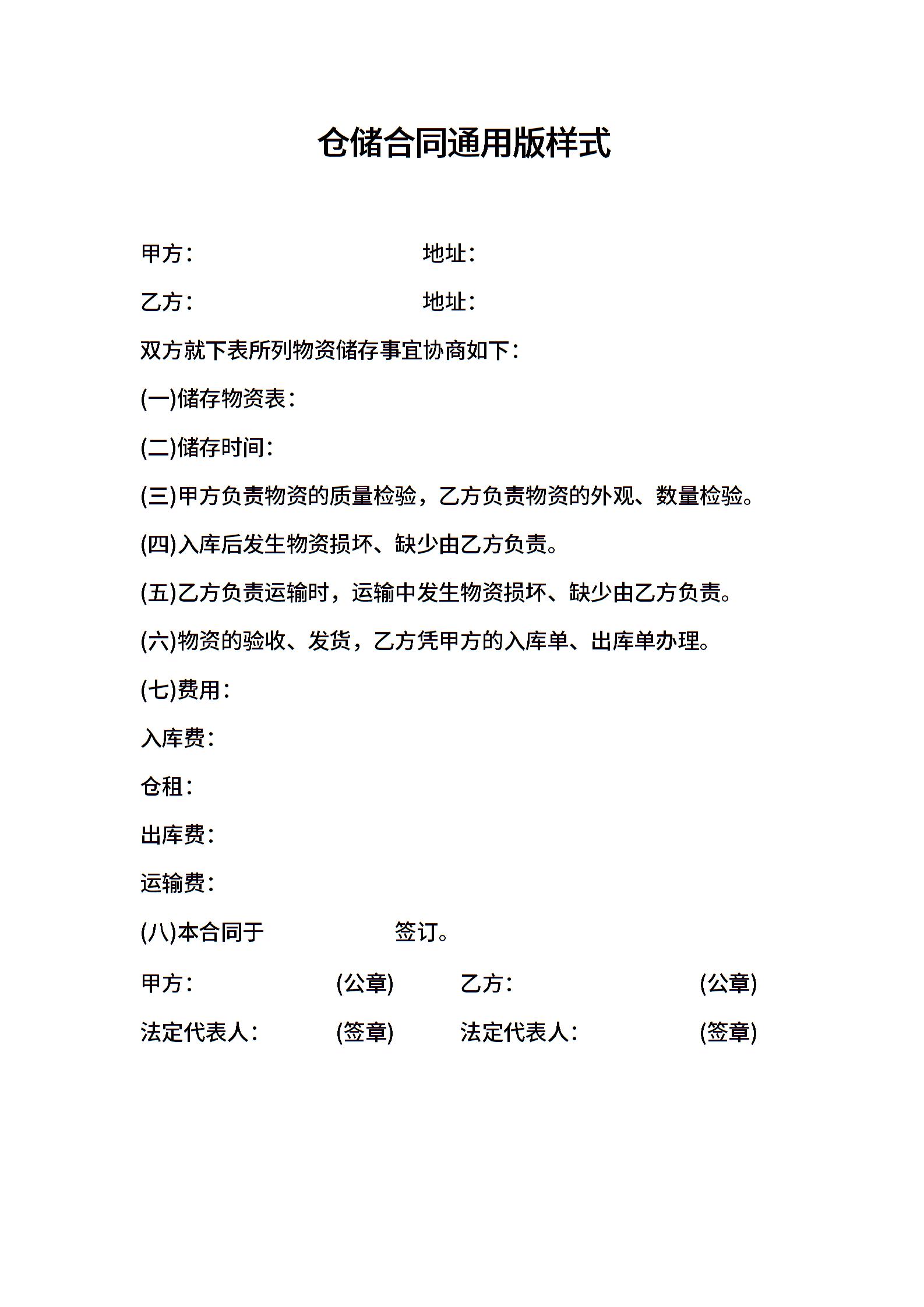 仓储合同通用版样式