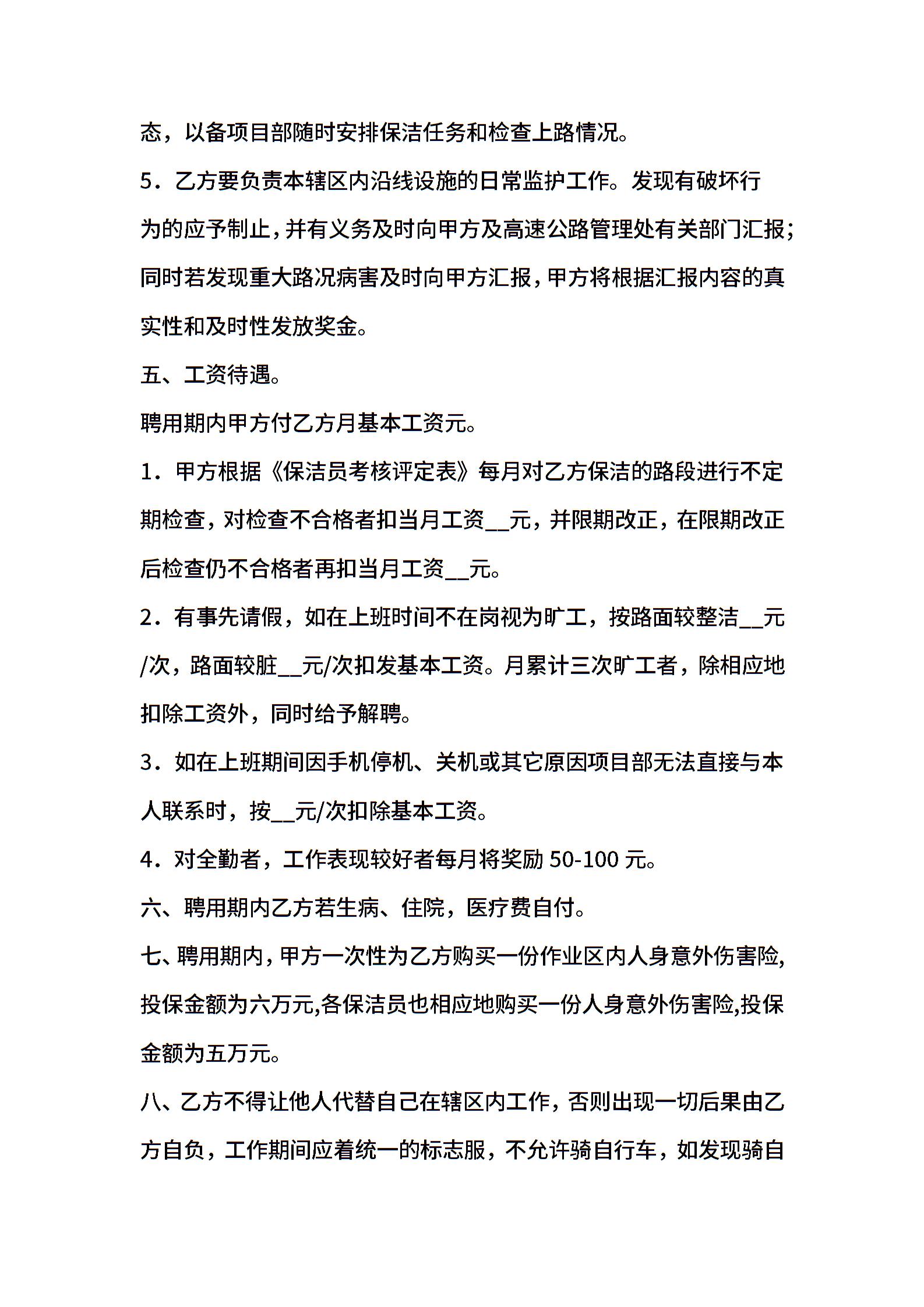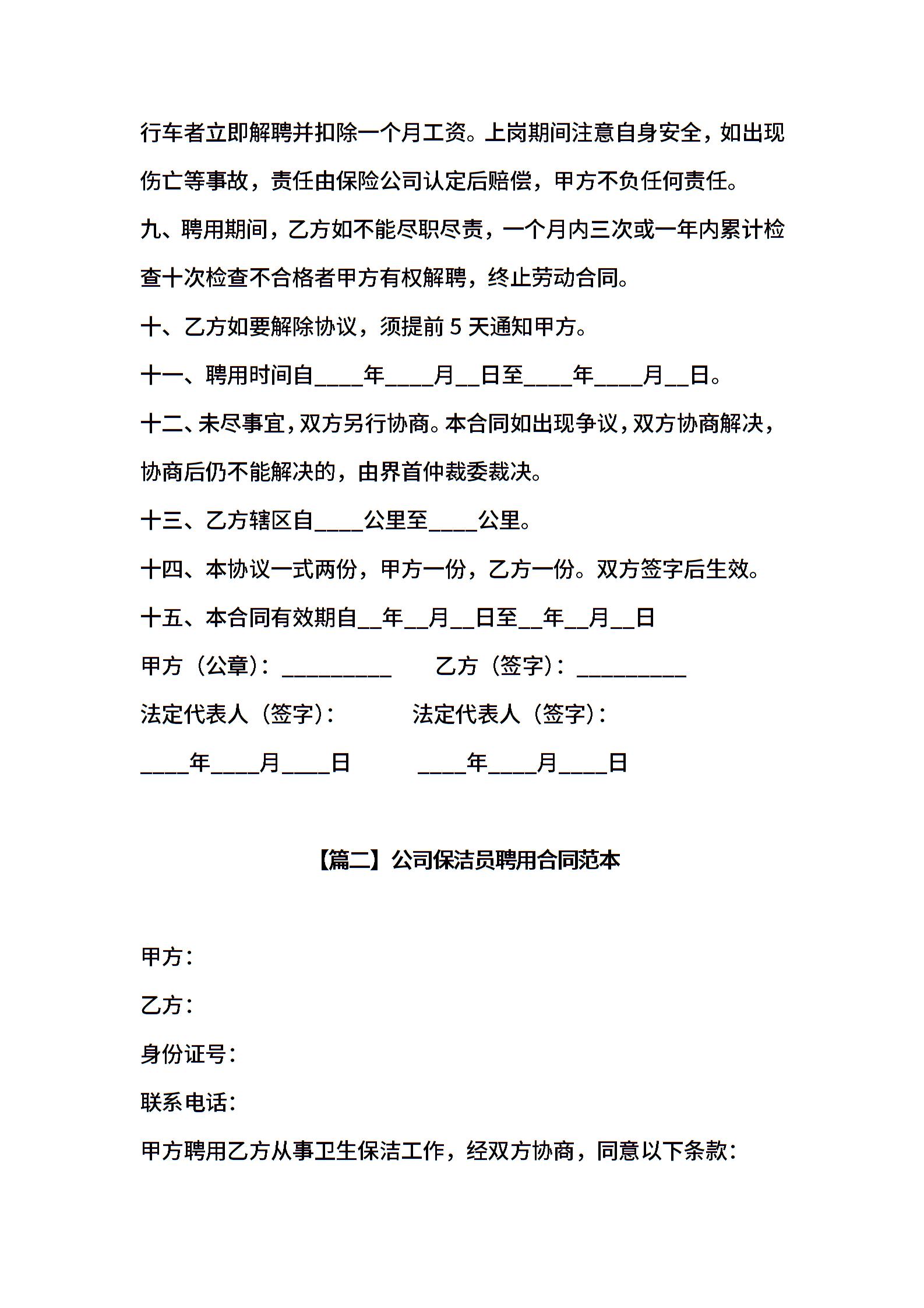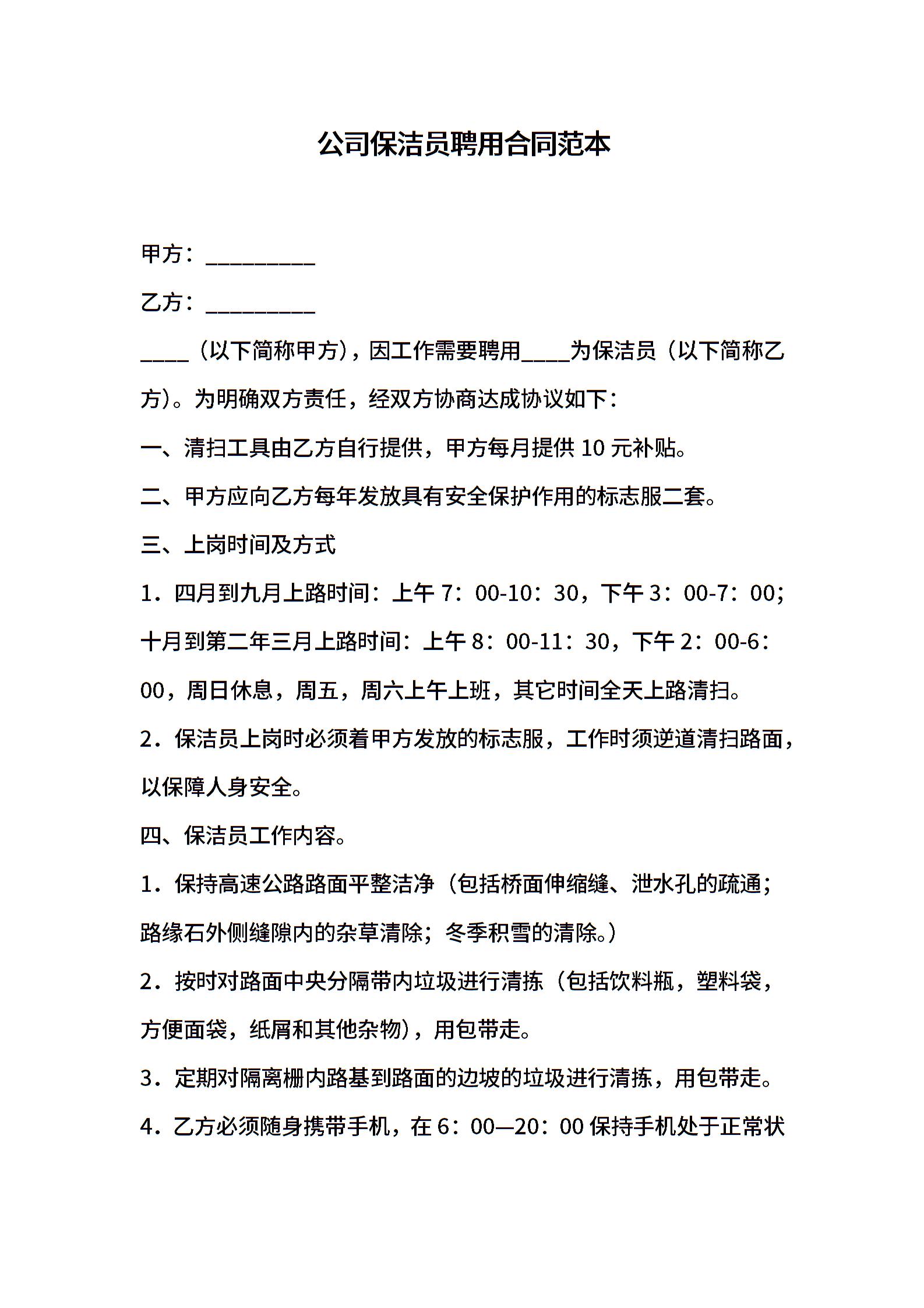 公司保洁员聘用合同范本