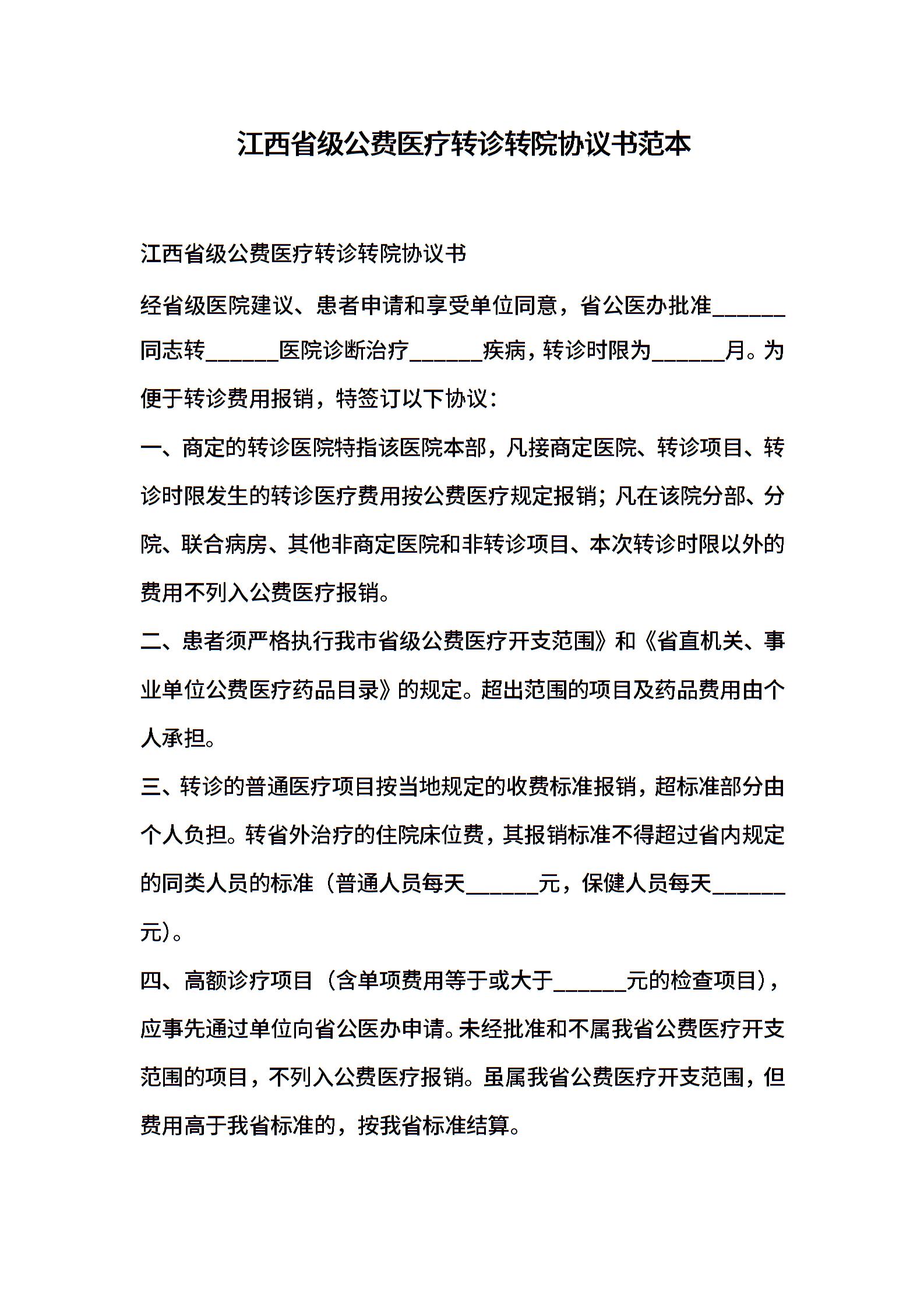 江西省级公费医疗转诊转院协议书范本
