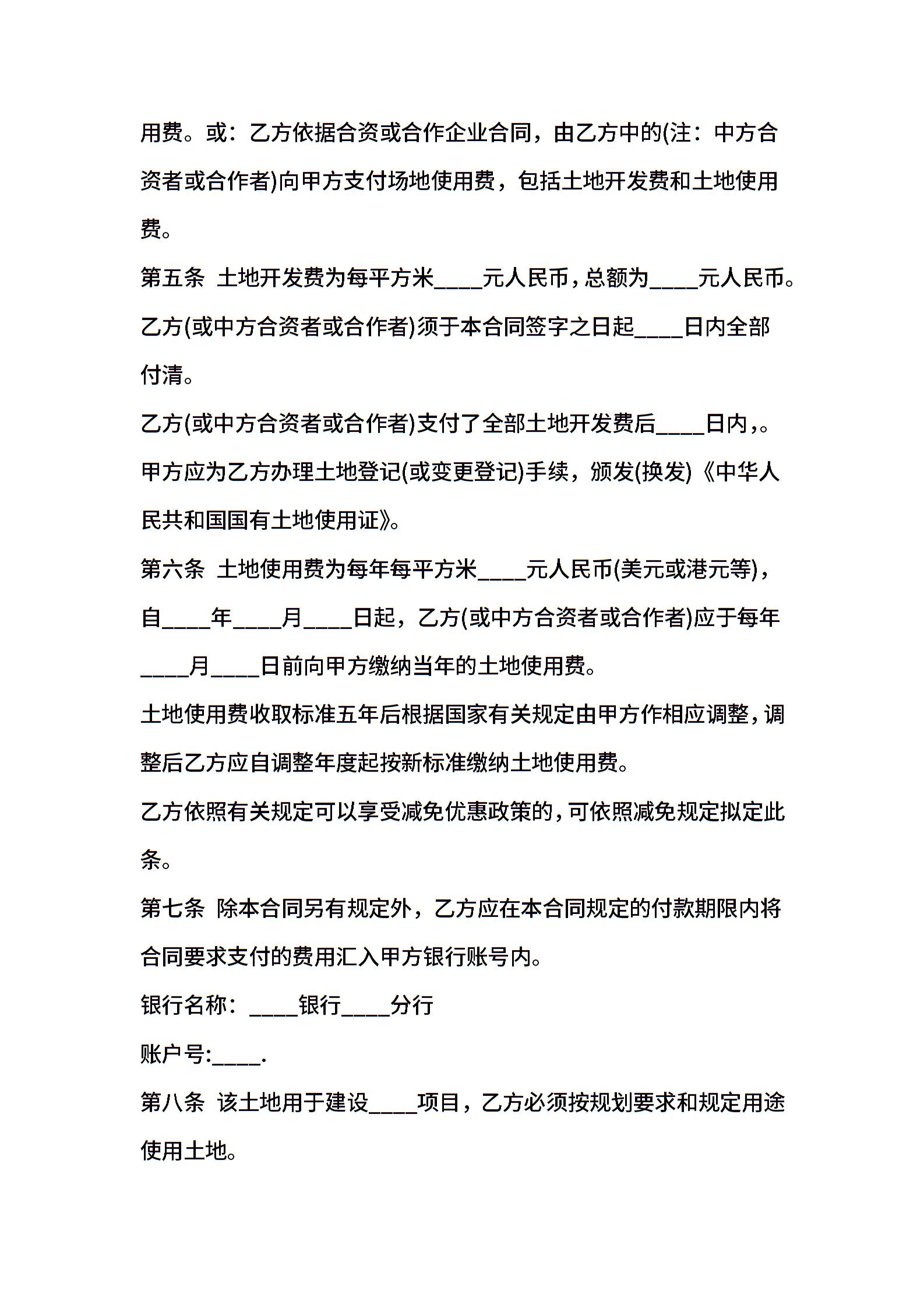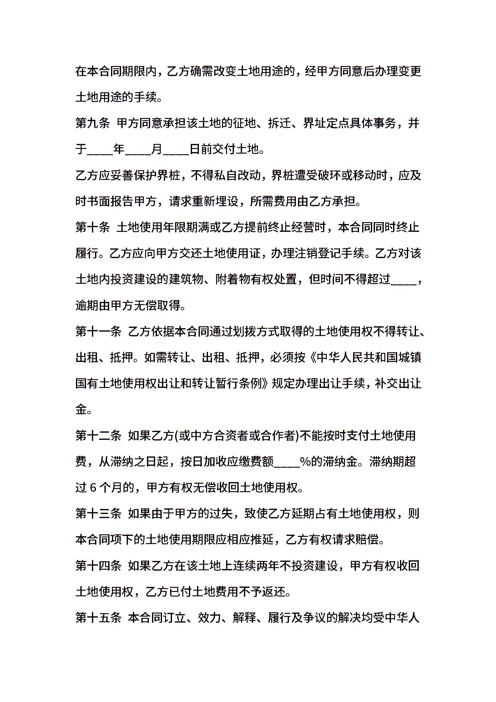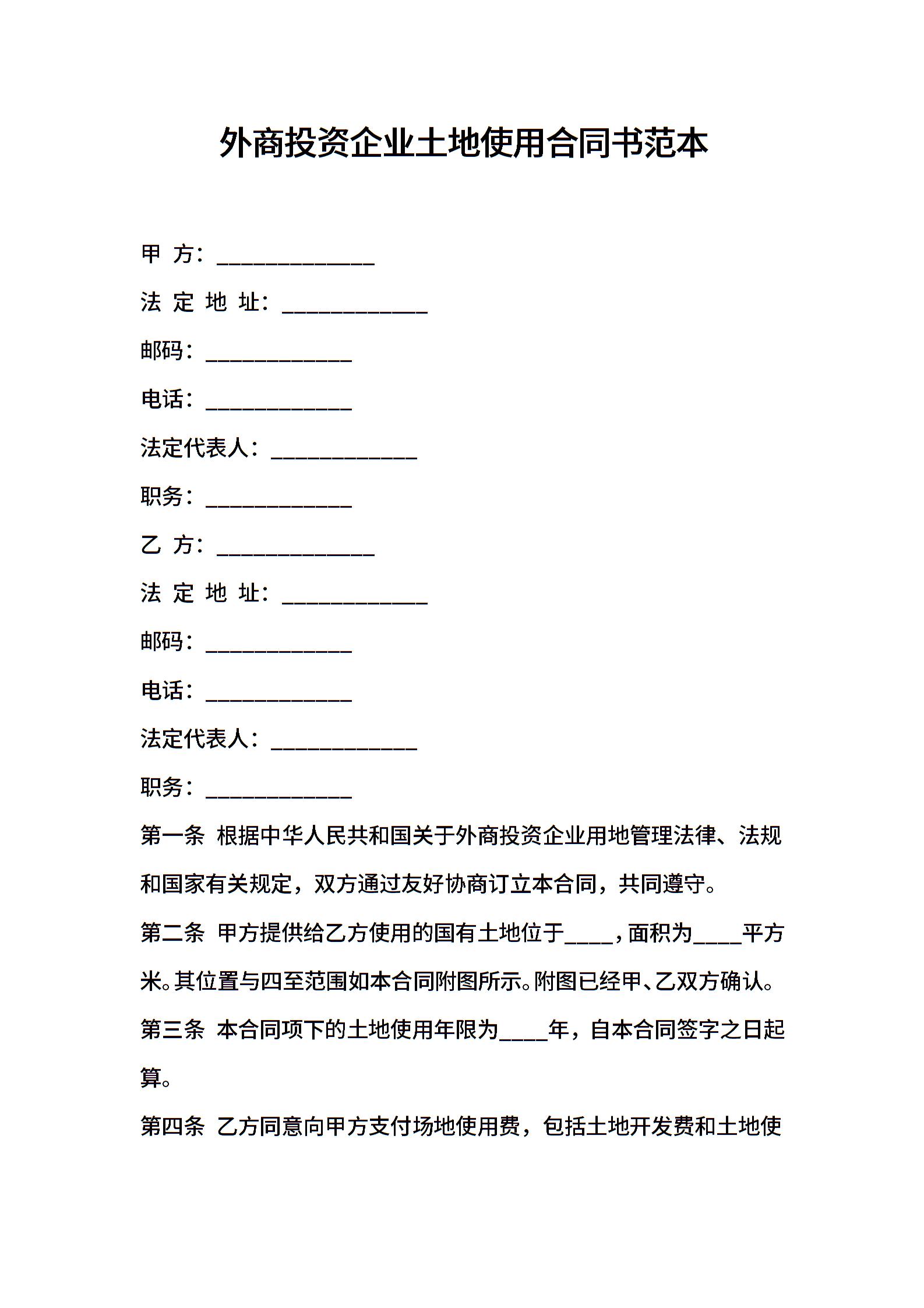 外商投资企业土地使用合同书范本