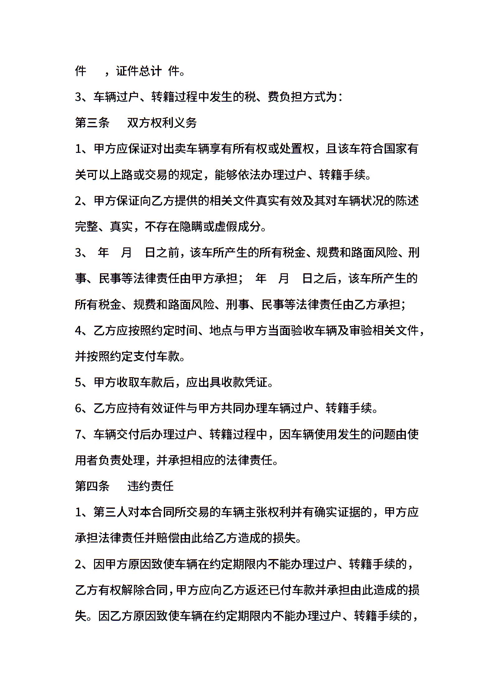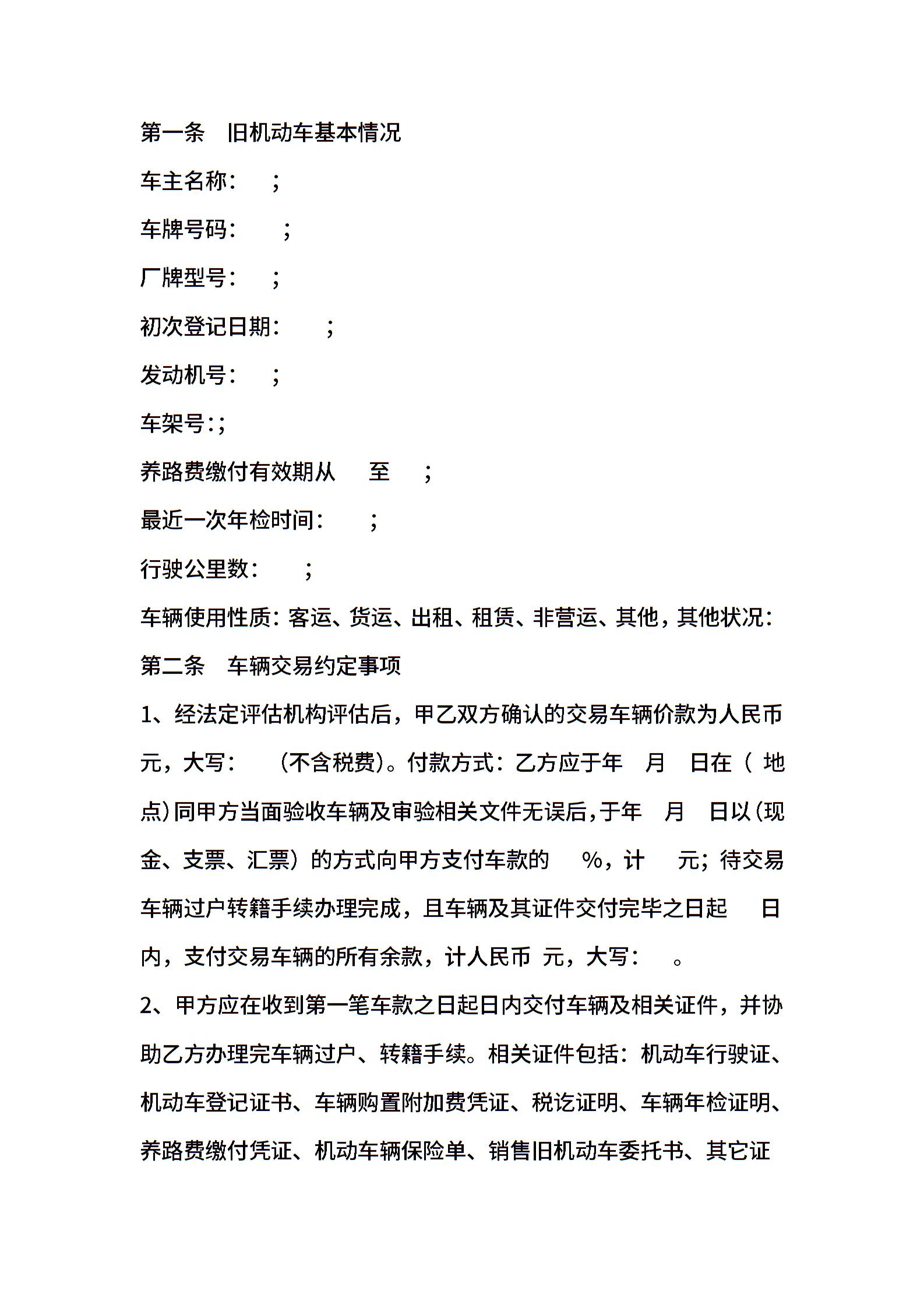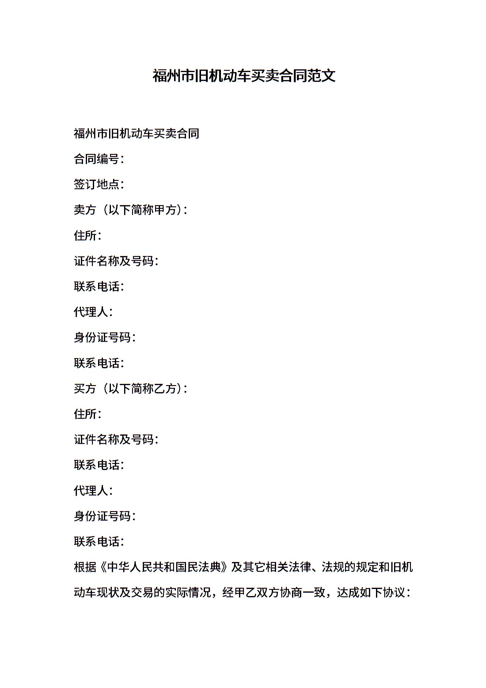 福州市旧机动车买卖合同范文