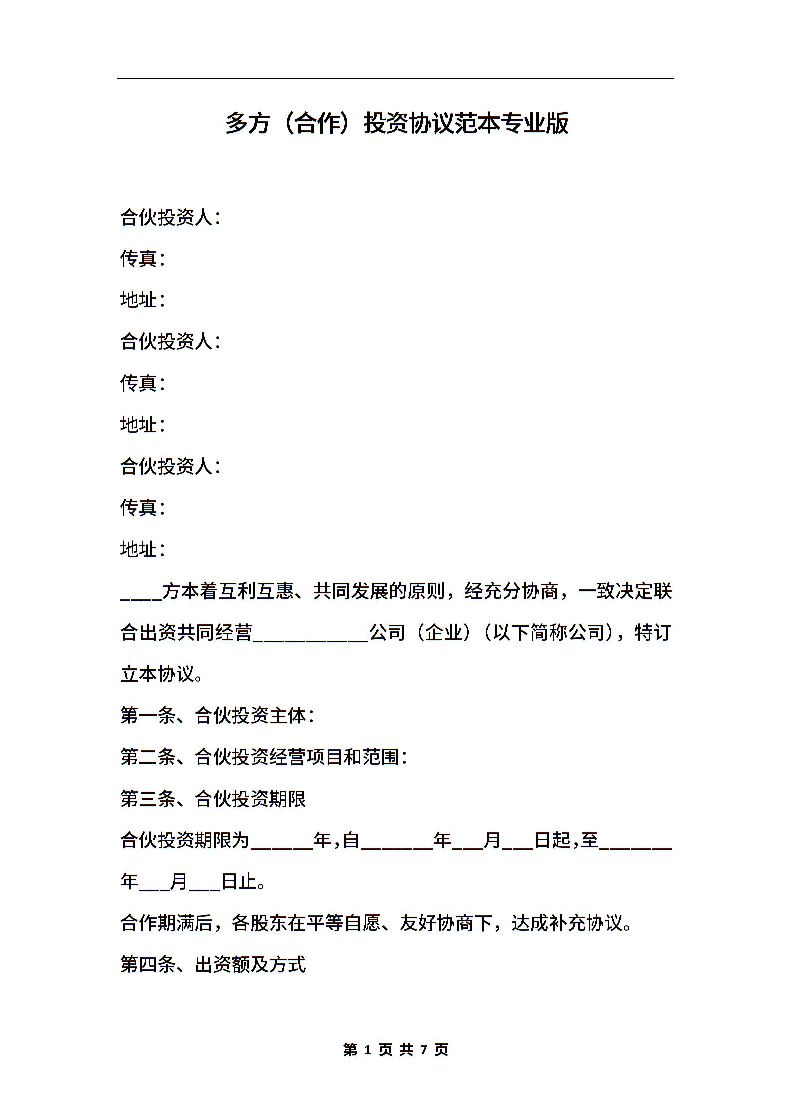 当前位置:量子办公 > 合同模板 > 合作合同 >