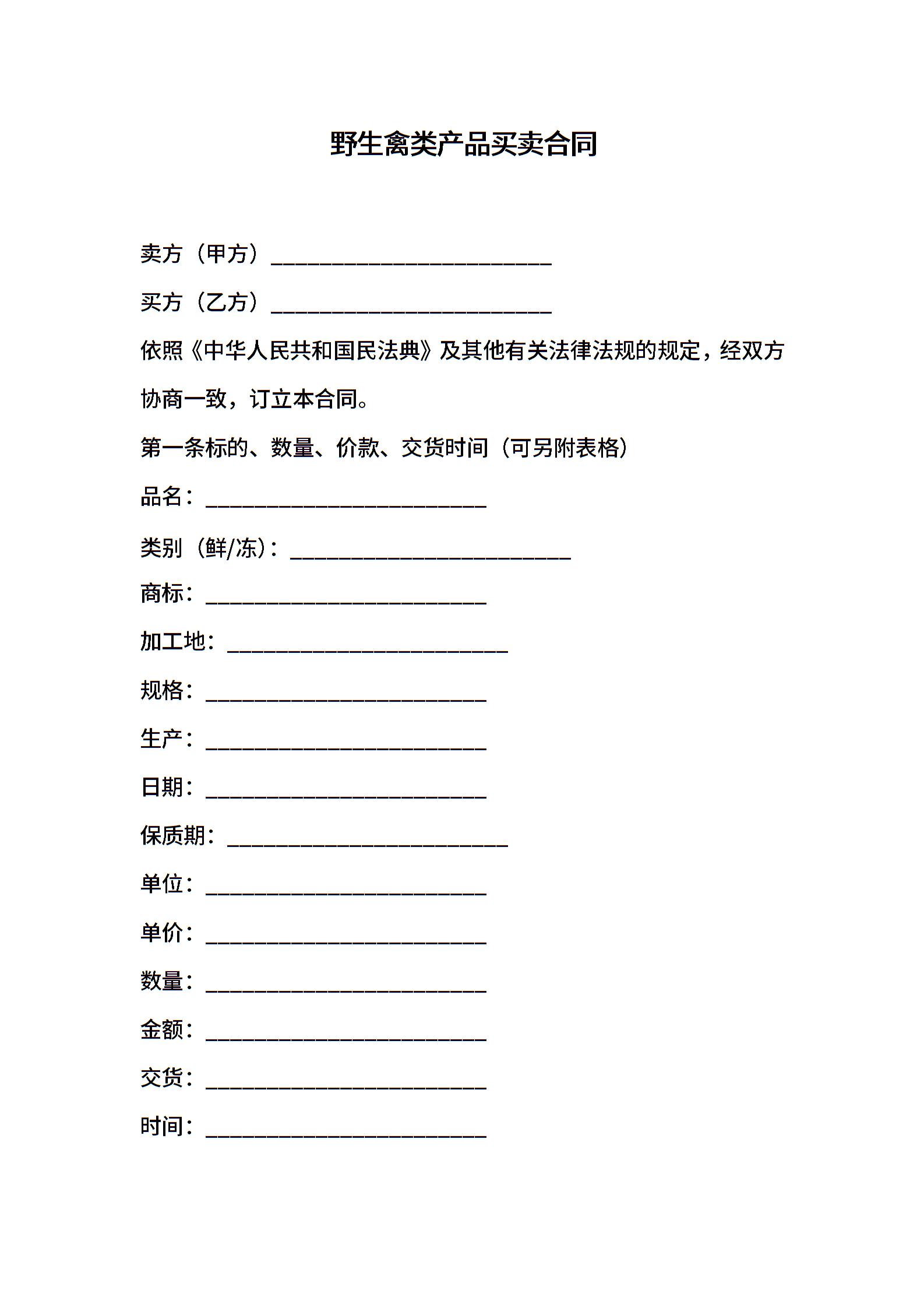 野生禽类产品买卖合同