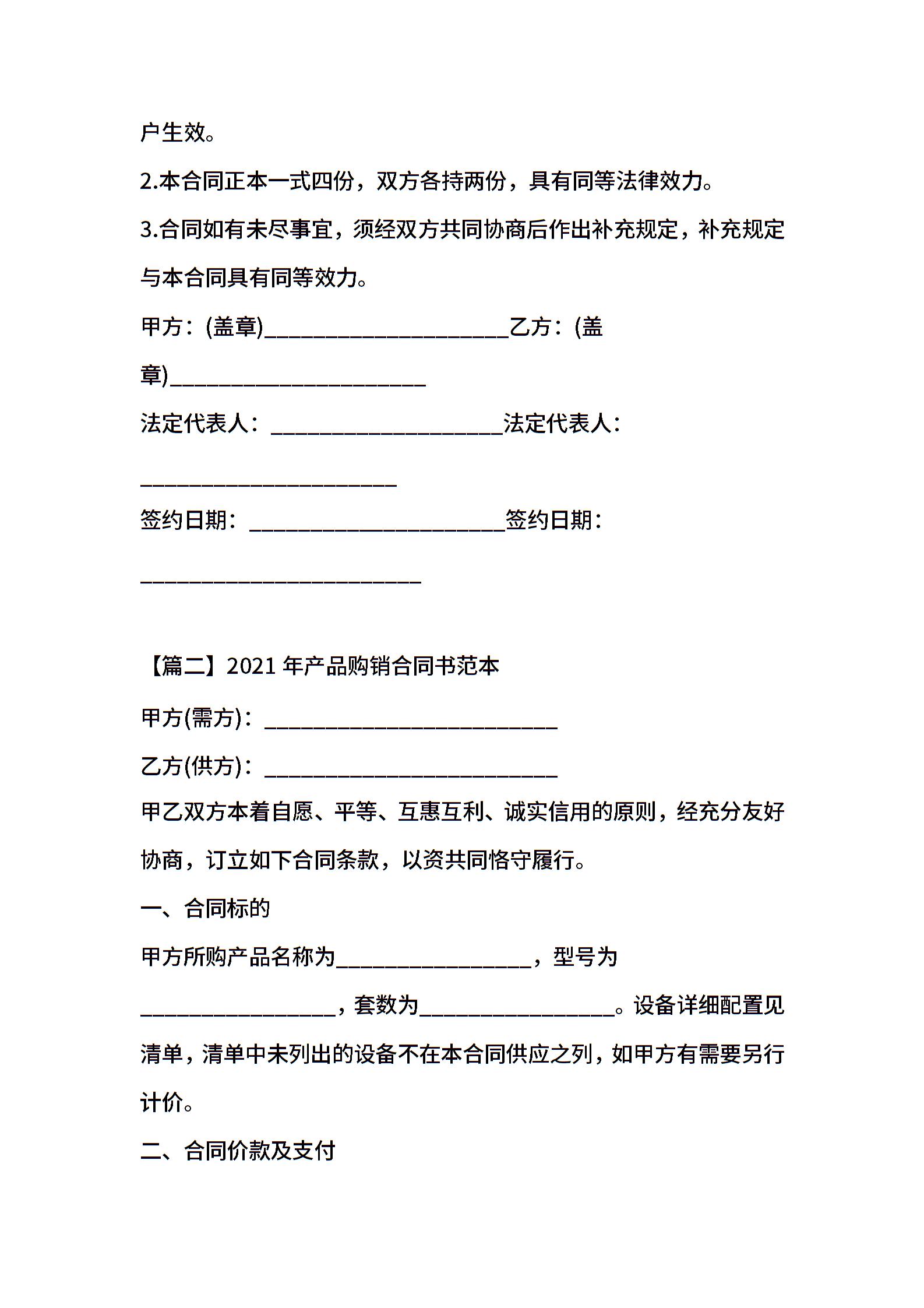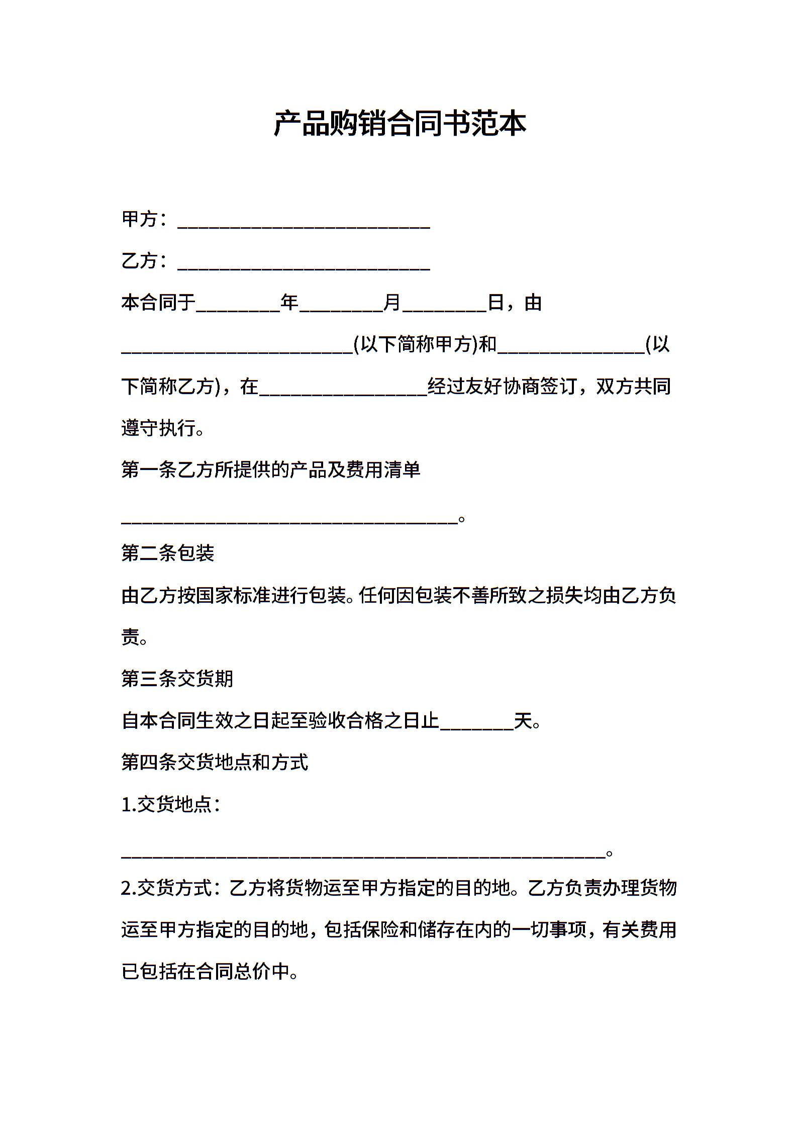 2021年产品购销合同书范本