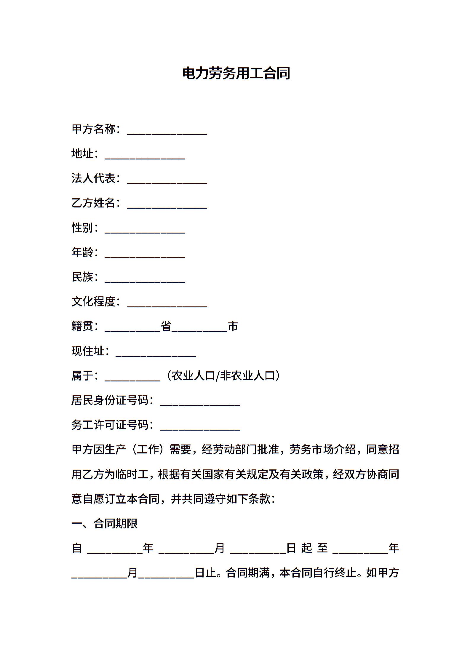 电力劳务用工合同