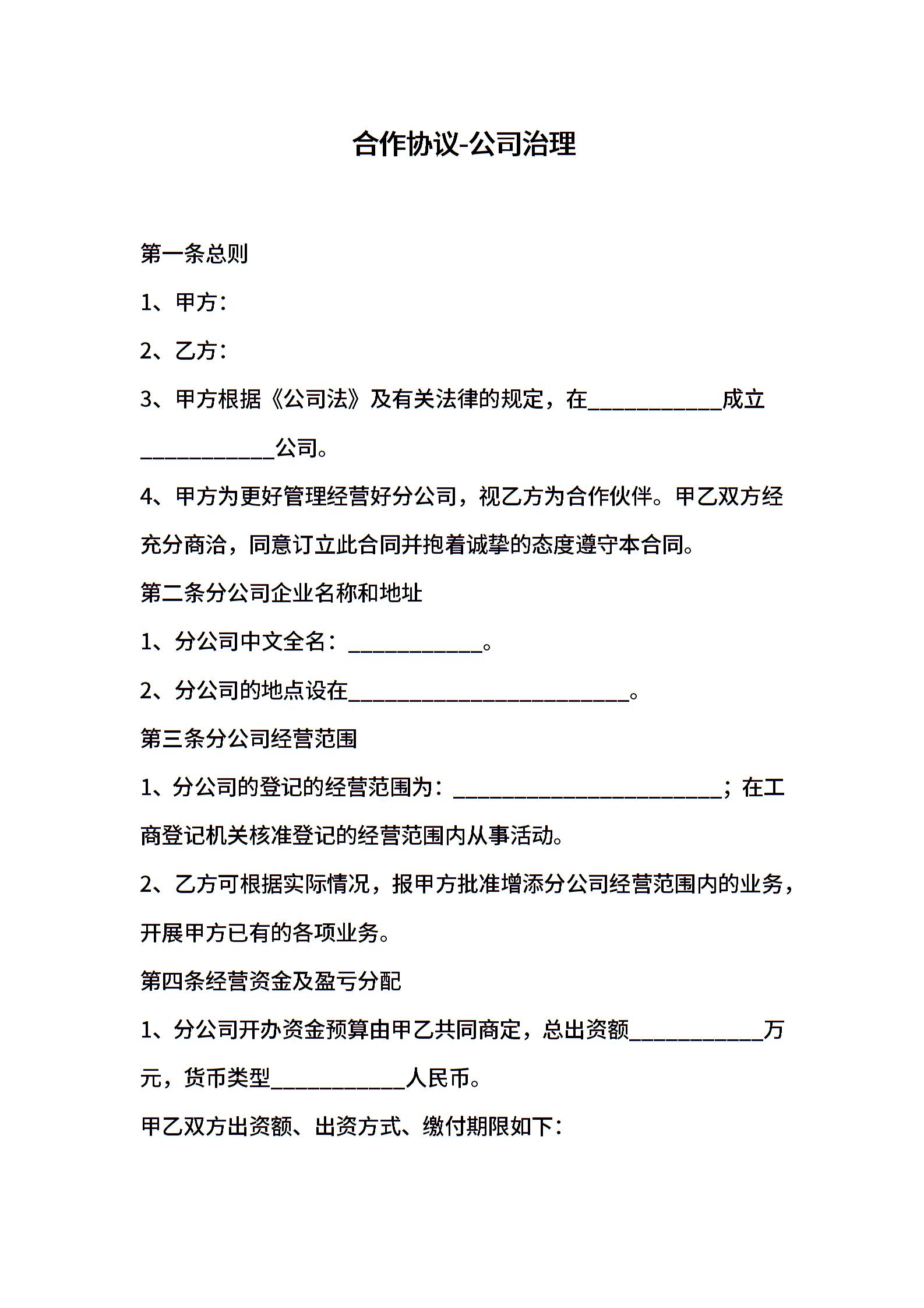合作协议-公司治理