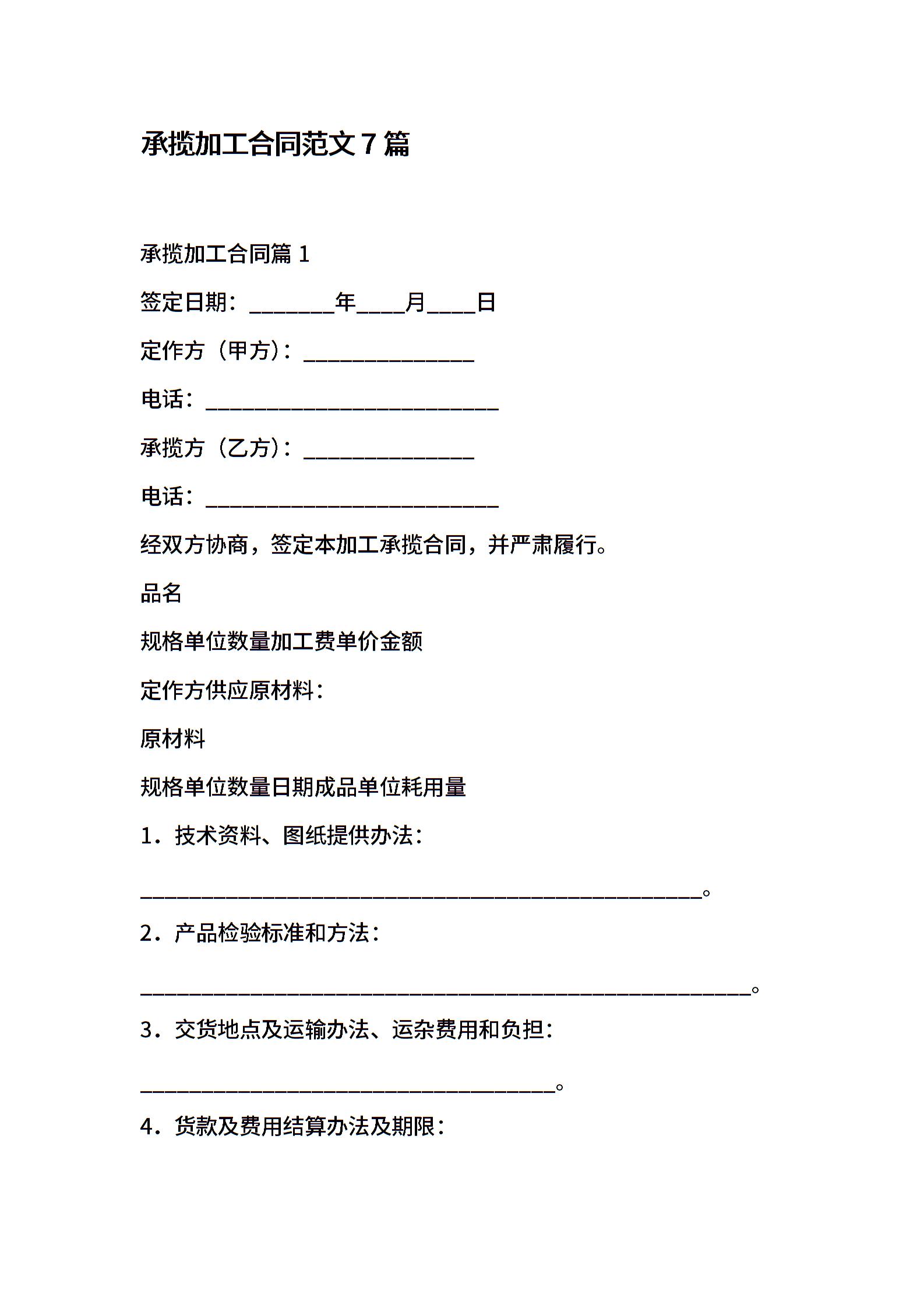 承揽加工合同范文7篇