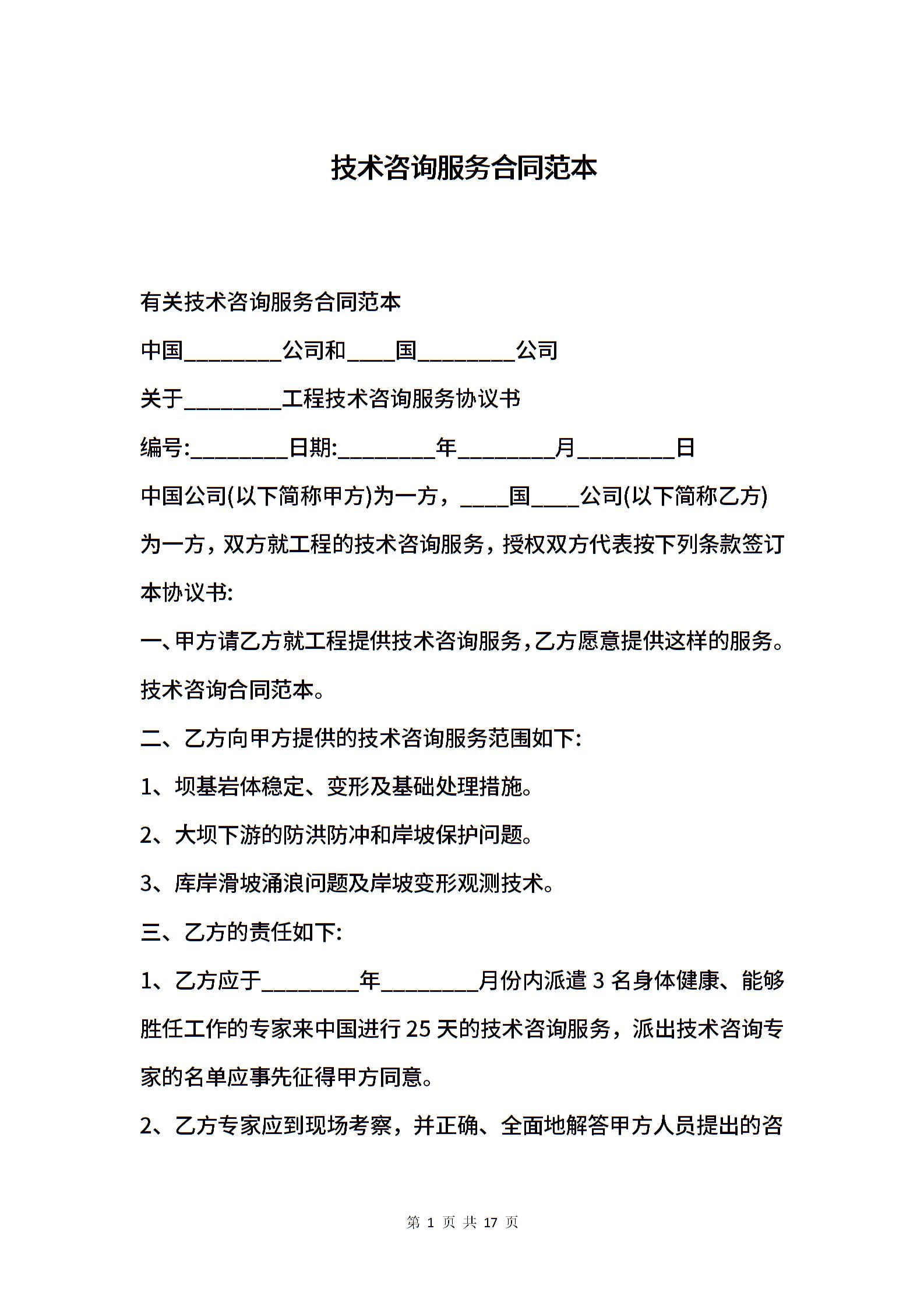 技术咨询服务合同范例