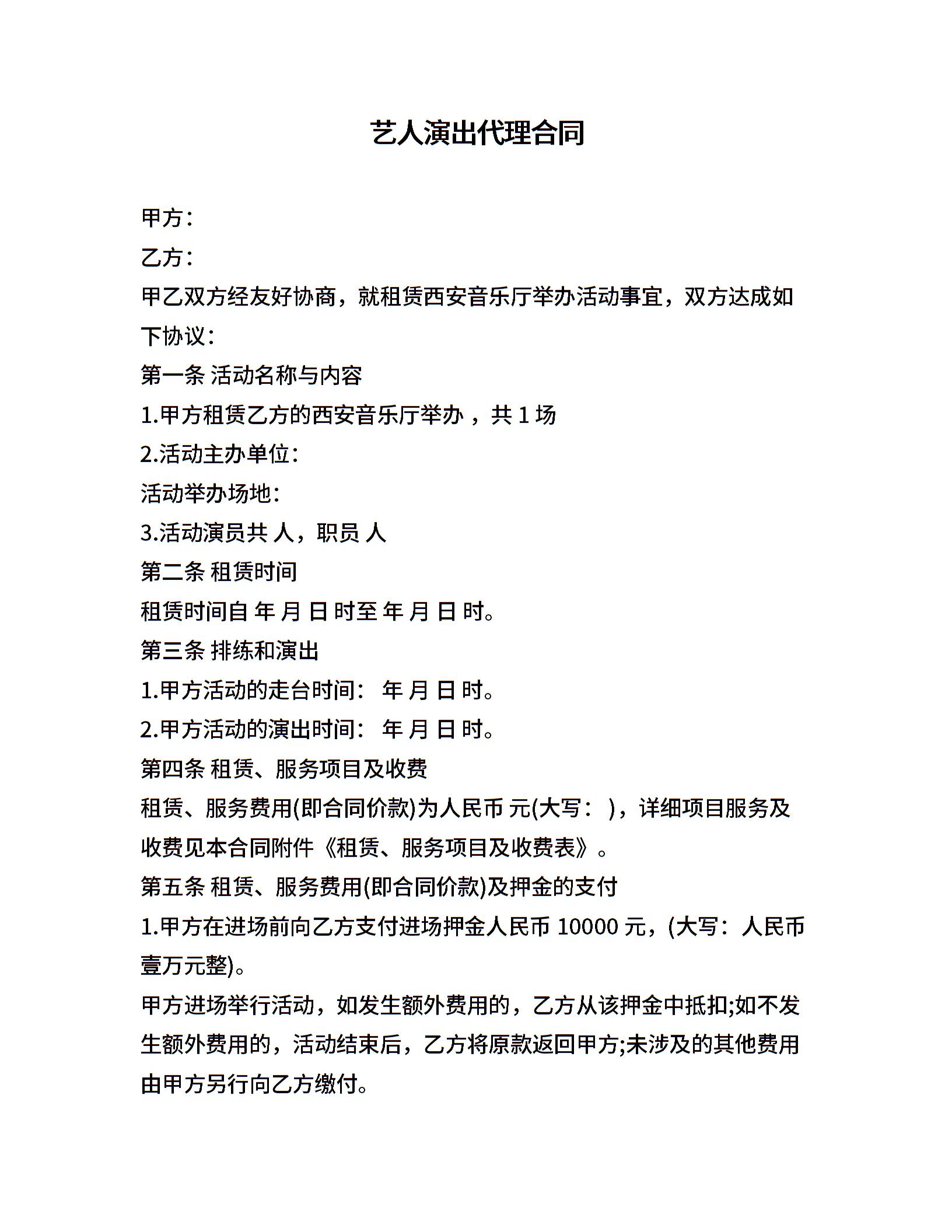 艺人演出代理合同