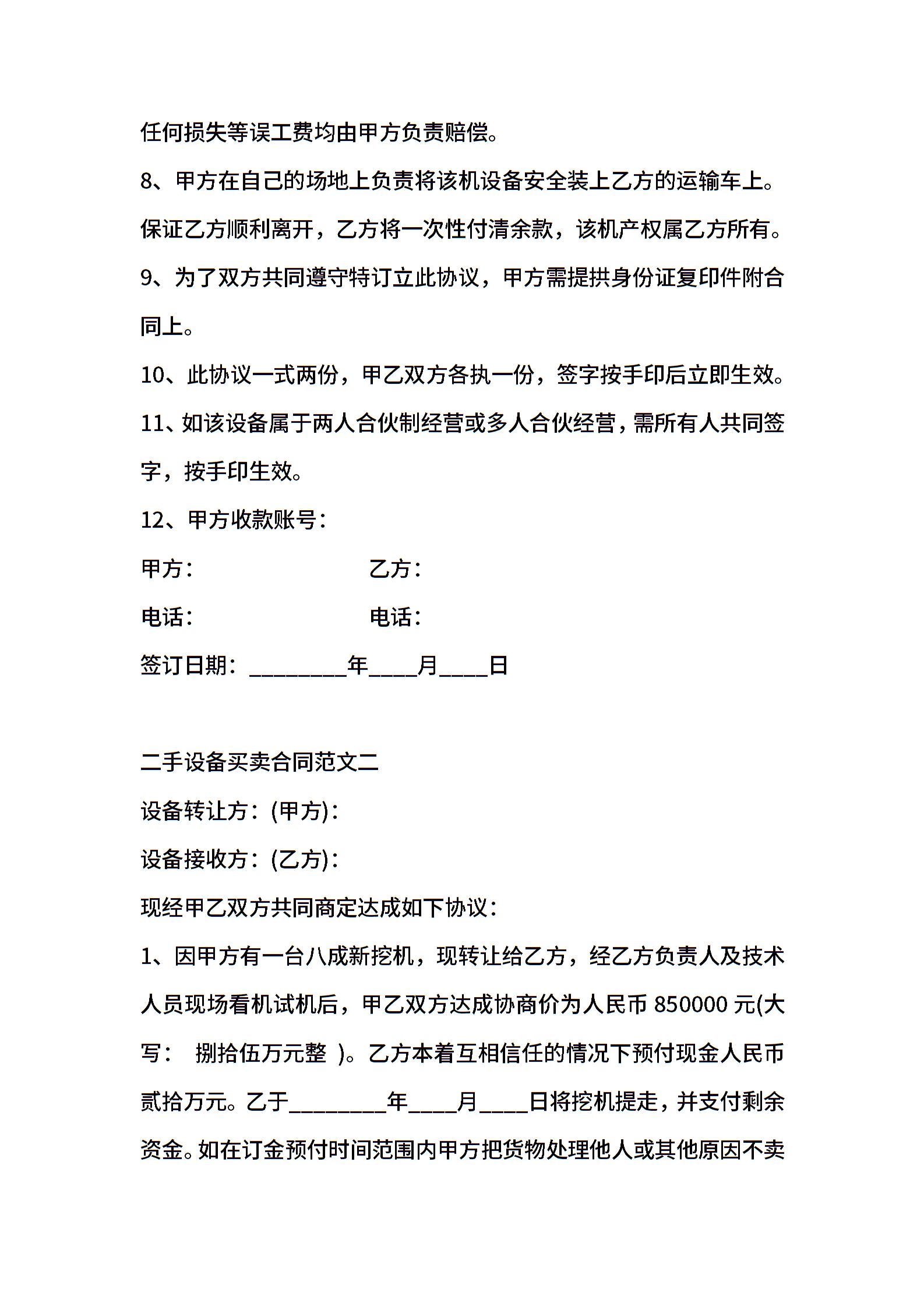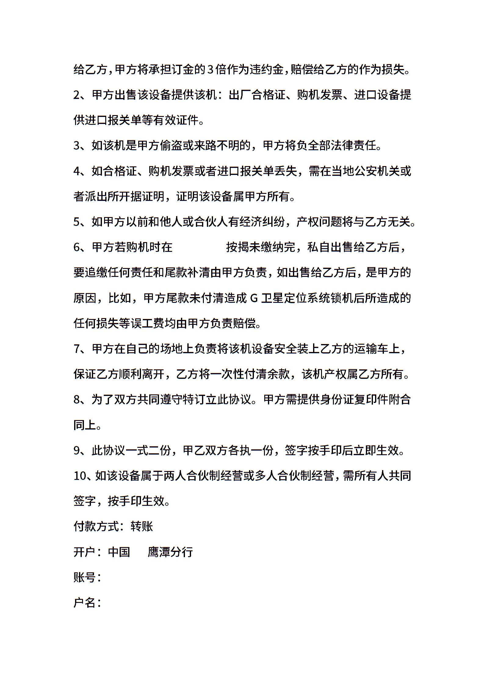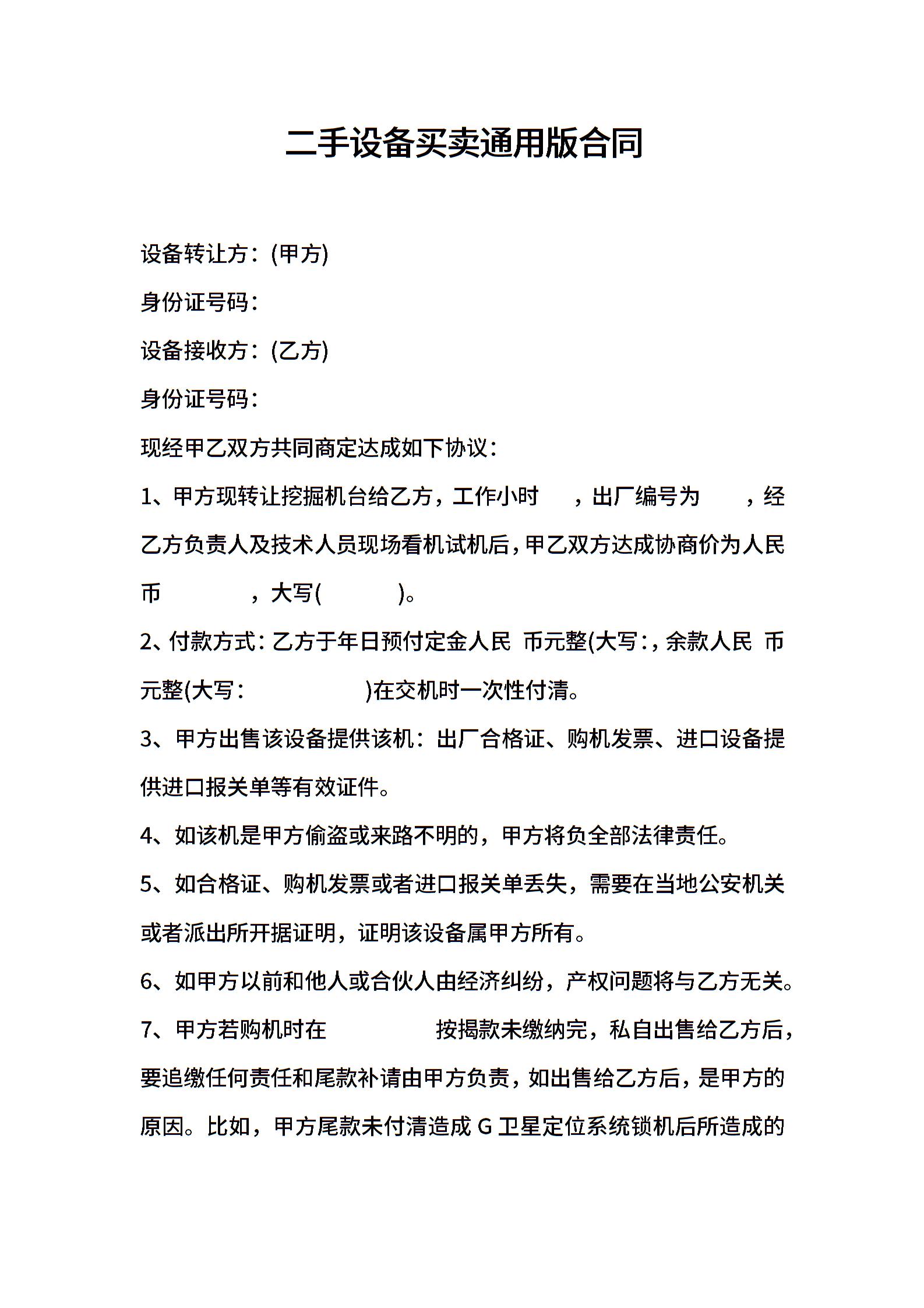 二手设备买卖通用版合同