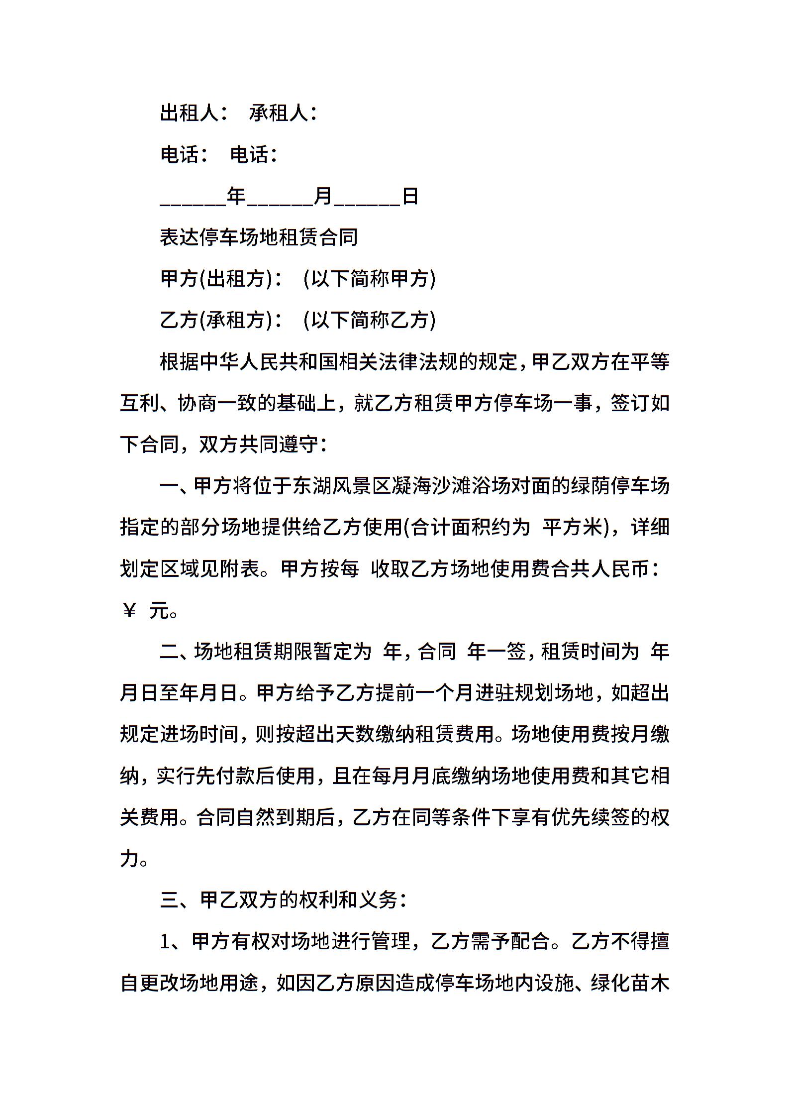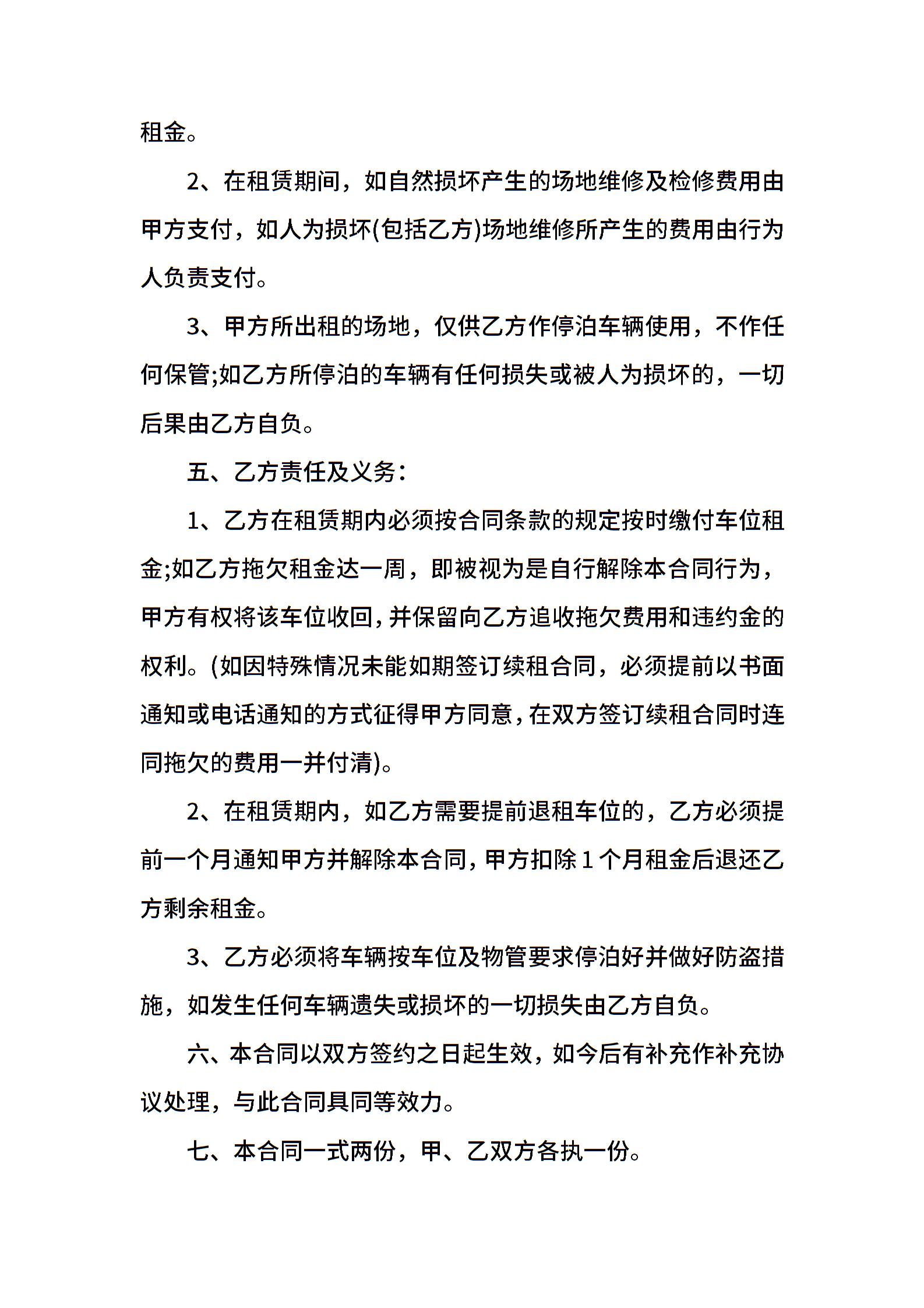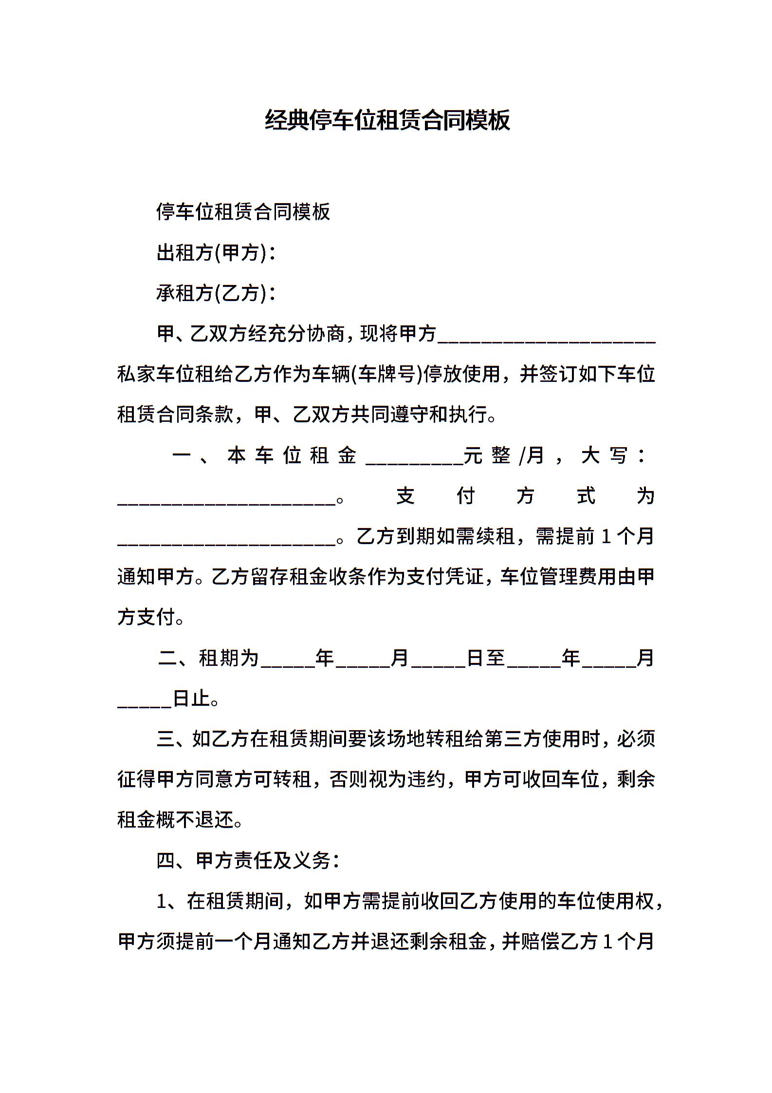 经典停车位租赁合同模板