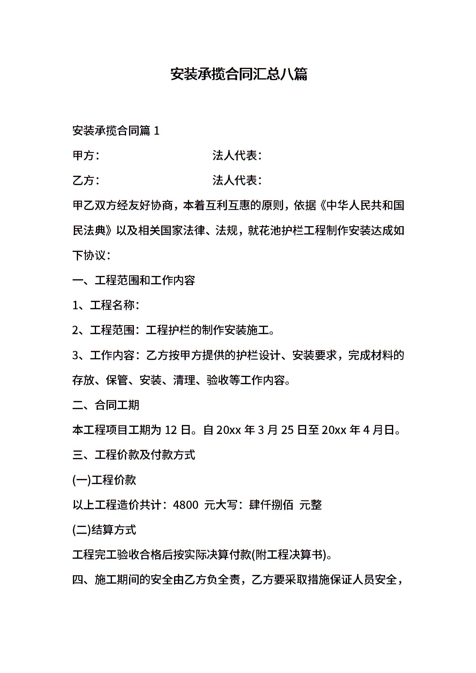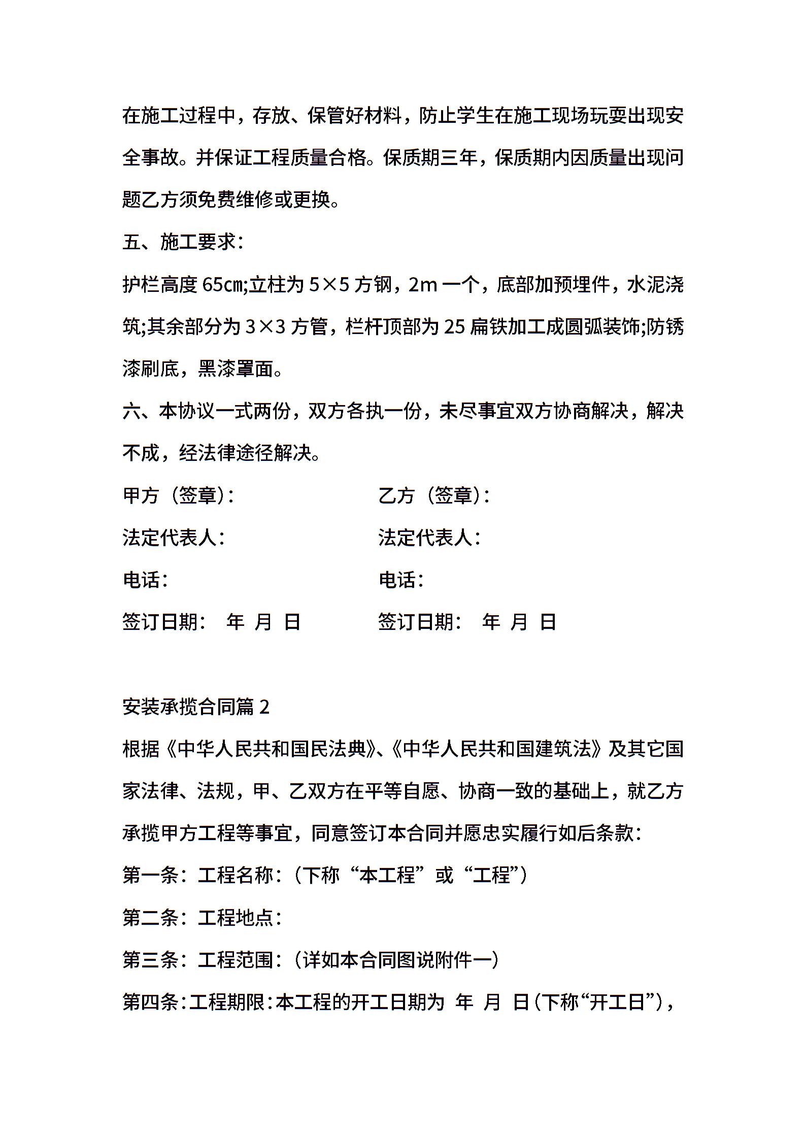 安装承揽合同汇总八篇