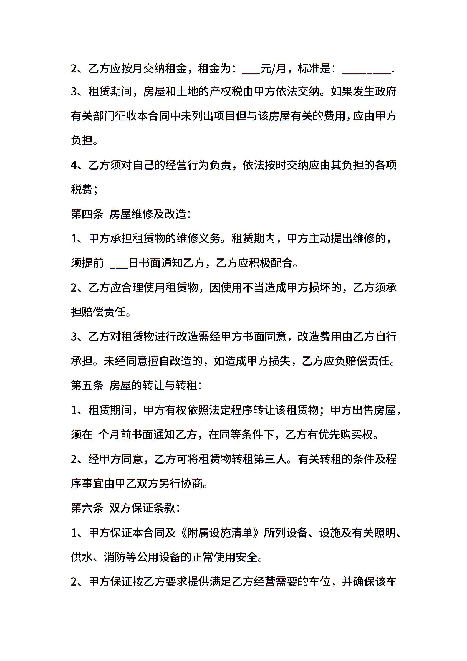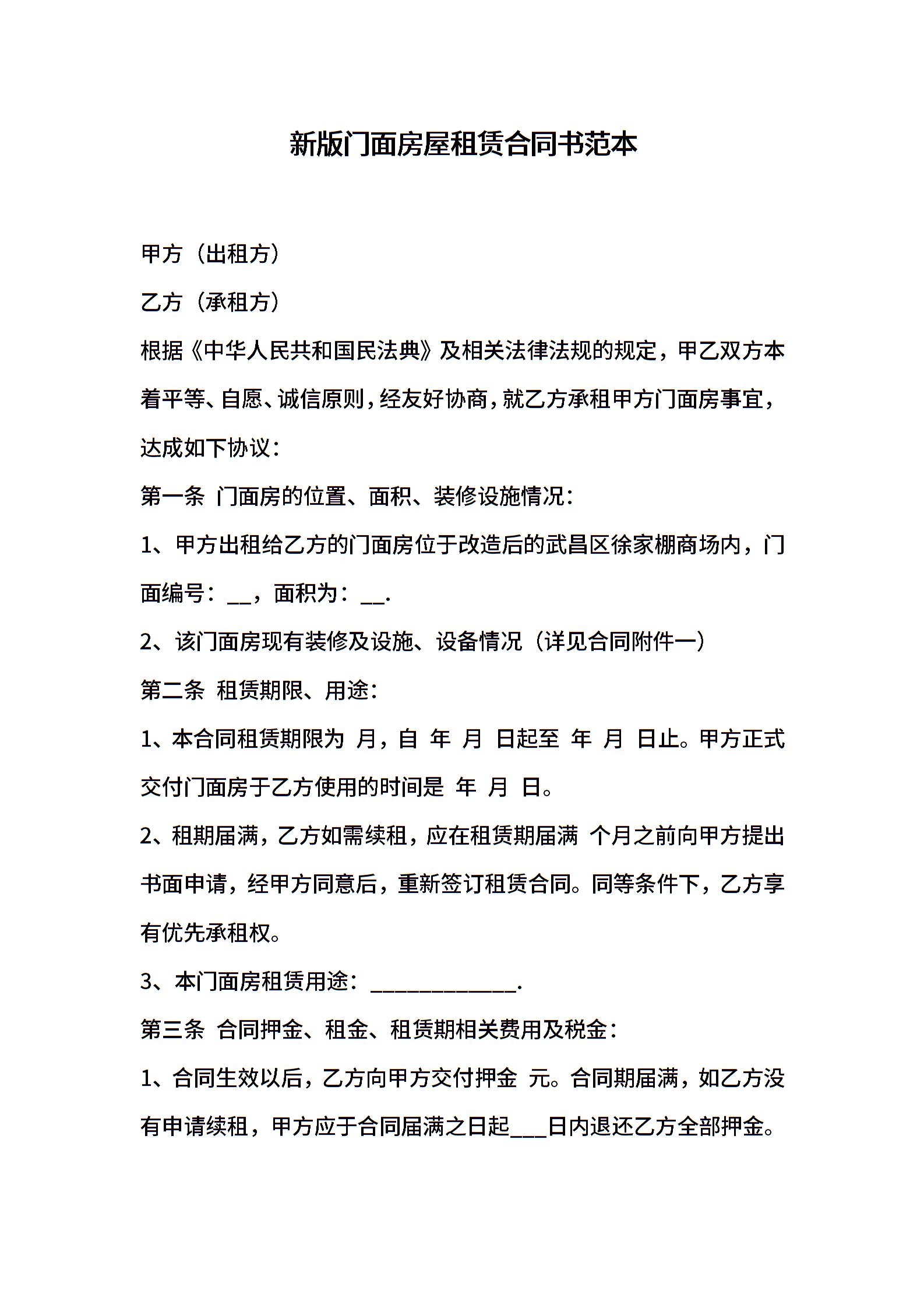 新版门面房屋租赁合同书范本