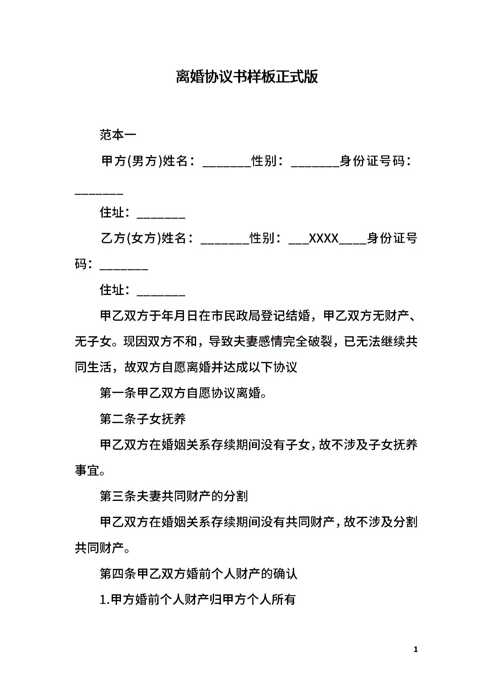 离婚协议书样板正式版