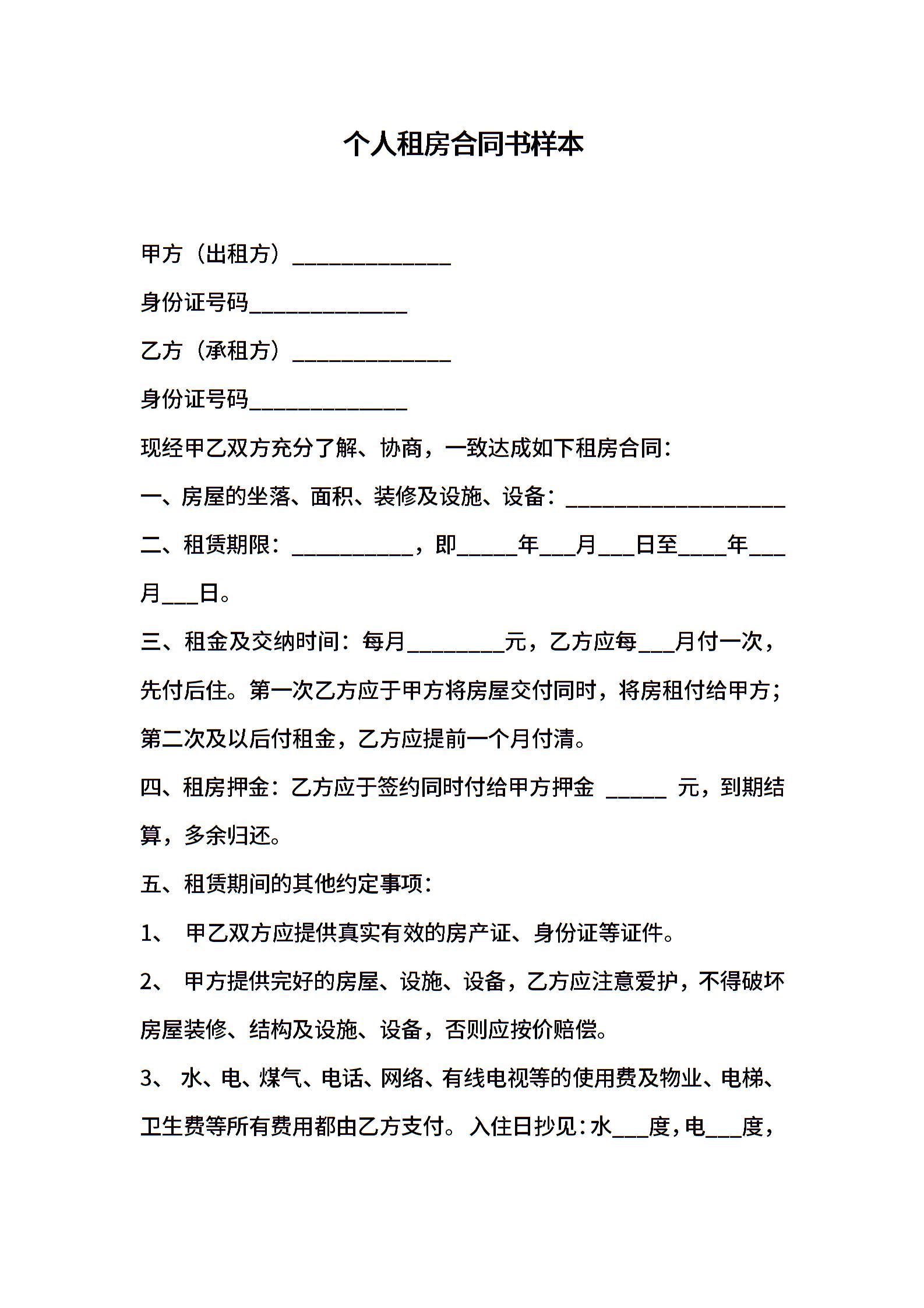 个人租房合同书样本 (2)