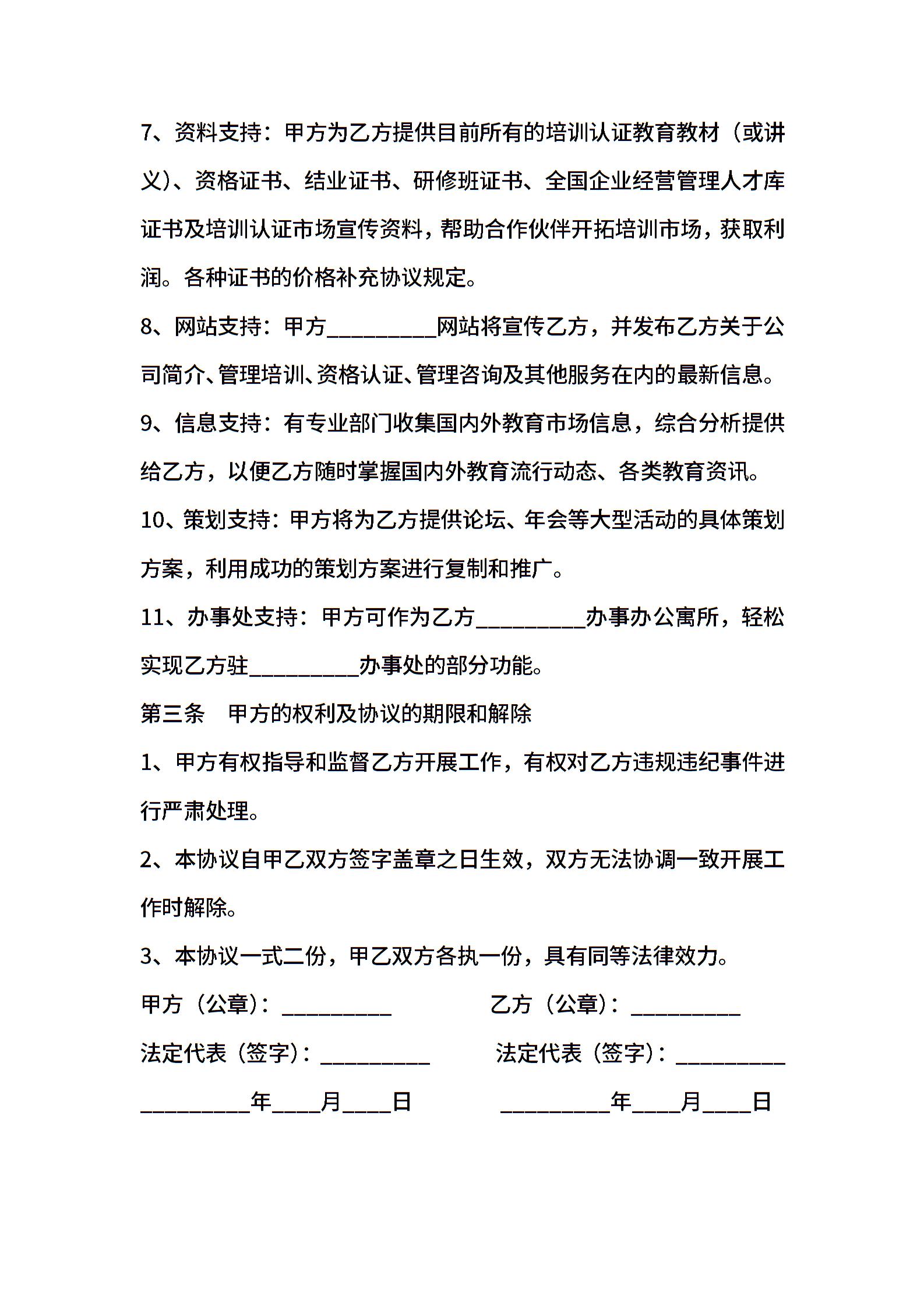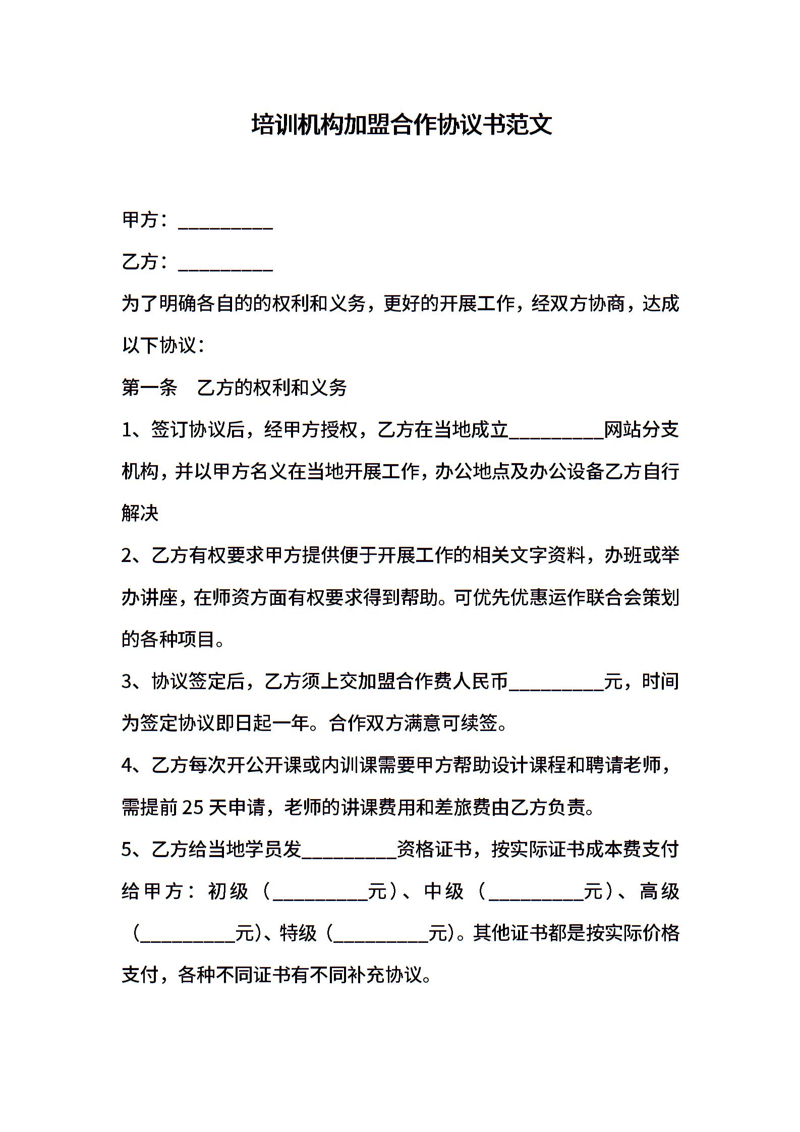 培训机构加盟合作协议书范文