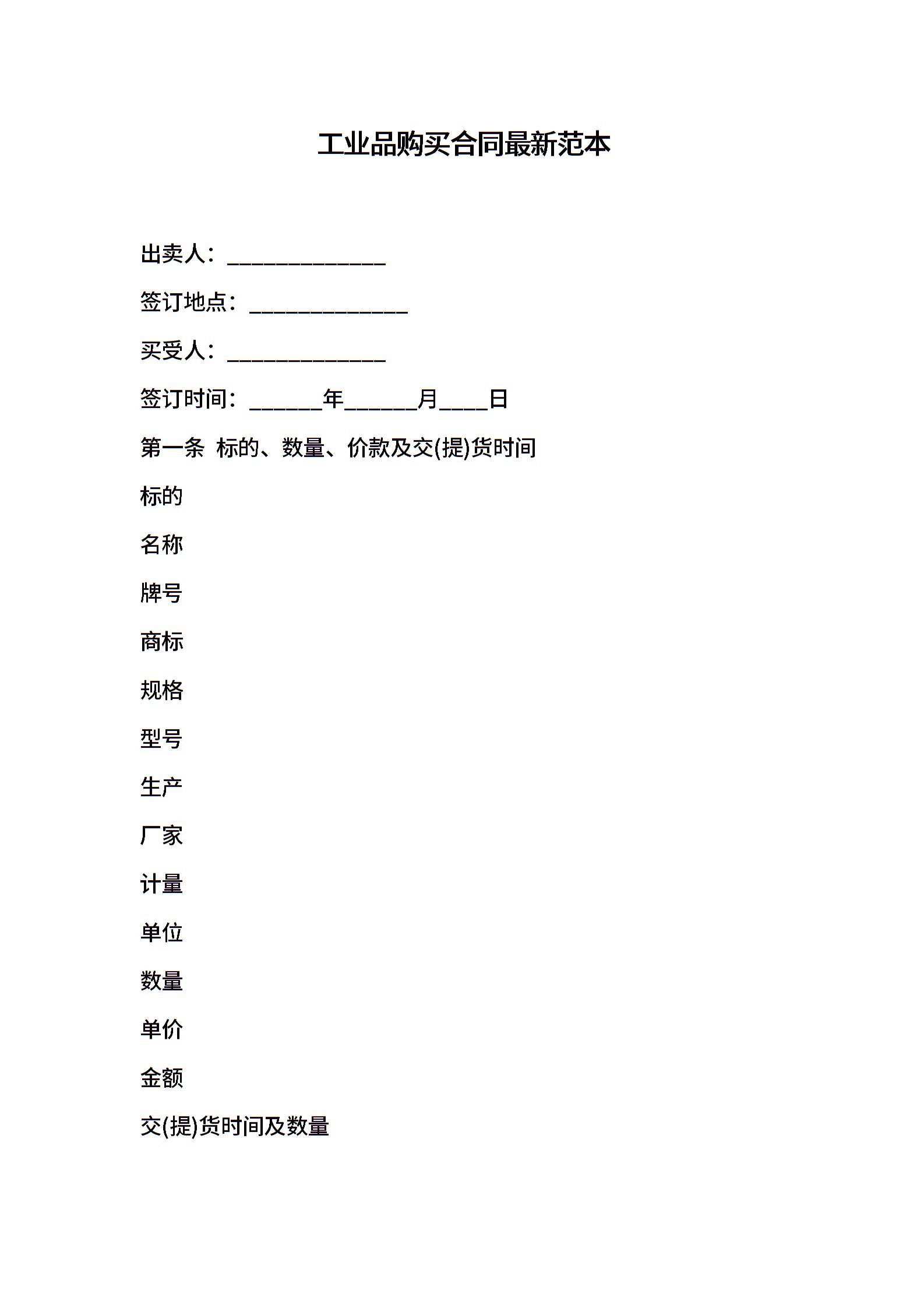 工业品购买合同最新范本