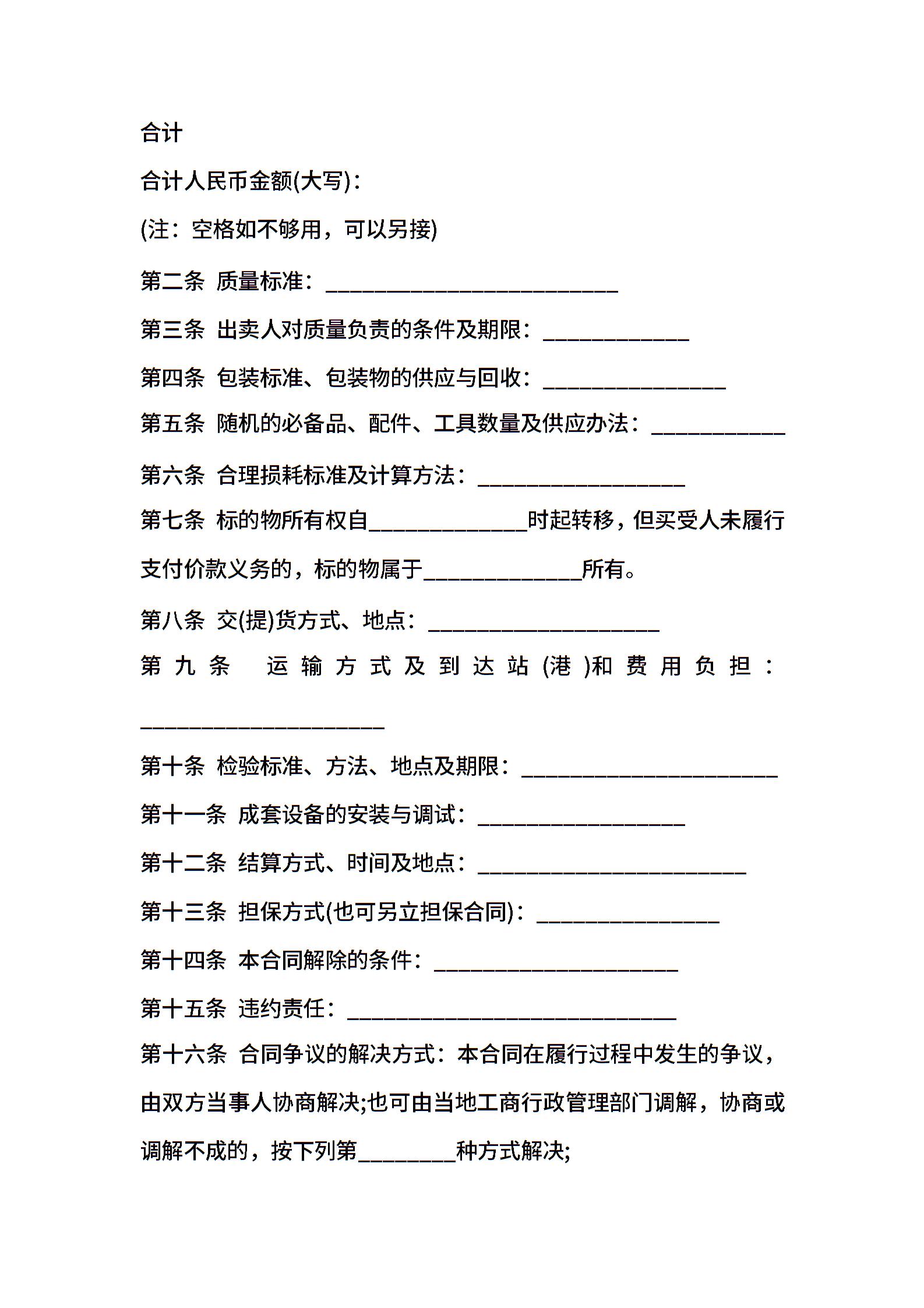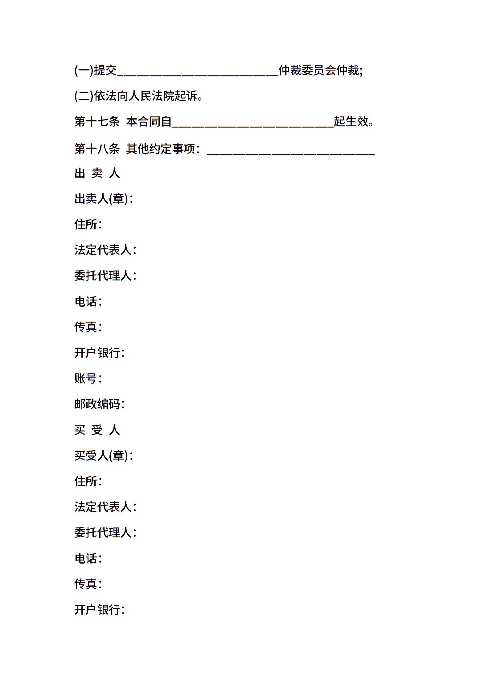 当前位置:量子办公 > 合同模板 > 买卖合同 >