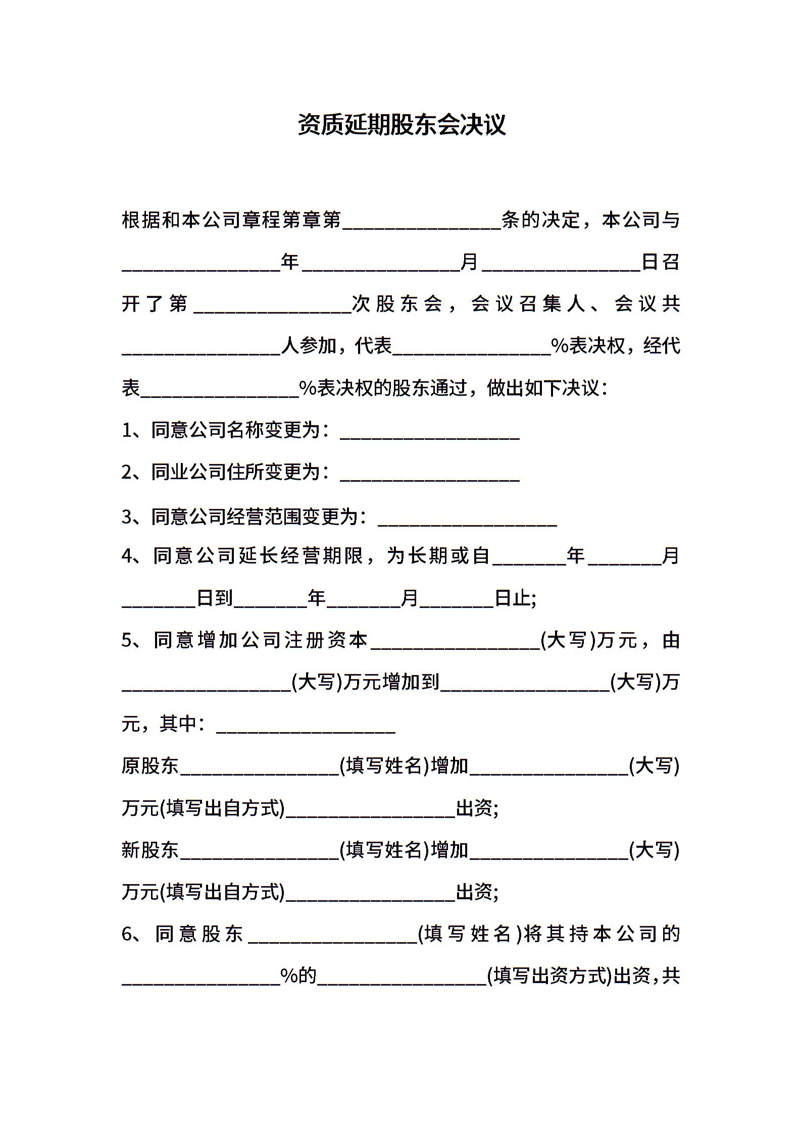 资质延期股东会决议
