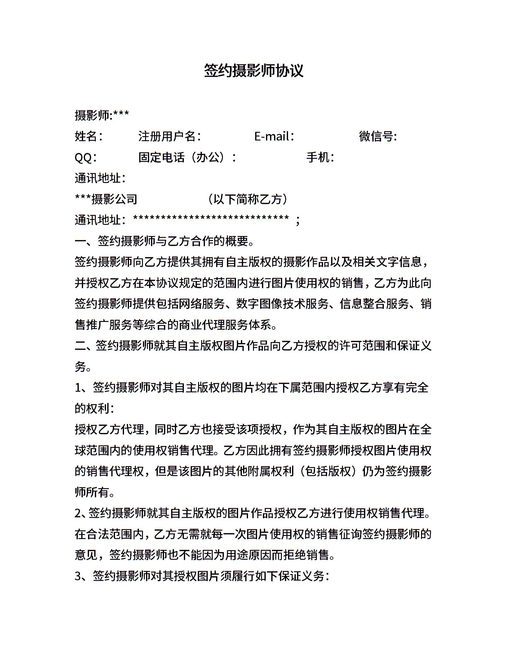 签约摄影师协议