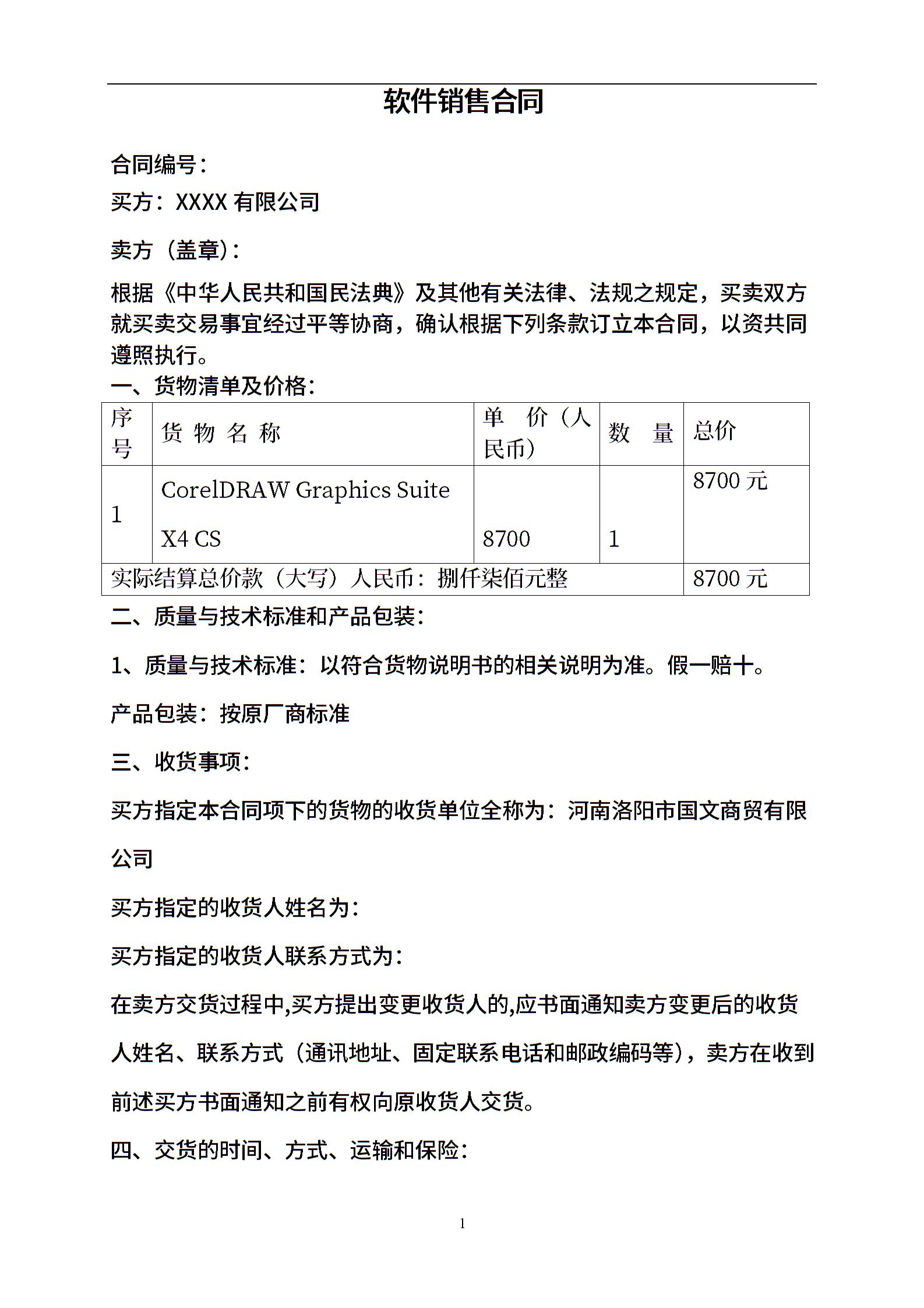 当前位置:量子办公 > 合同模板 > 销售合同 >