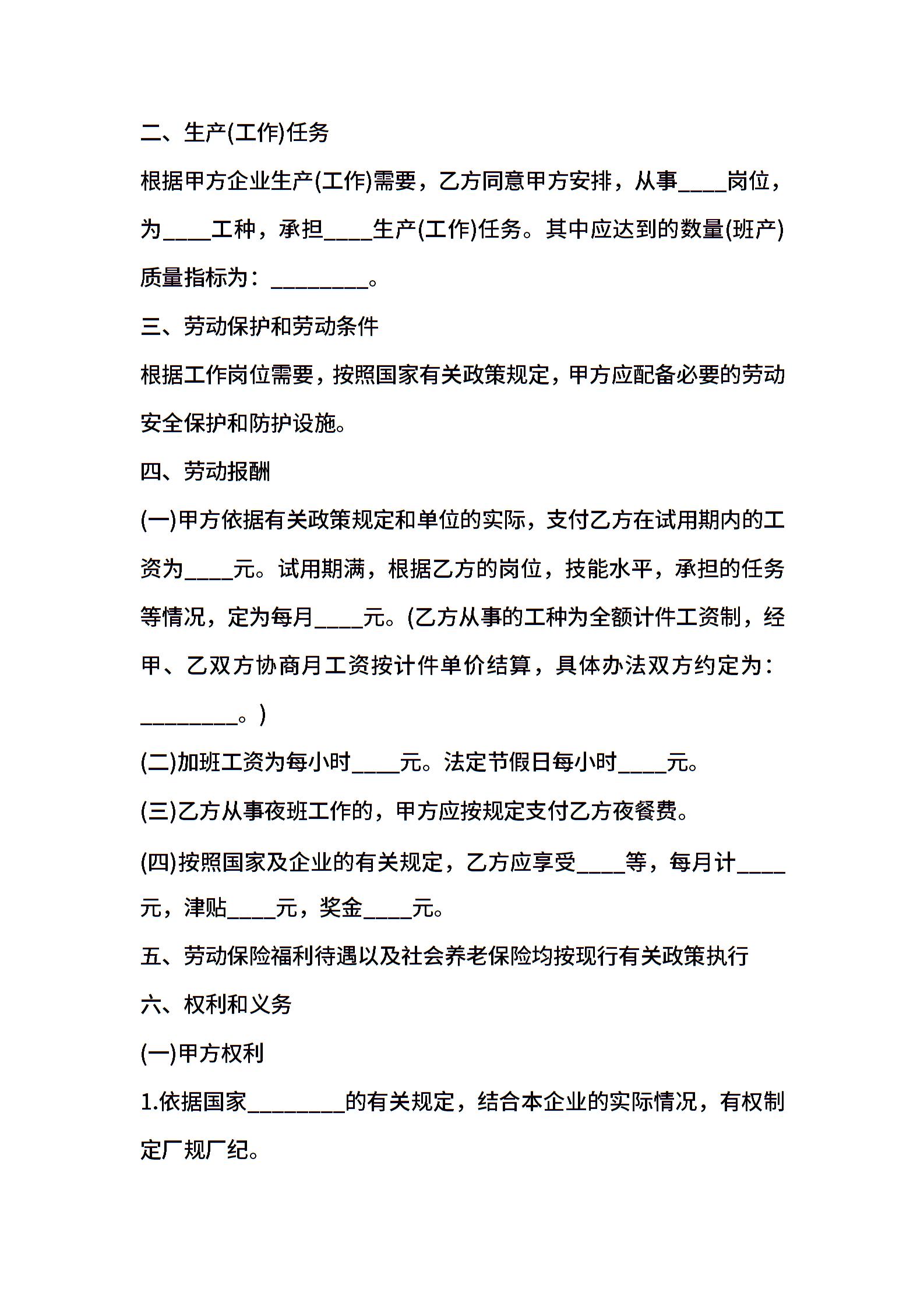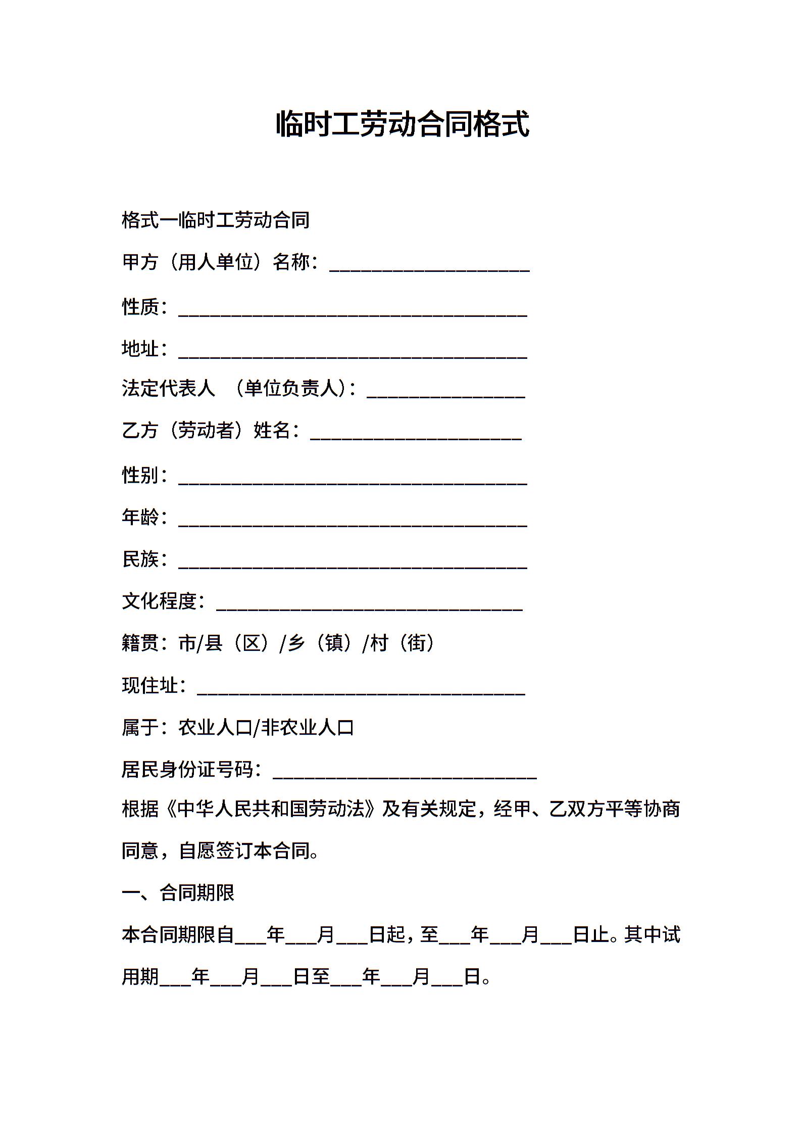 临时工劳动合同格式