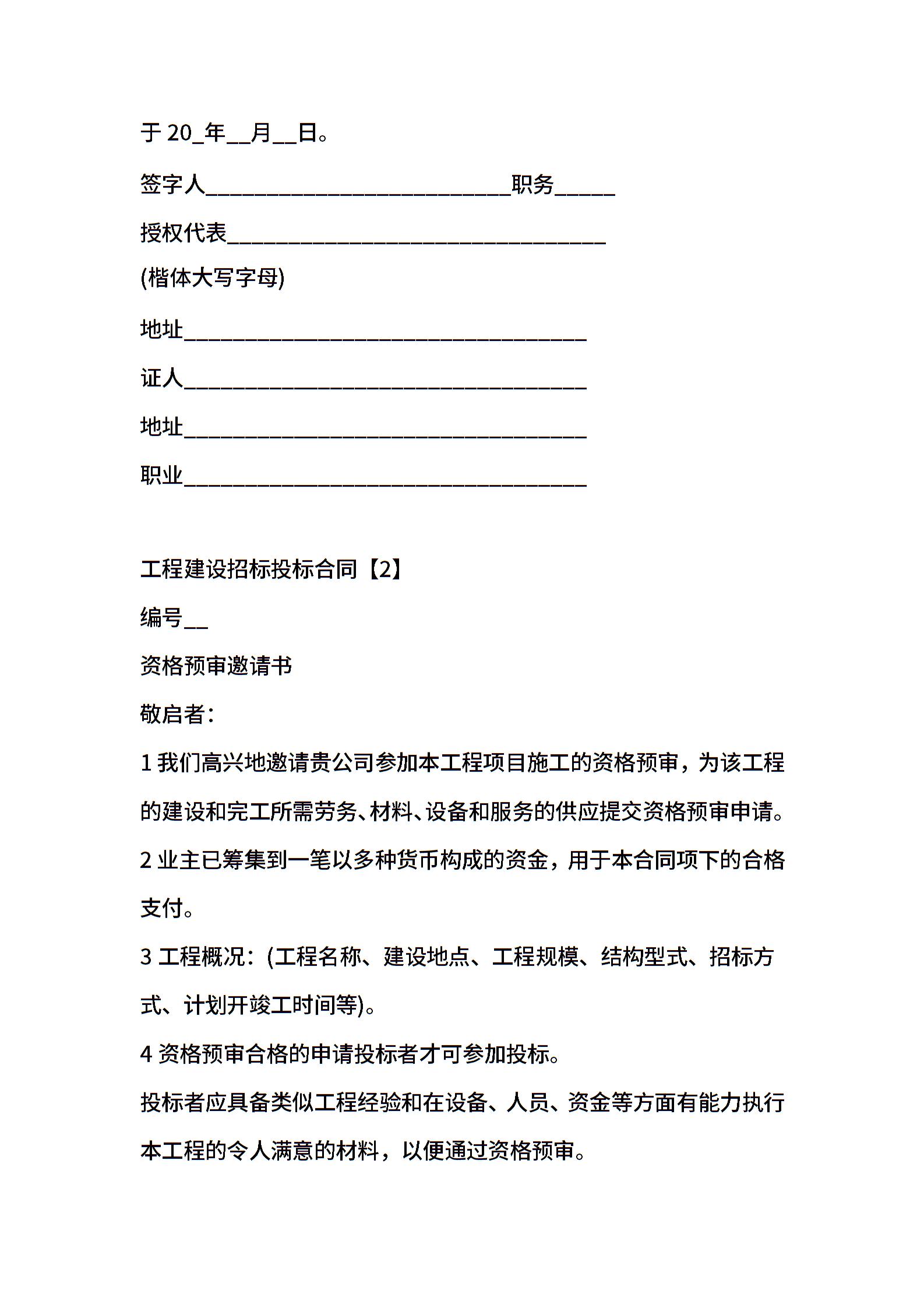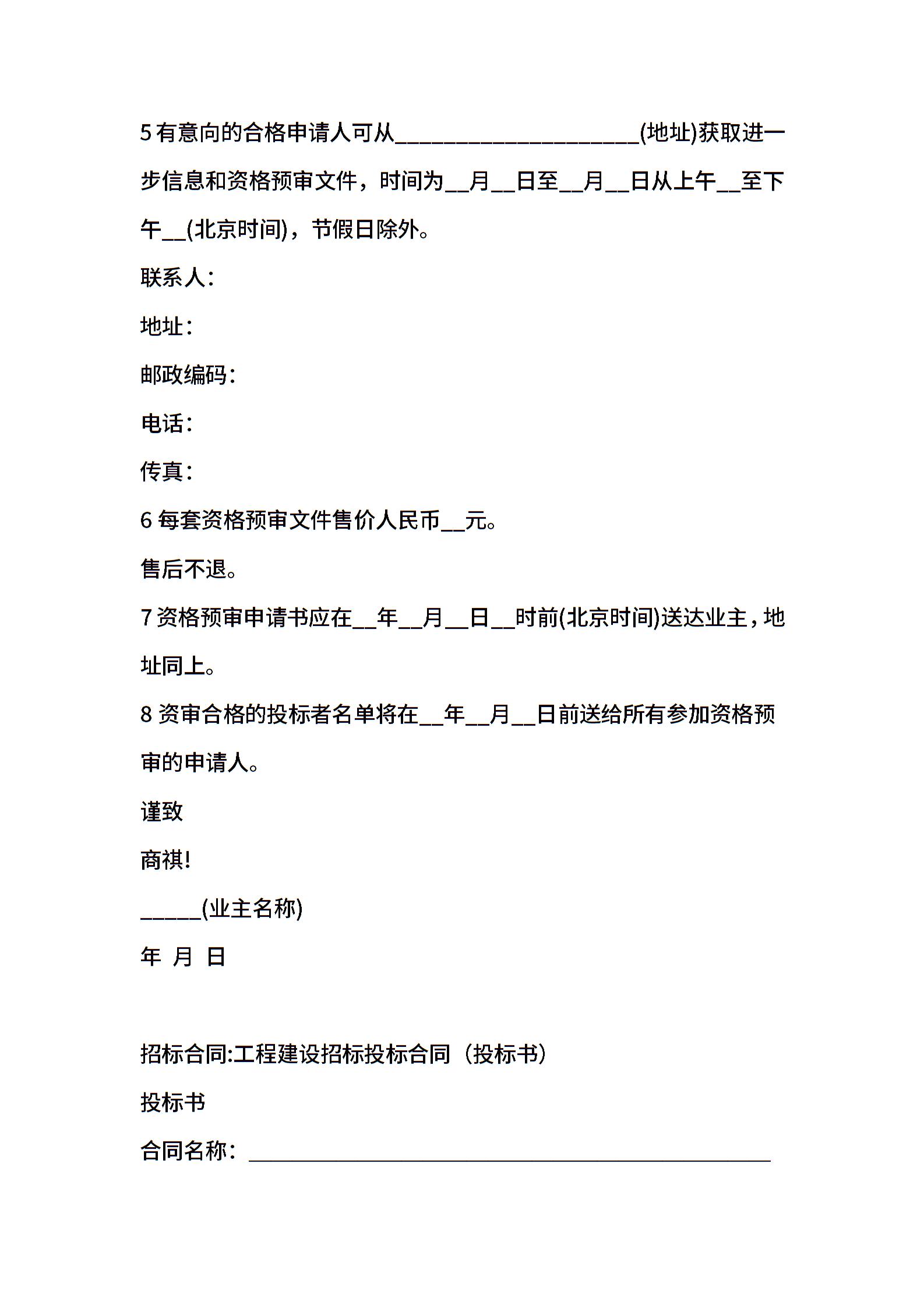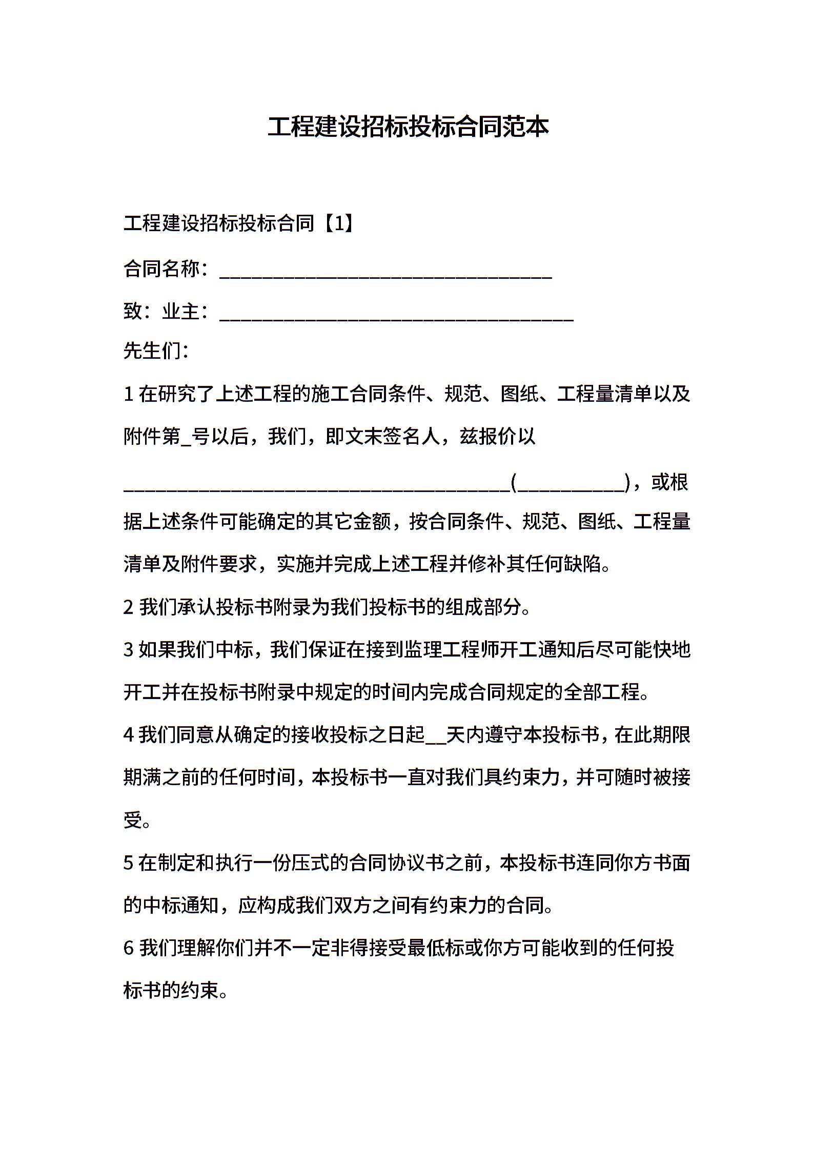 工程建设招标投标合同范本