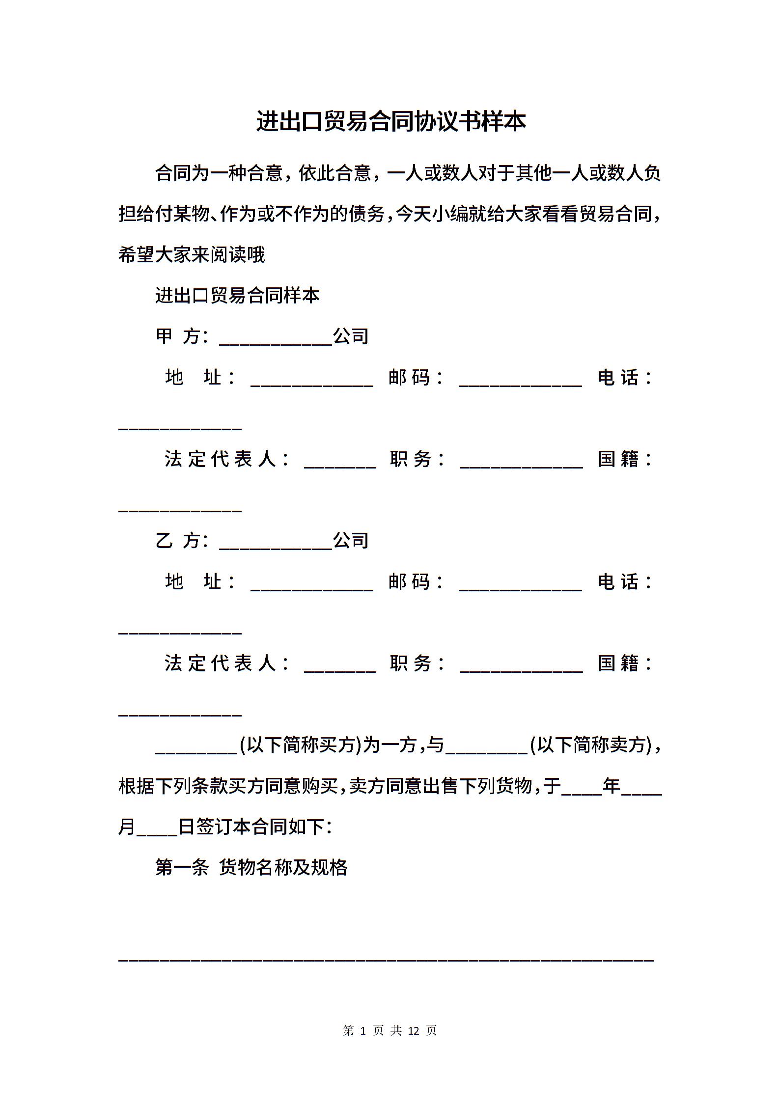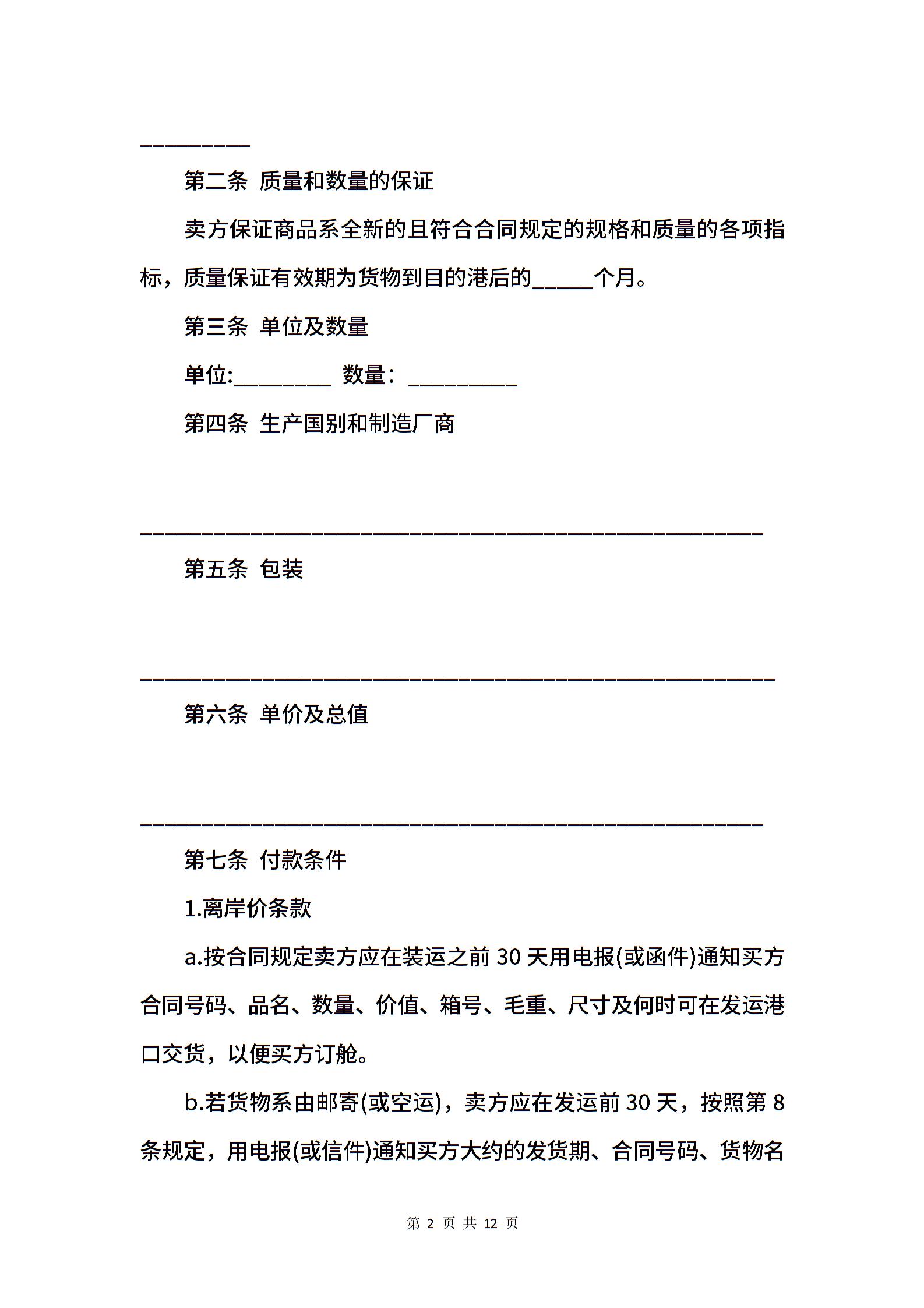 当前位置:量子办公 > 合同模板 > 贸易合同 >