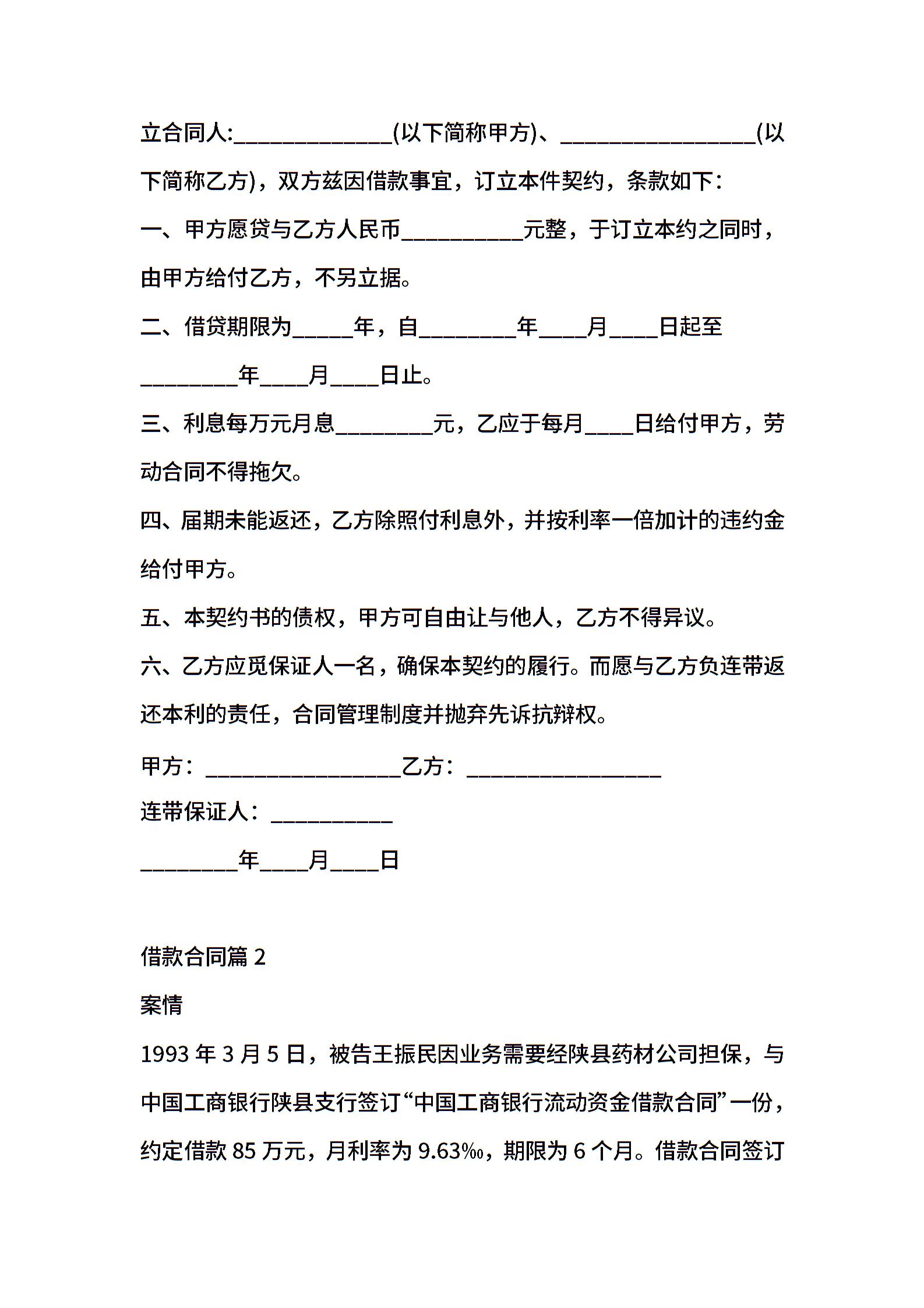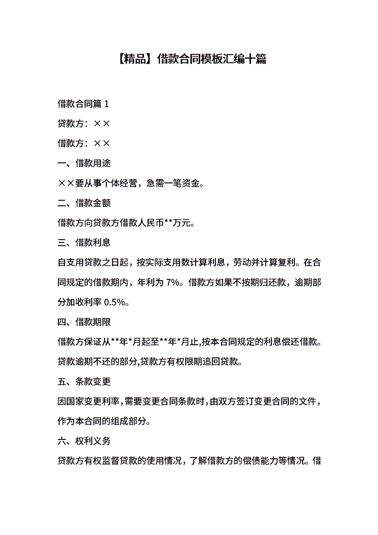 借款合同模板汇编十篇