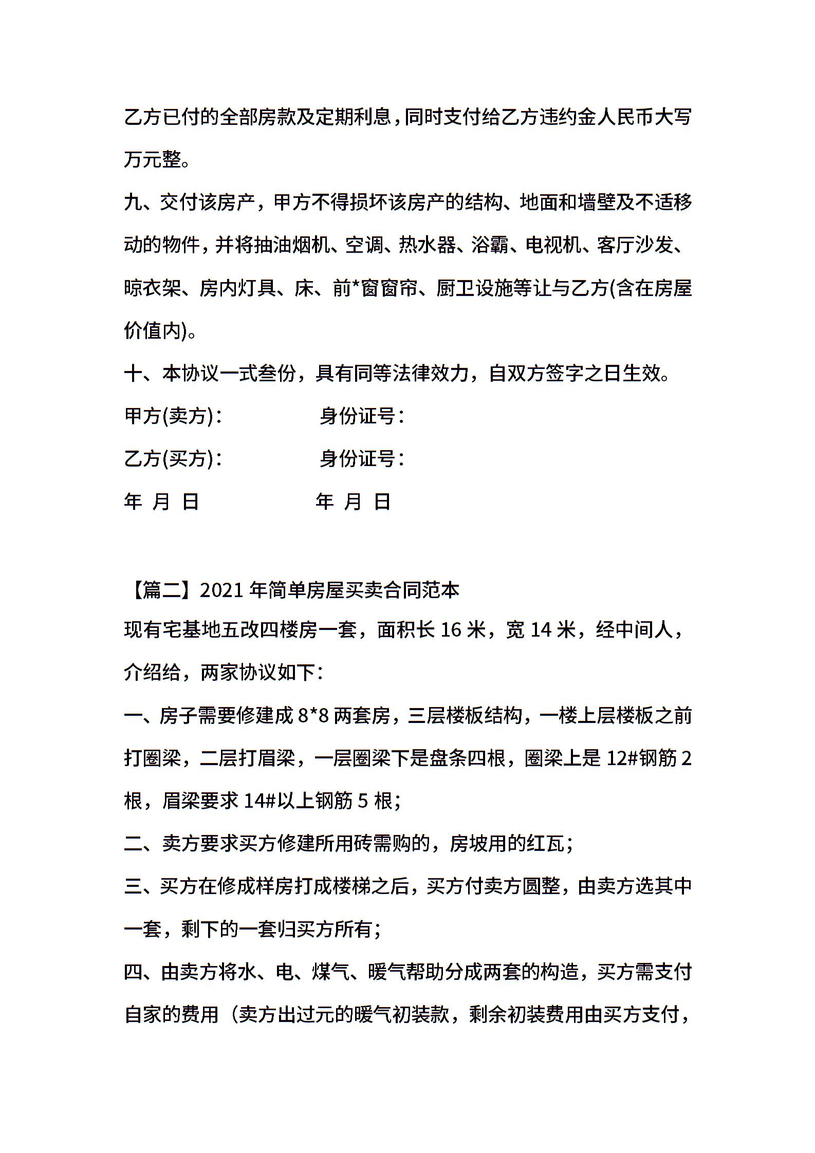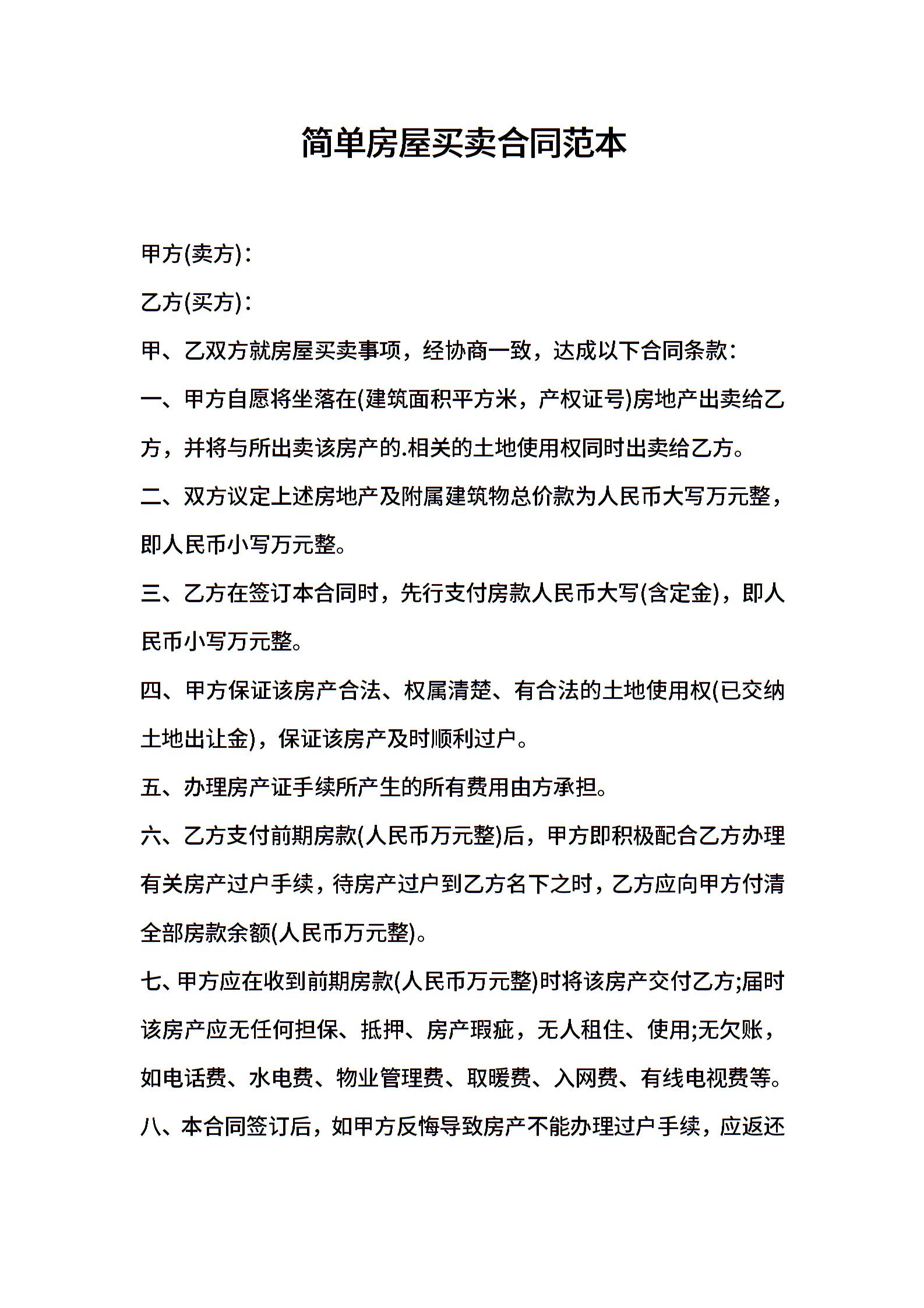 简单房屋买卖合同范本