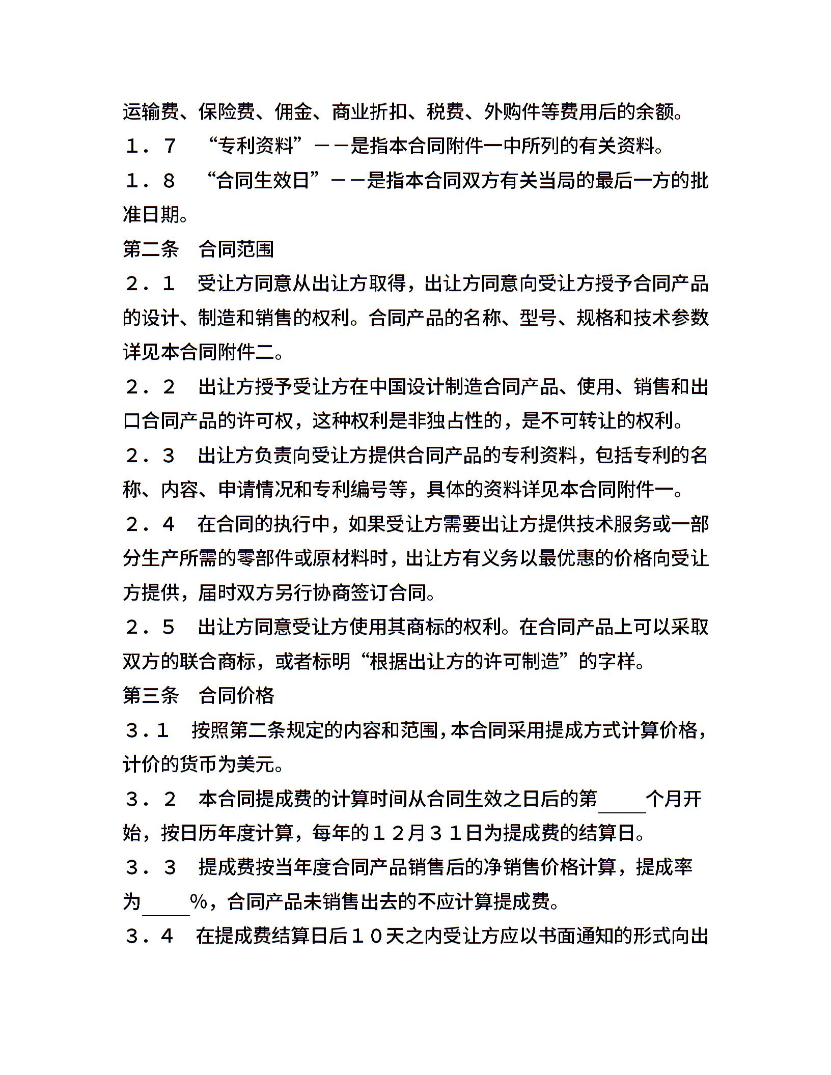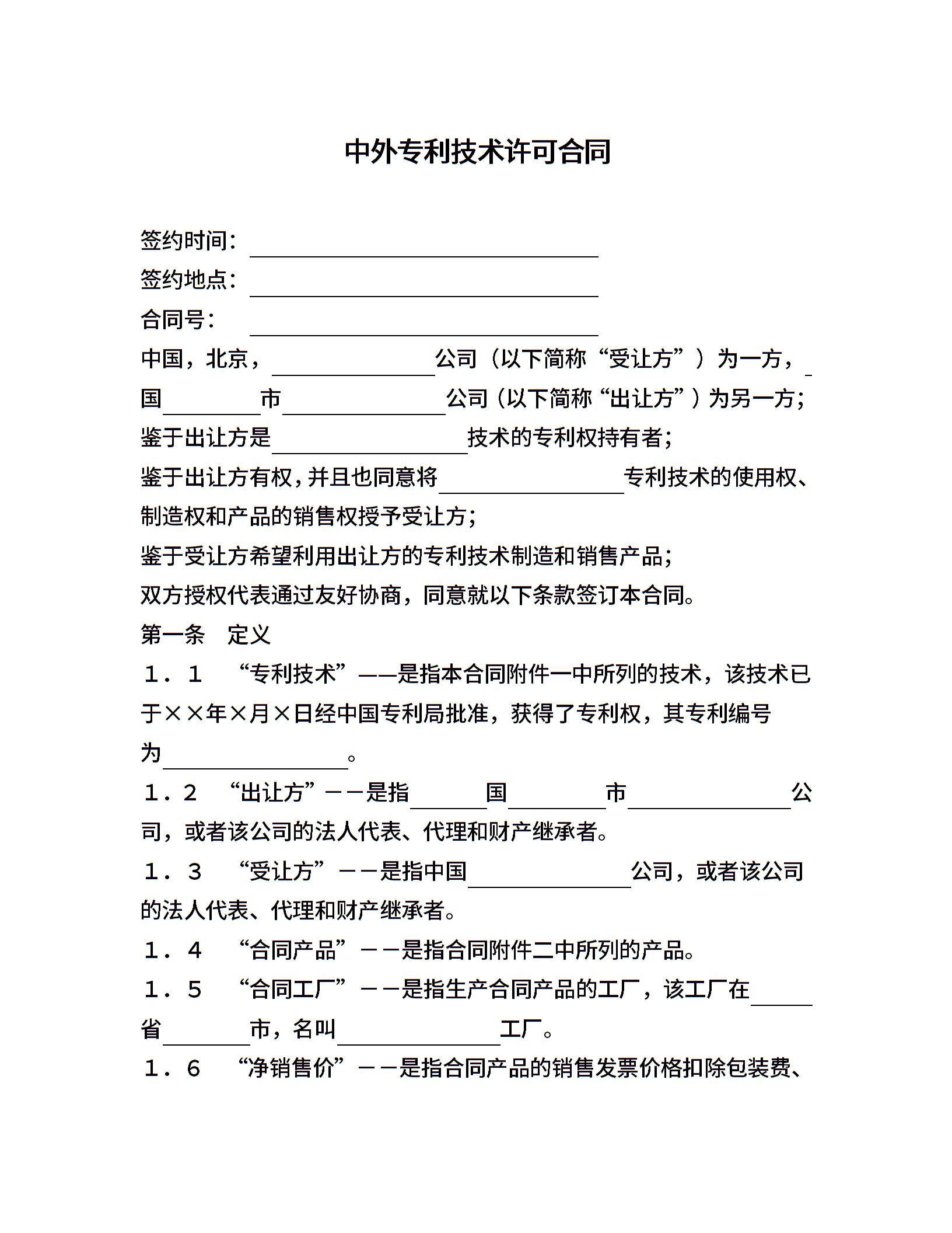 中外专利技术许可合同
