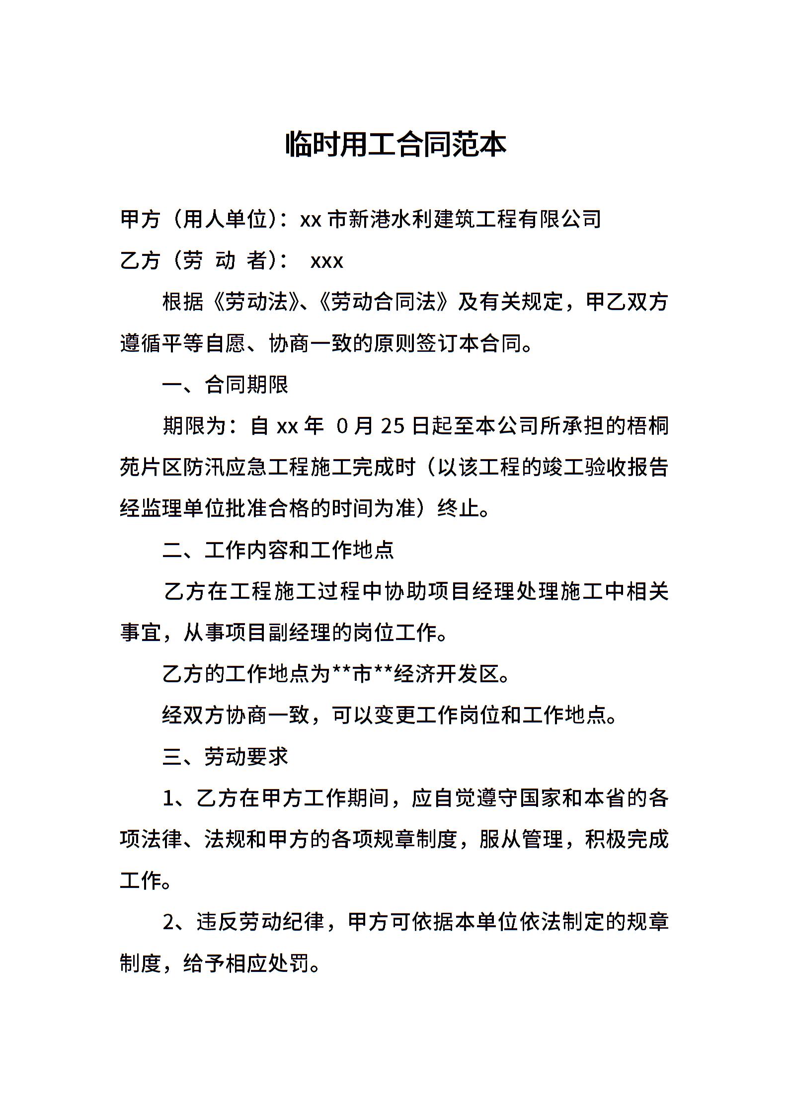 当前位置:量子办公 > 合同模板 > 临时用工合同 >