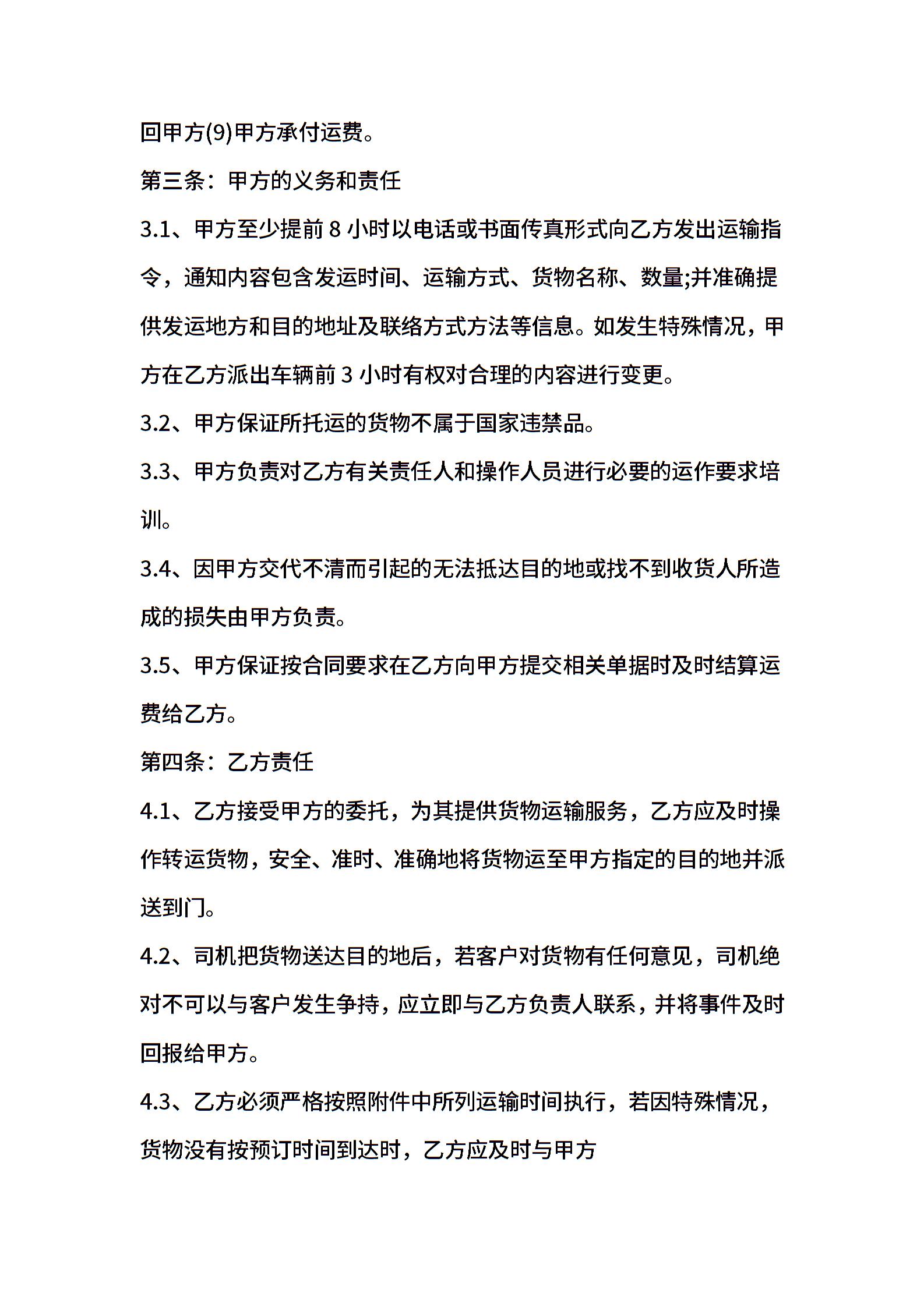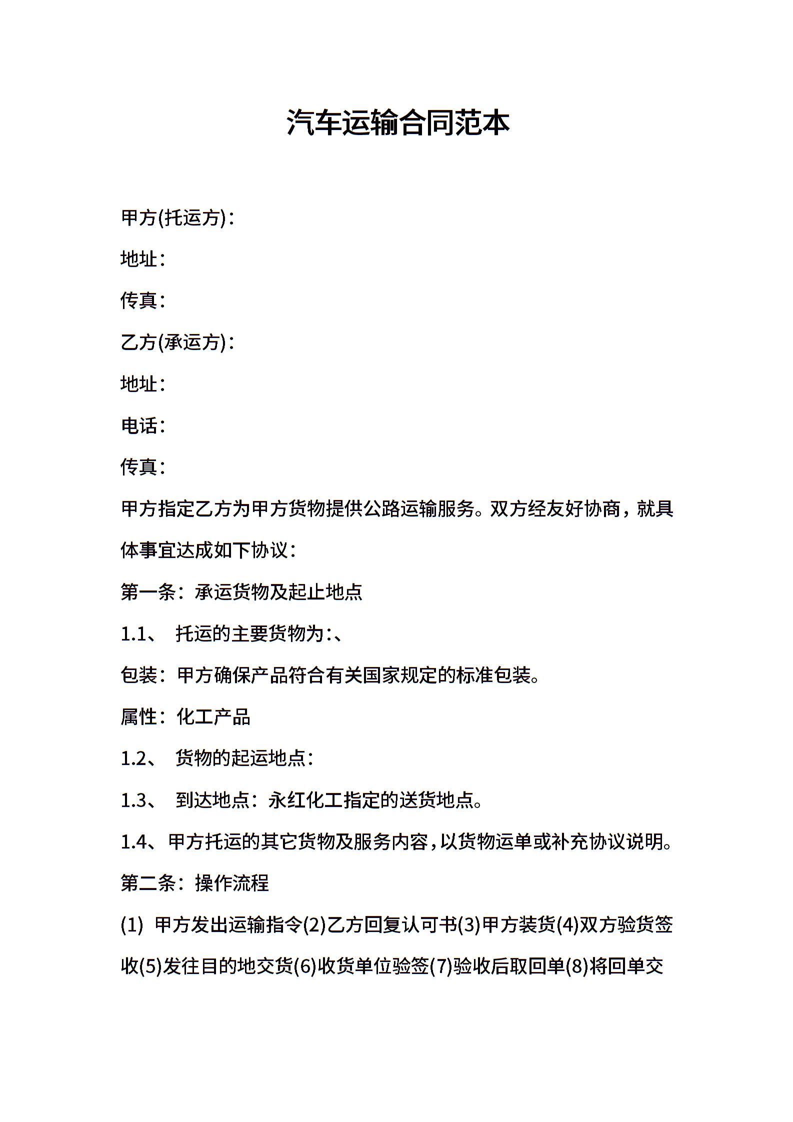 汽车运输合同范本