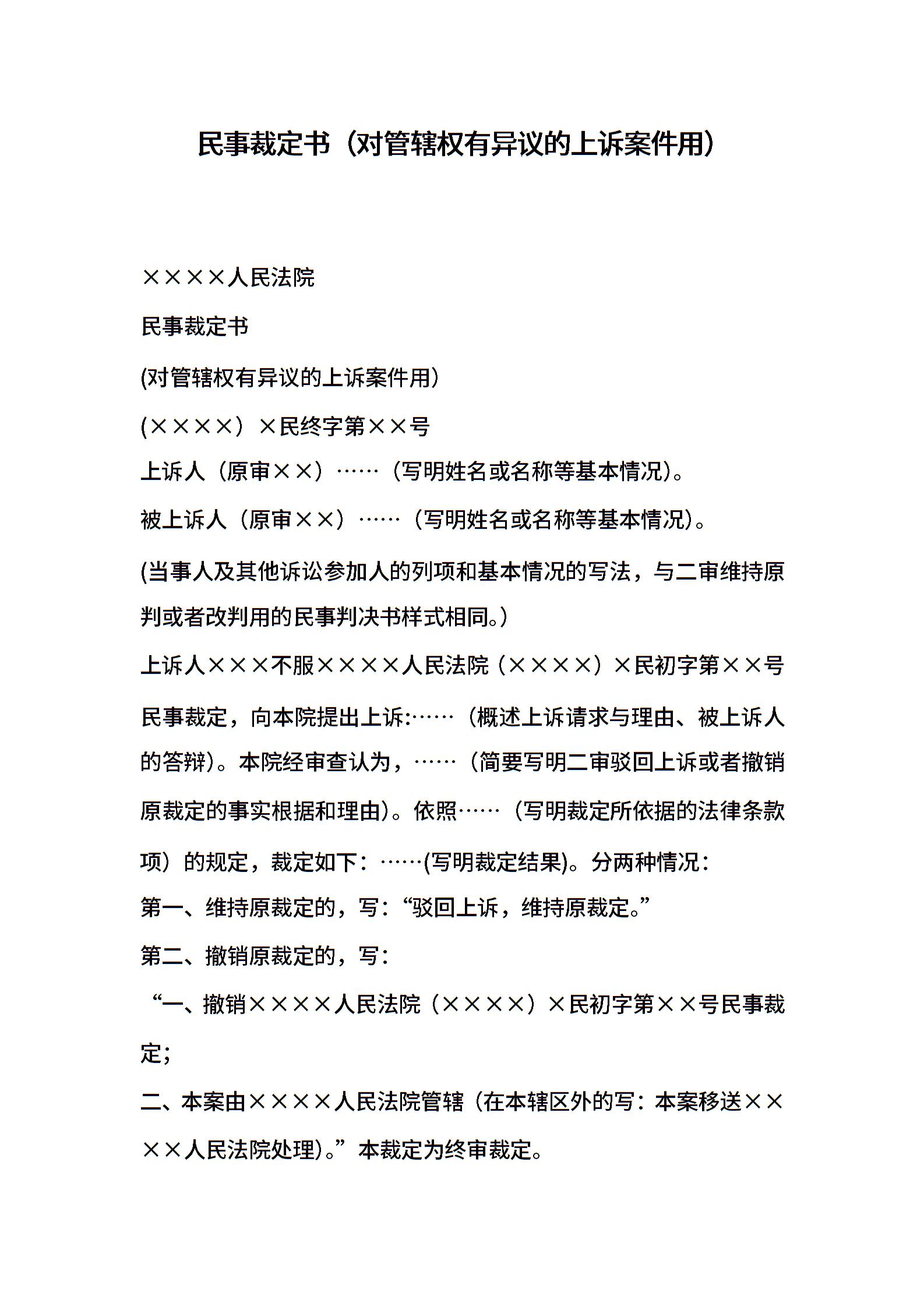 民事裁定书(对管辖权有异议的上诉案件用)
