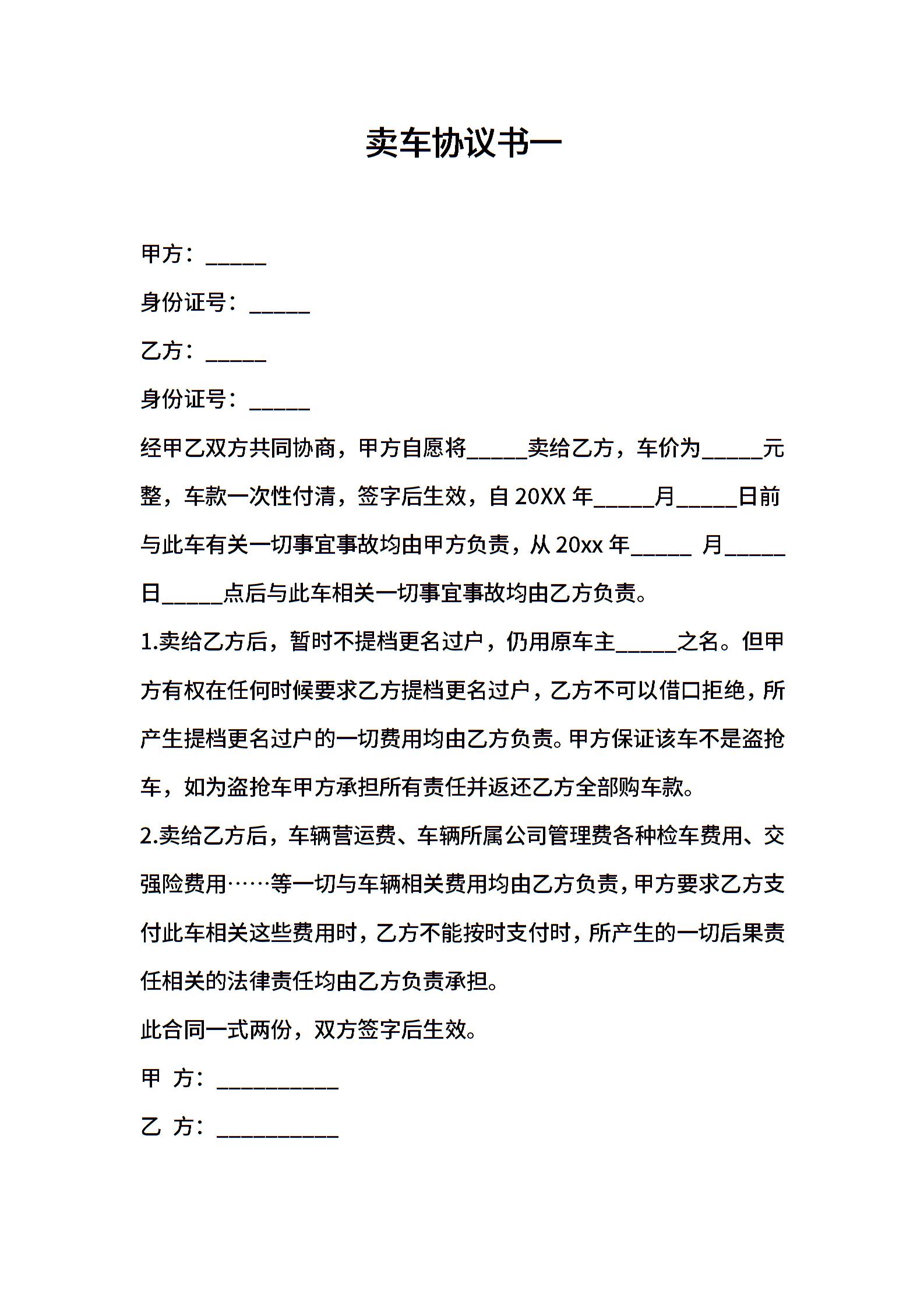 卖车协议书一