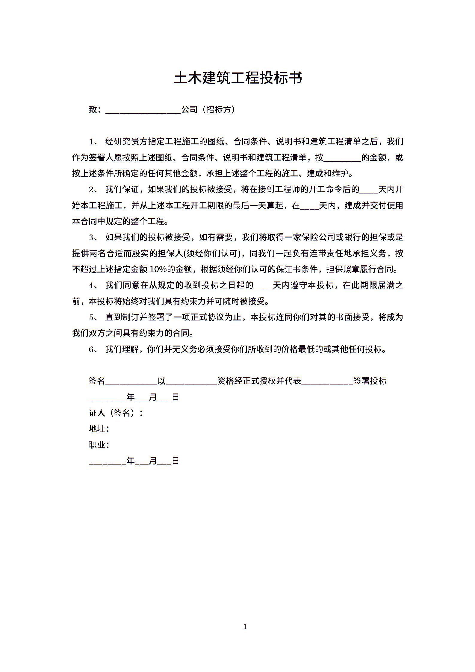 土木建筑工程投标书.docx